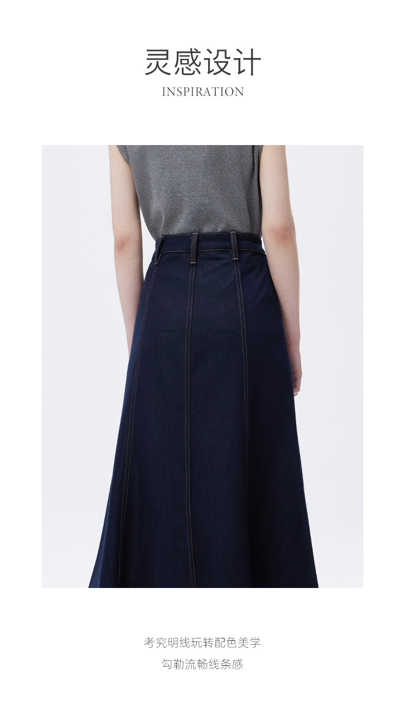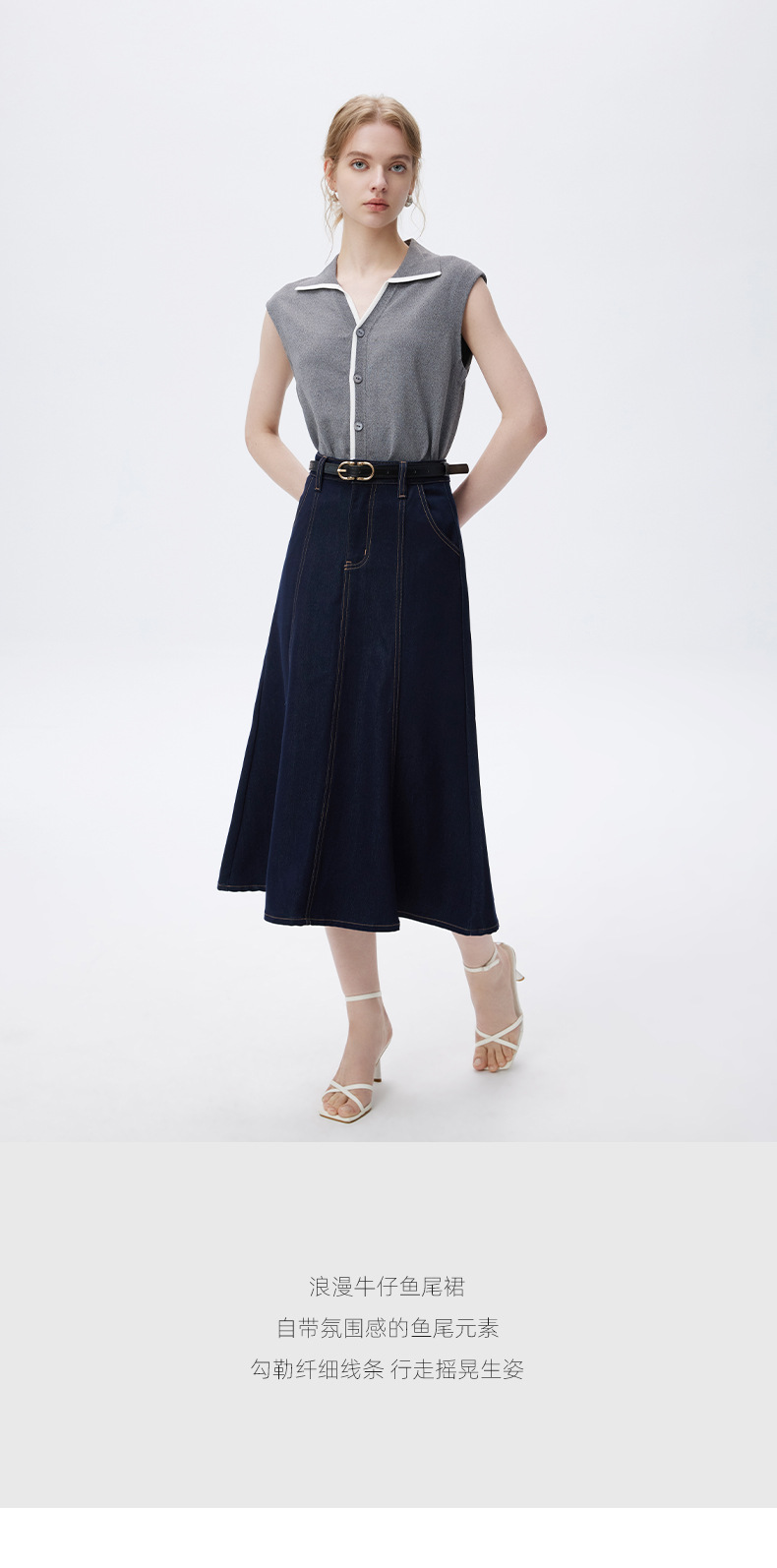2025 신상 데님 미드 스커트 얇은 주름 방지 머서라이즈 오리지널 소가죽 변색되지 않는 피쉬테일 스커트 하이 웨이스트 데님 스커트스토어 가기