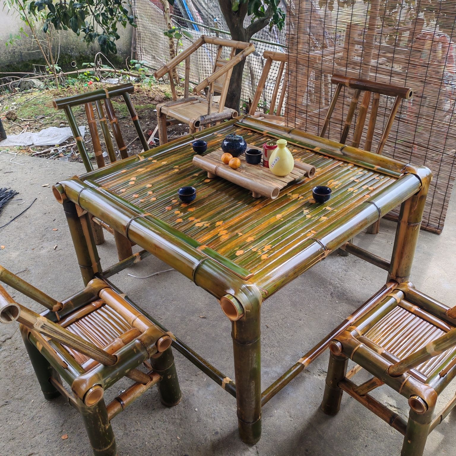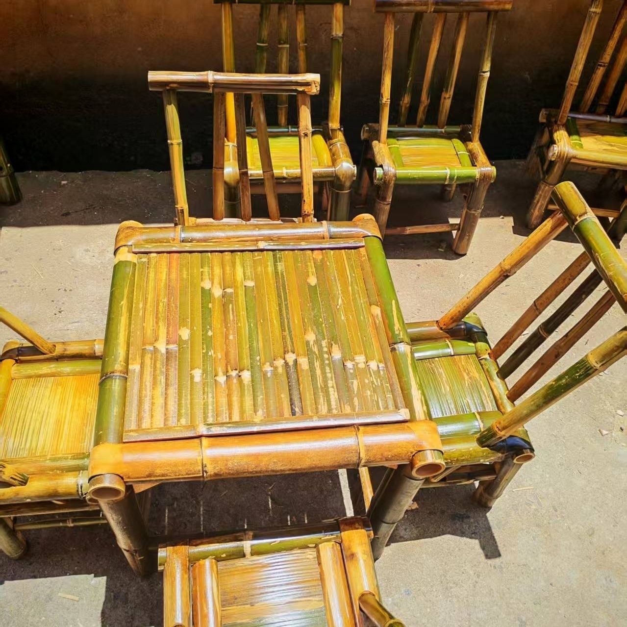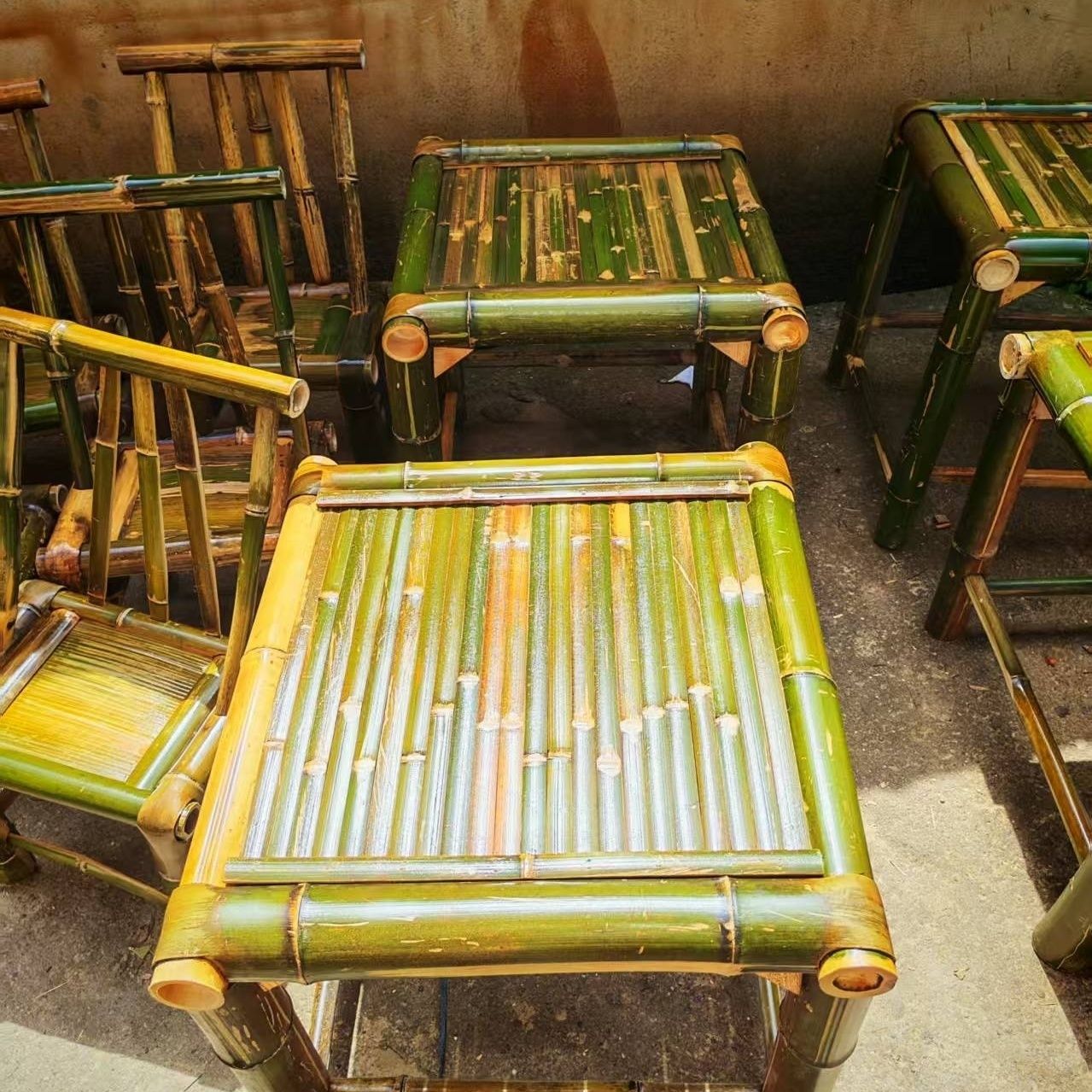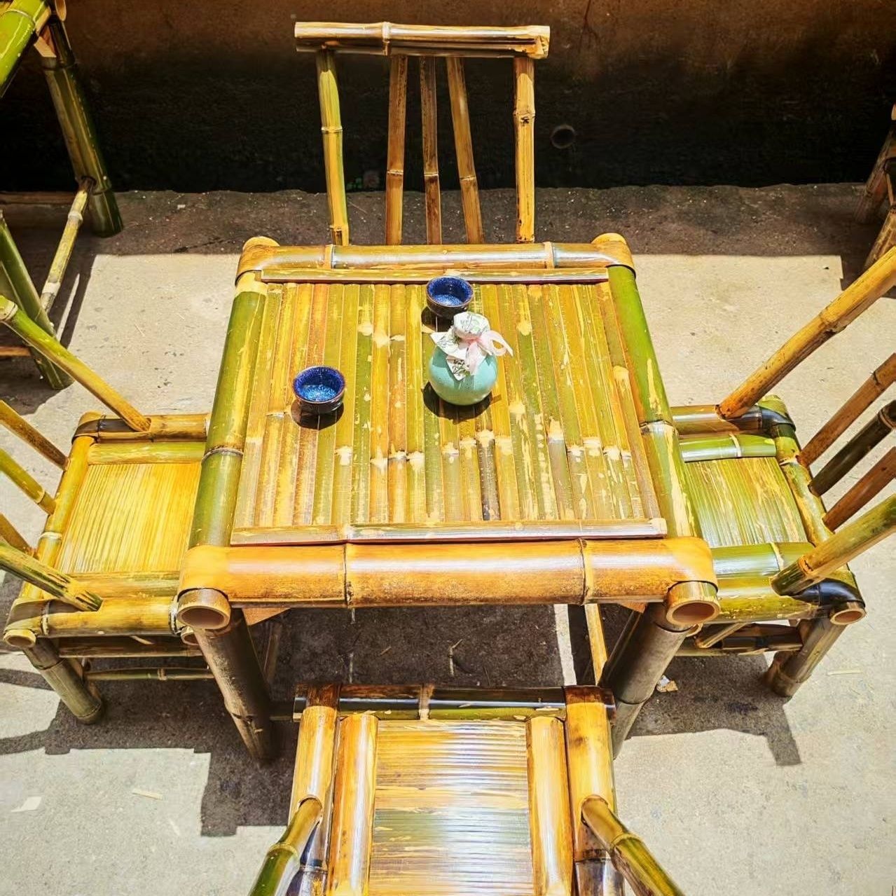 순수 수제 대나무 테이블, 티 테이블, 탄화 식탁, 커피 테이블, 사무실 홈 안뜰 전골 테이블, 복고풍 의자, 대나무 고급스토어 가기