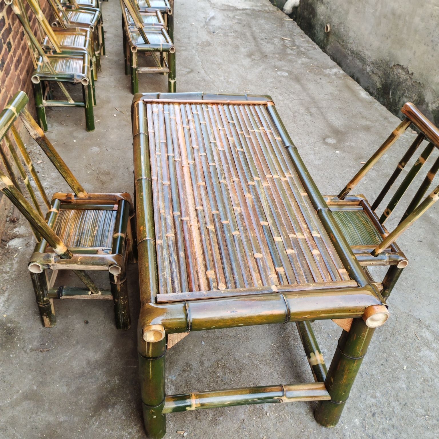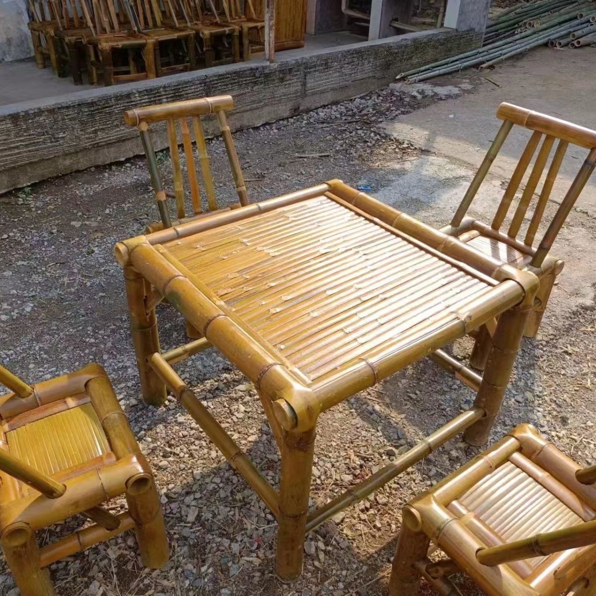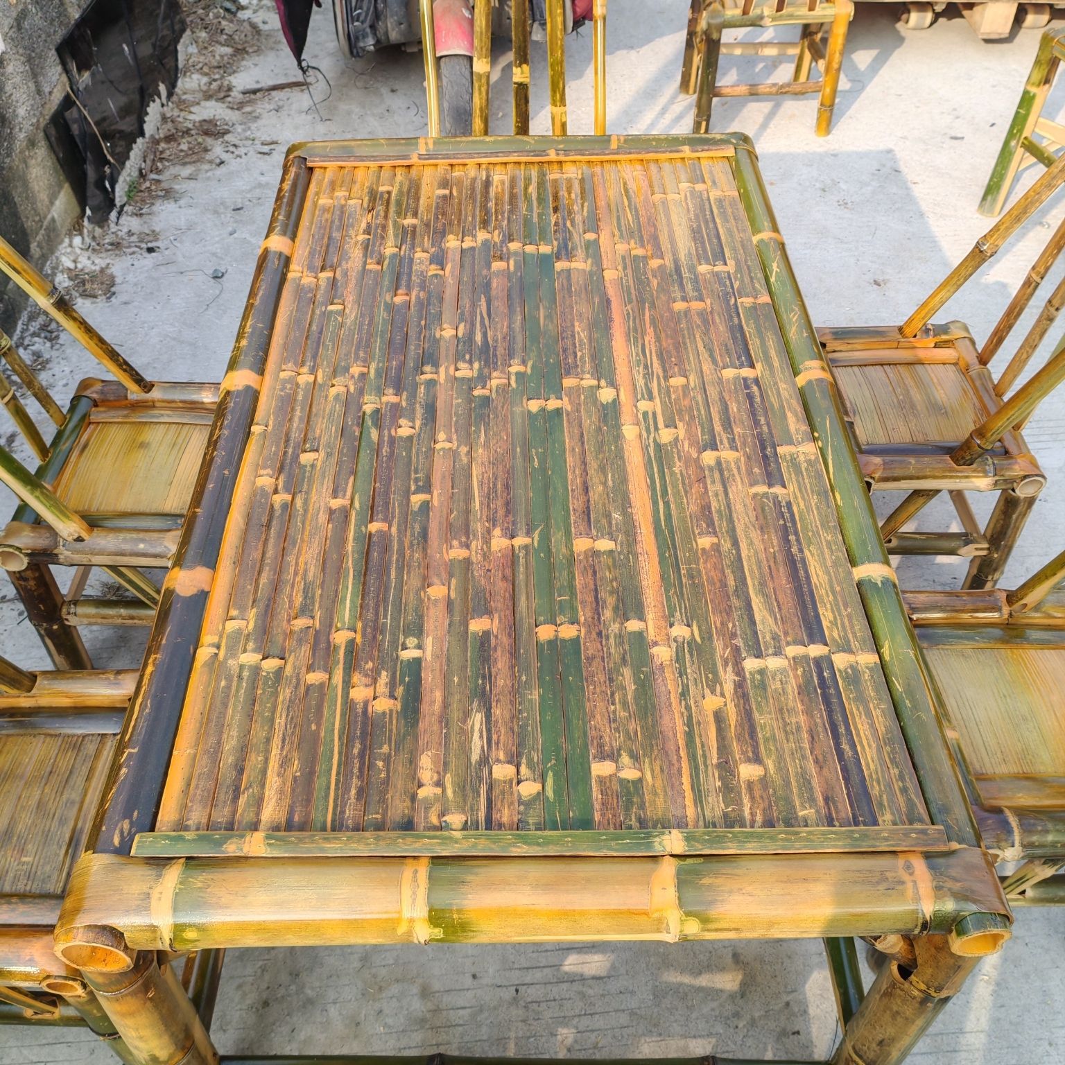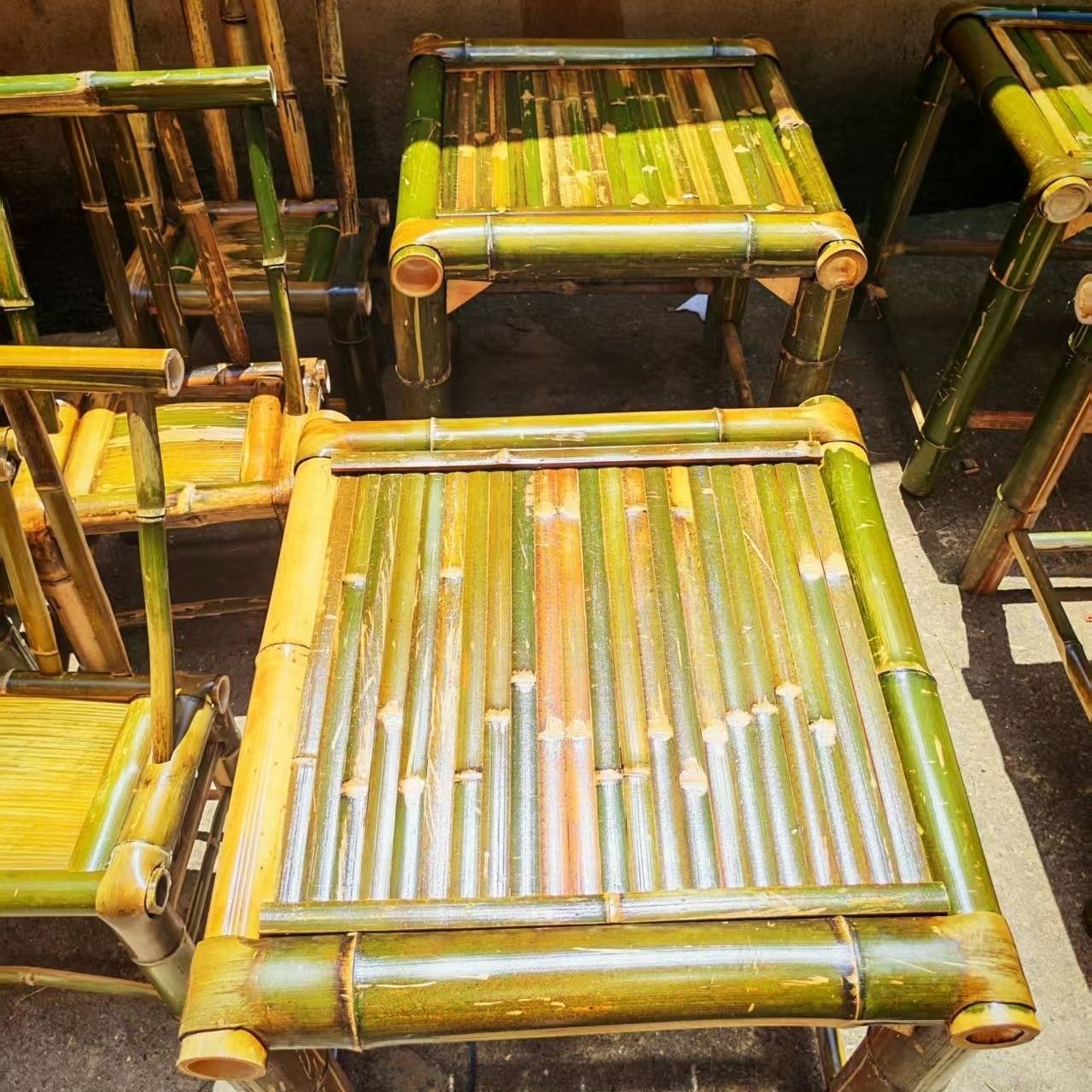 순수 수제 대나무 테이블, 티 테이블, 탄화 식탁, 커피 테이블, 사무실 홈 안뜰 전골 테이블, 복고풍 의자, 대나무 고급스토어 가기