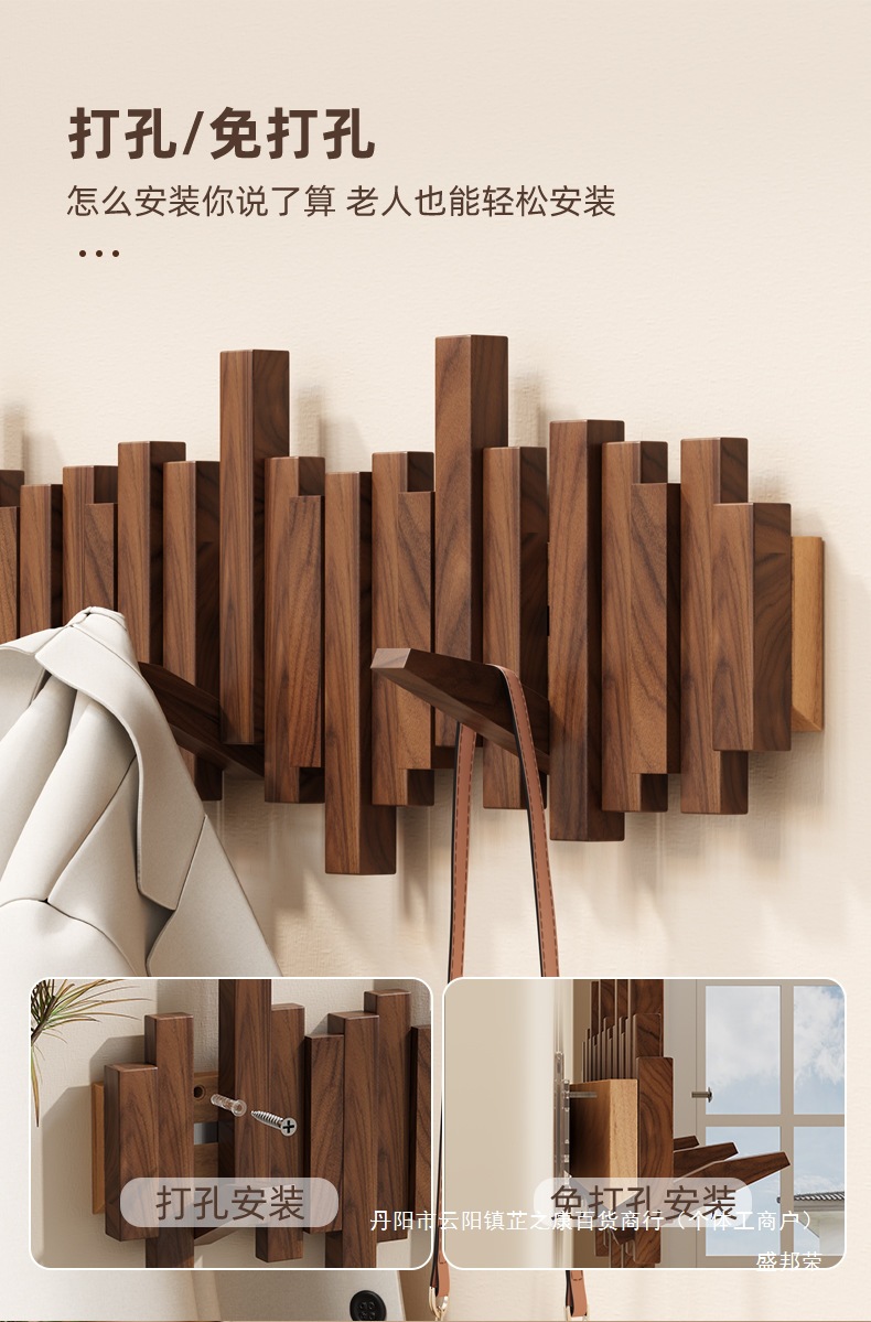 단단한 나무 펀치없는 피아노 옷 걸이 가정용 옷 걸이 실내 거실 침실 옷 가방 간단한 벽걸이 옷 걸이스토어 가기