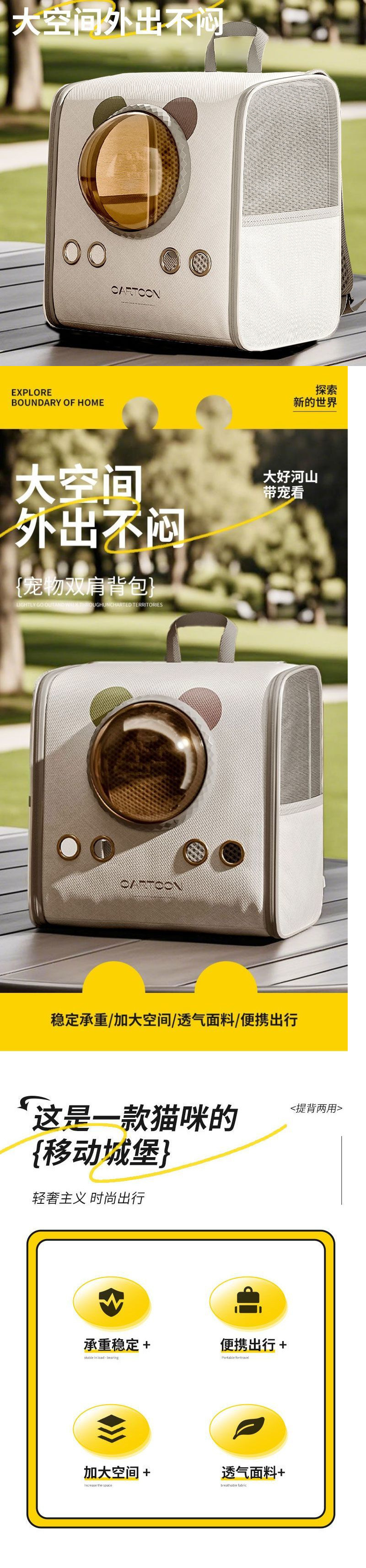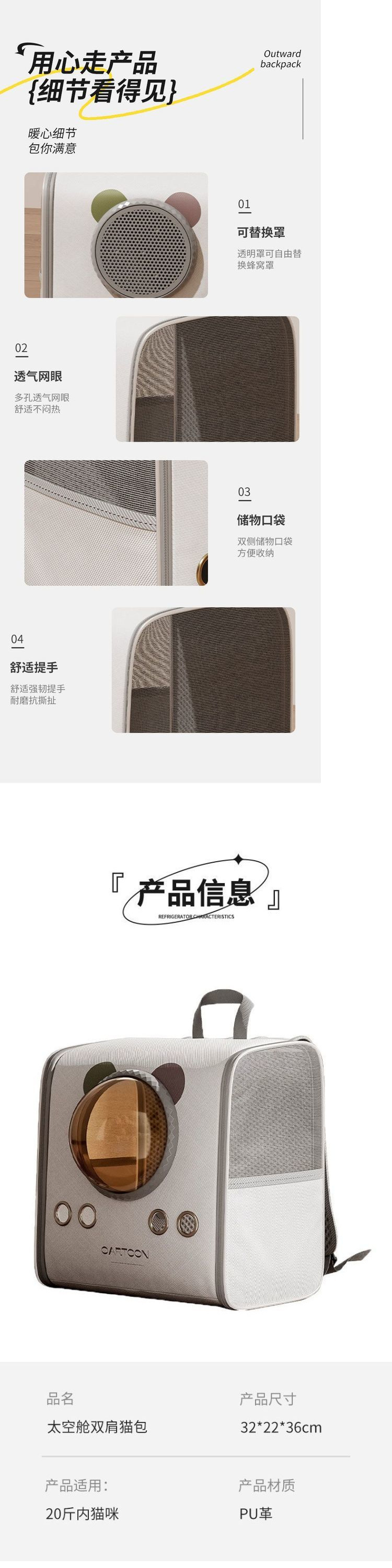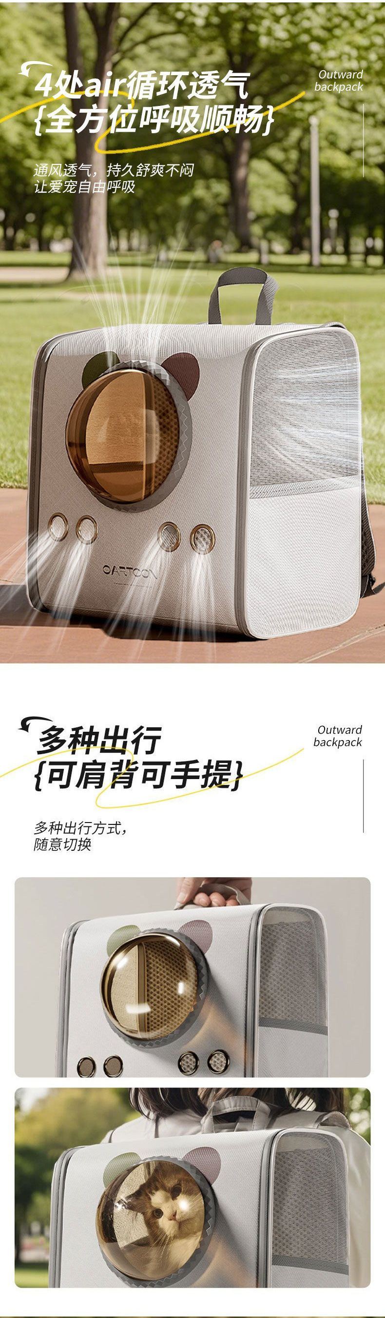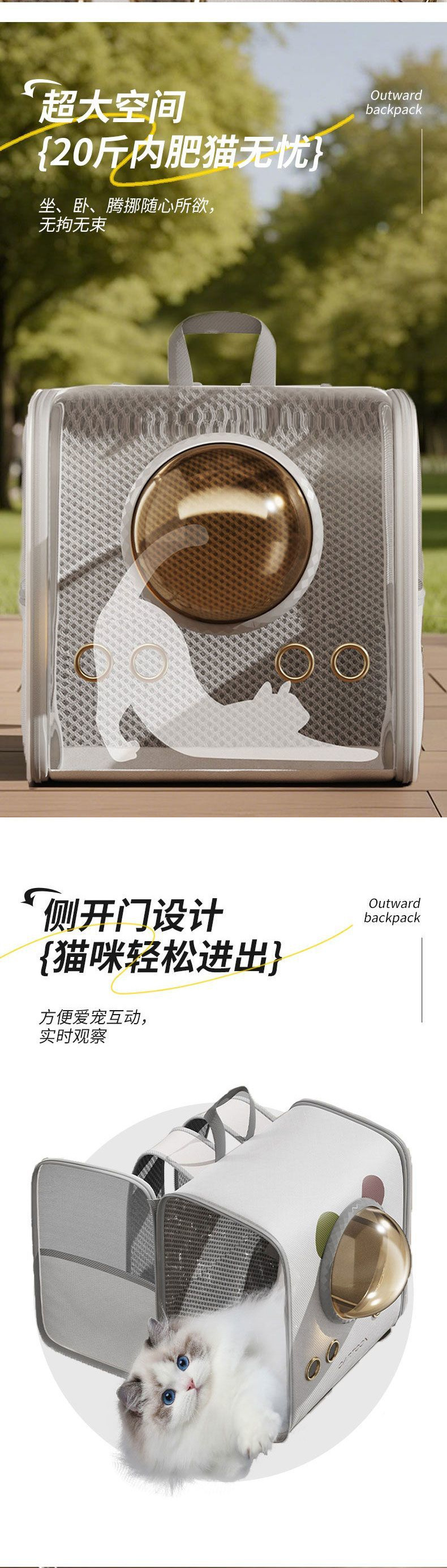 고양이 가방 우주 캡슐 배낭 대용량 애완 동물 배낭 학교 가방 휴대용 고양이와 개 스트레스 방지 고양이 케이지