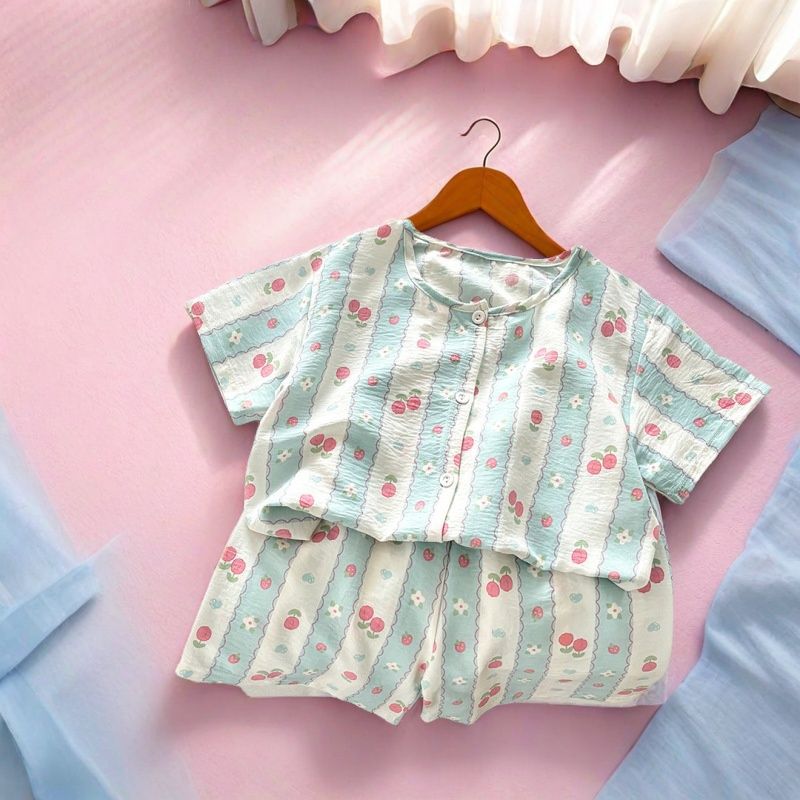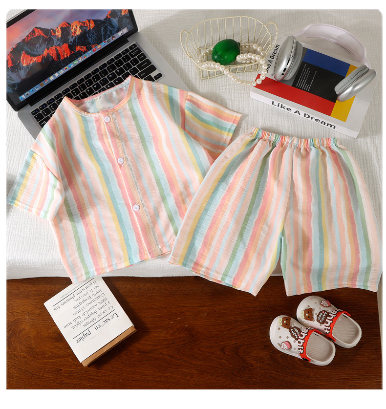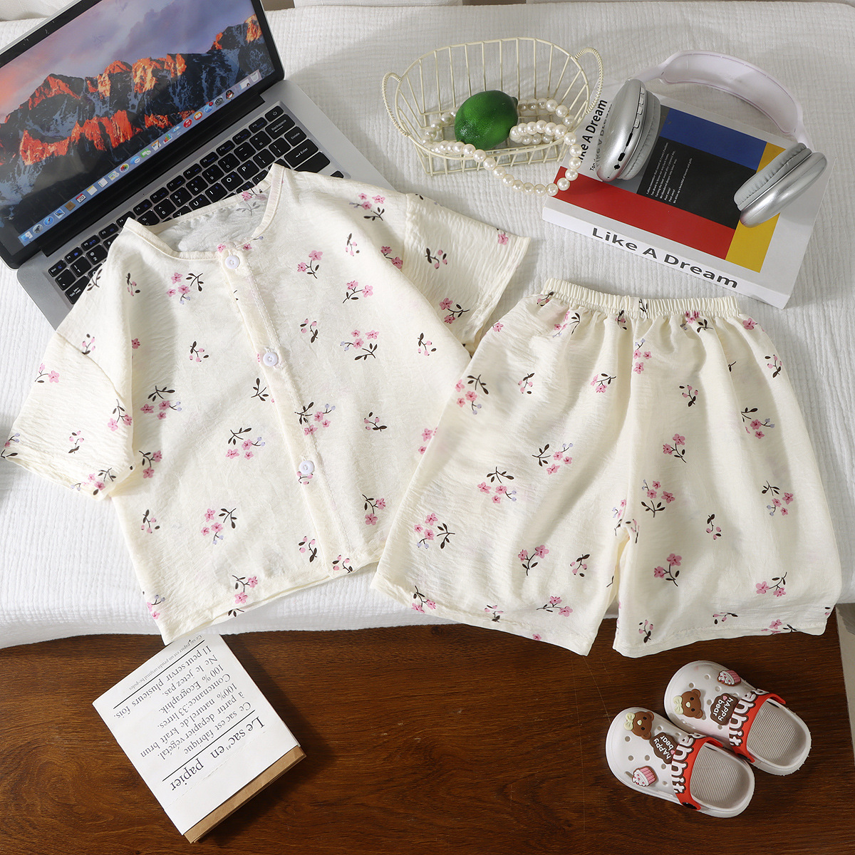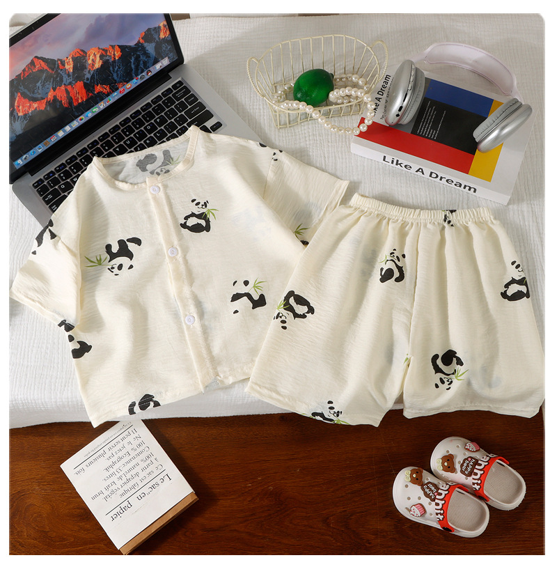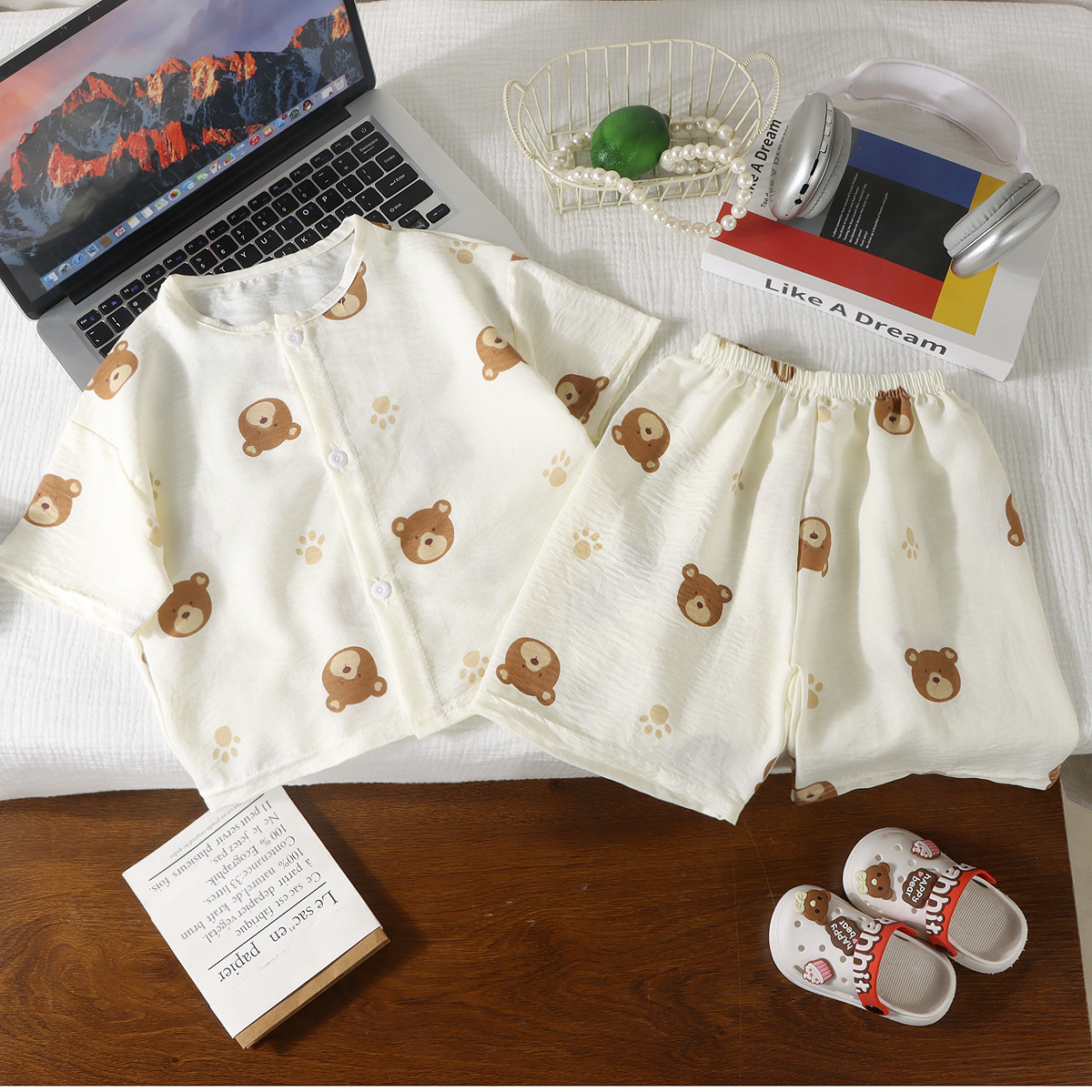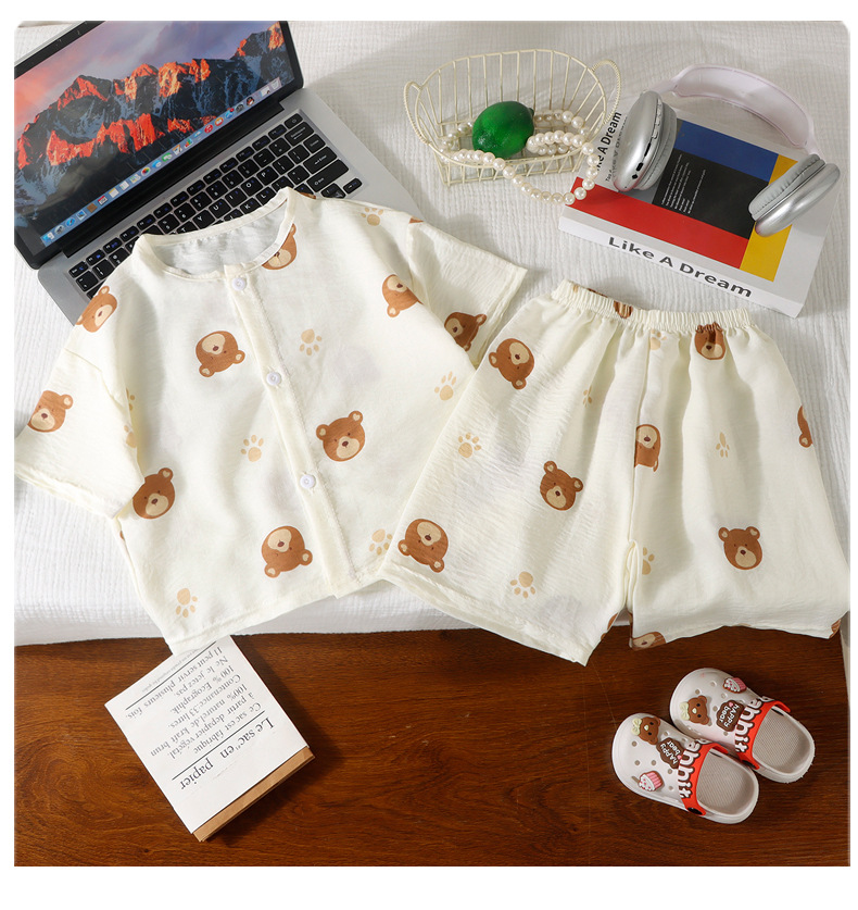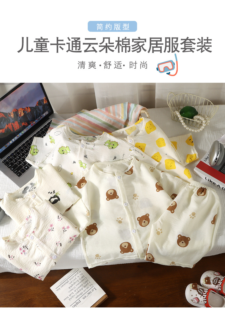 소년과 소녀를위한 어린이 반팔 양복 여름 카디건 반바지 아기 구름 면화 만화 투피스 홈웨어 여름 옷스토어 가기