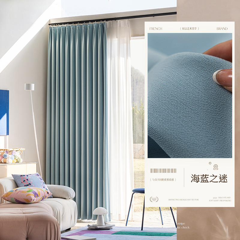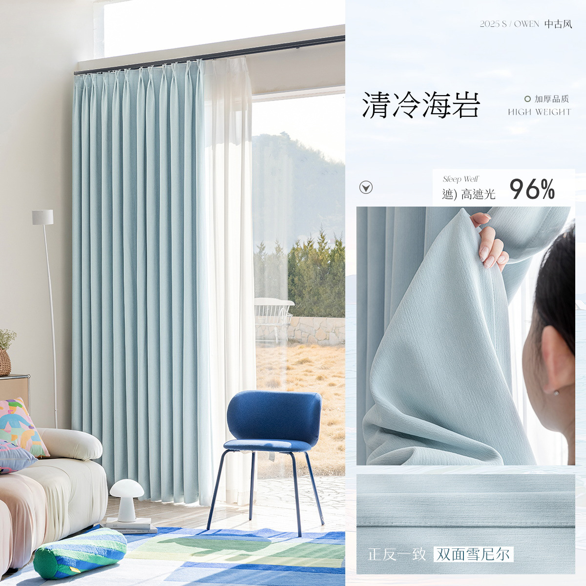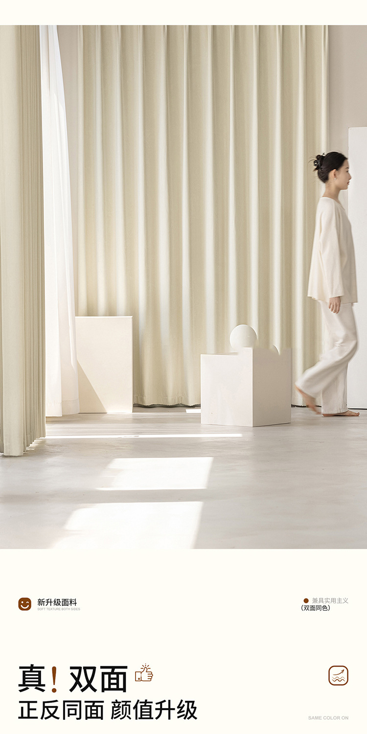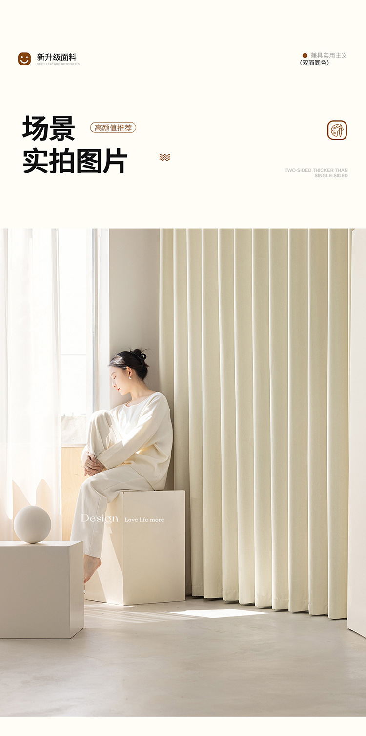 Lesheng 커튼 새로운 양면 셔닐 커튼 앞면과 뒷면 같은 색상 두꺼운 완전 암막 커튼 침실 Keqiao 커튼스토어 가기