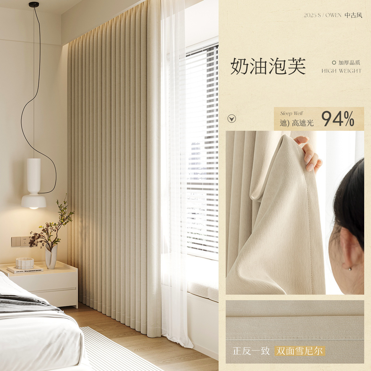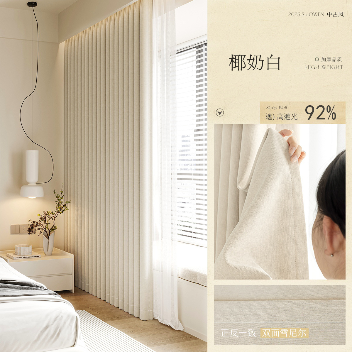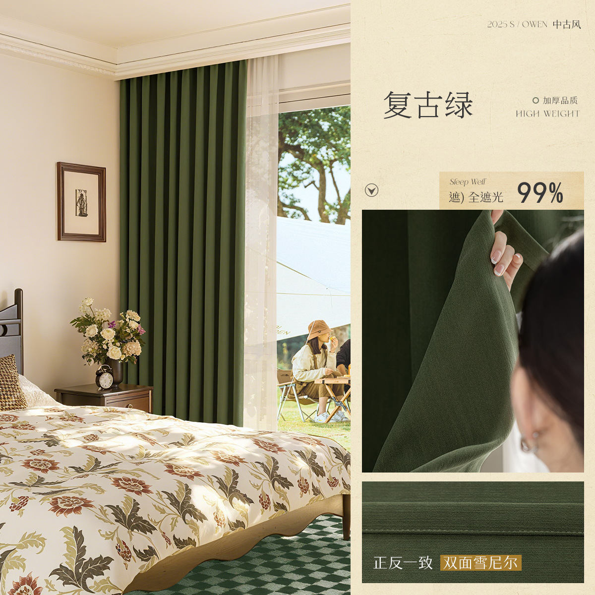 Lesheng 커튼 새로운 양면 셔닐 커튼 앞면과 뒷면 같은 색상 두꺼운 완전 암막 커튼 침실 Keqiao 커튼스토어 가기