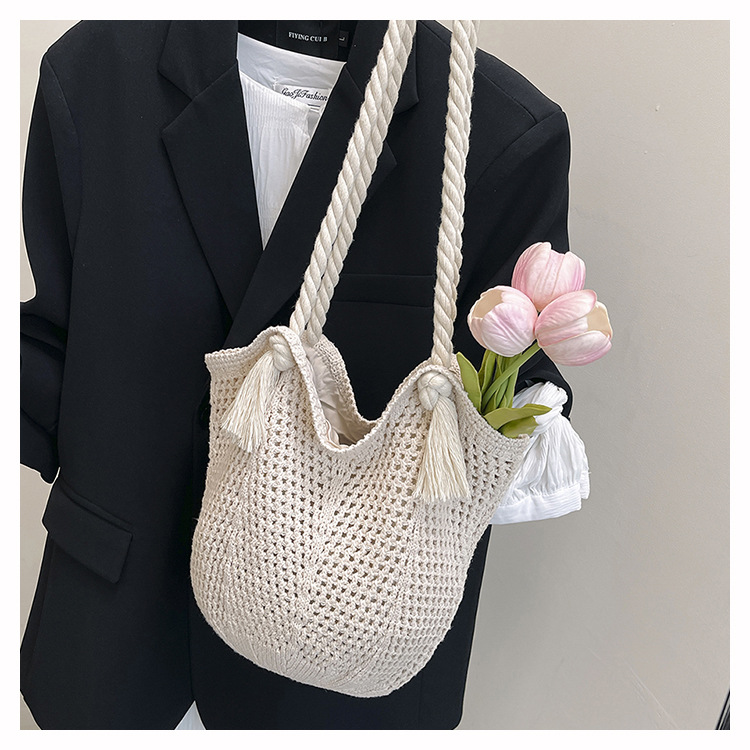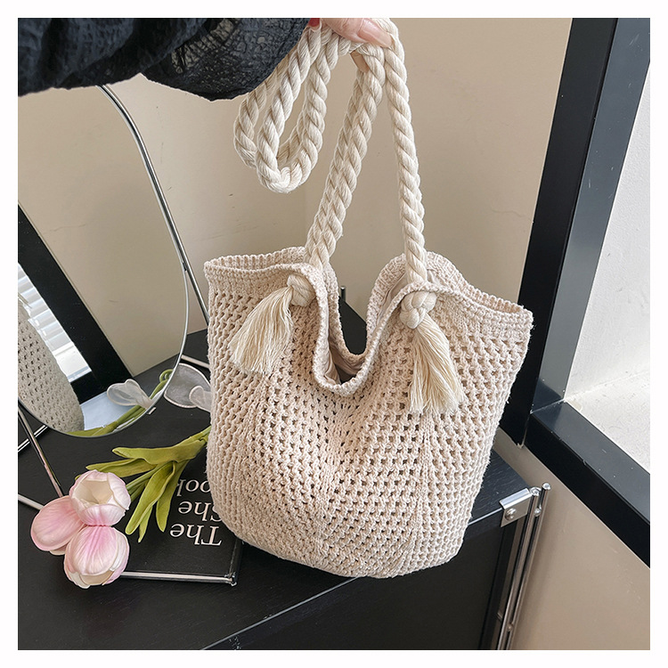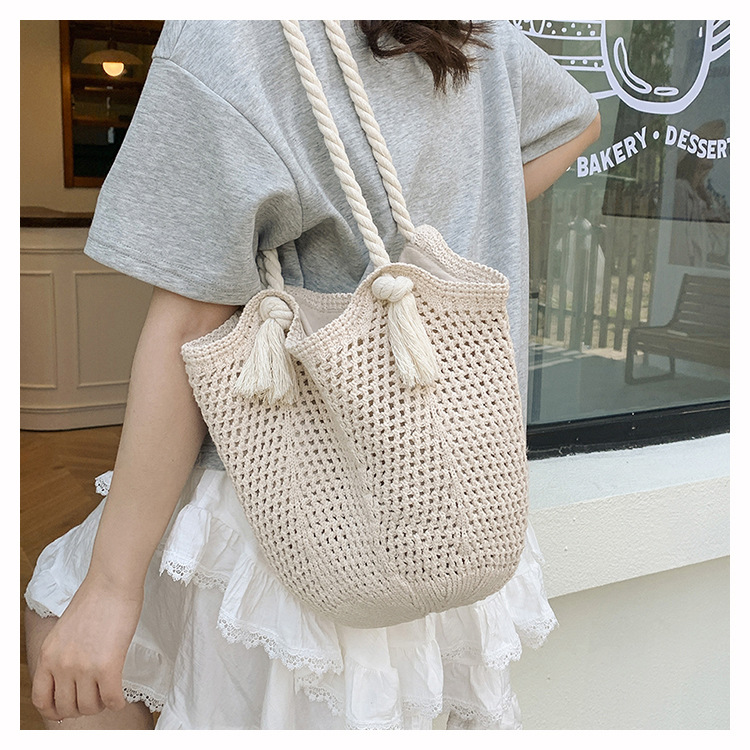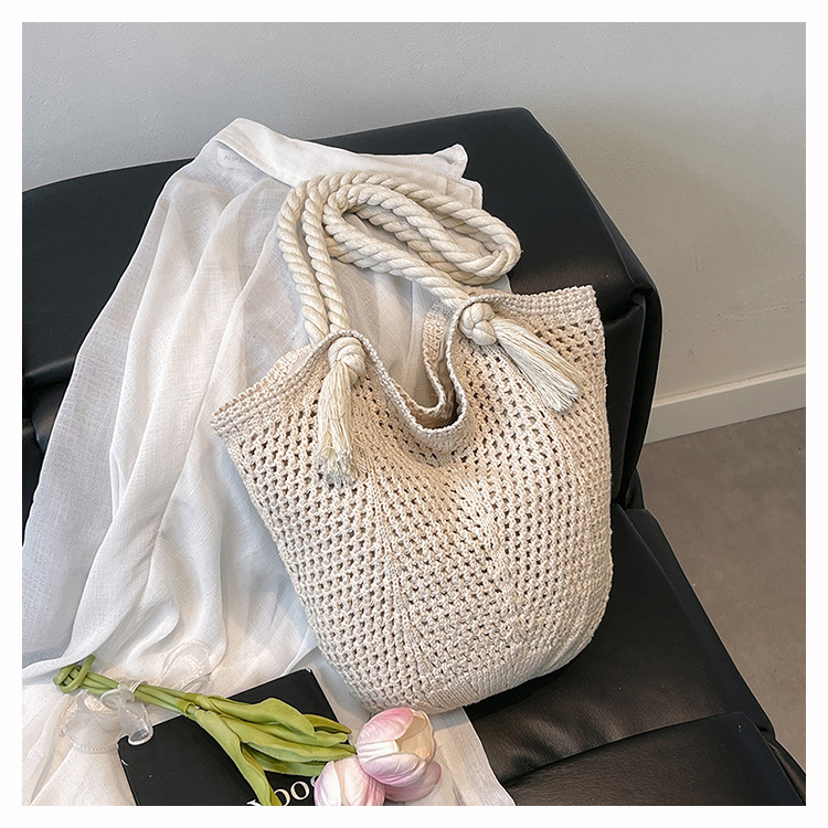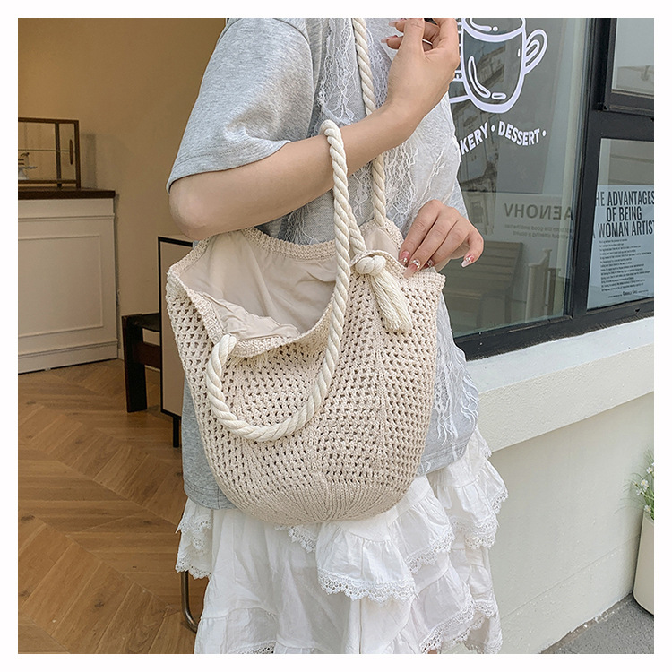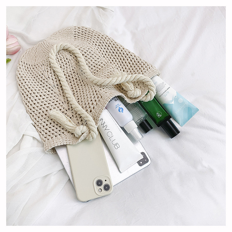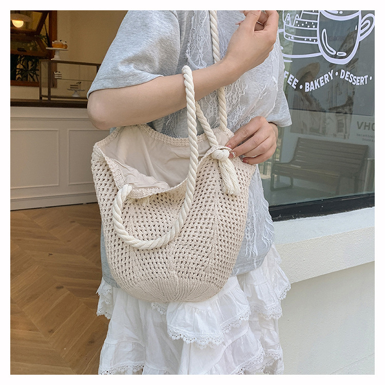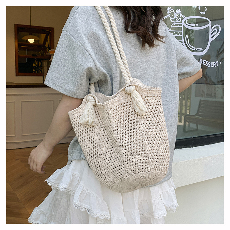 여성을위한 대용량 니트 가방 2025 새로운 중공 짠 휴가 해변 가방 어깨 가방 토트 백스토어 가기