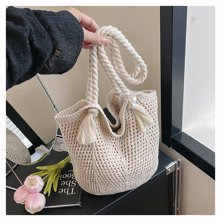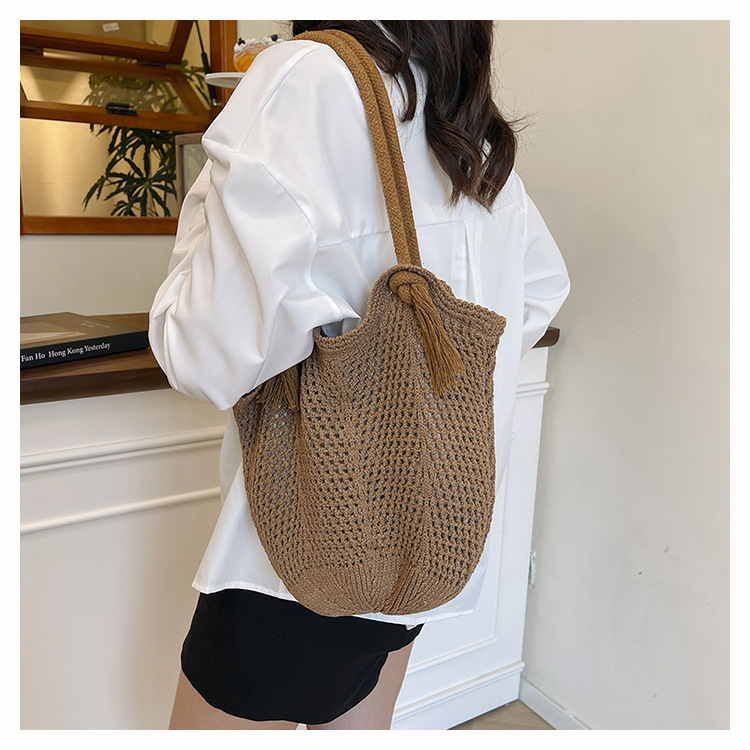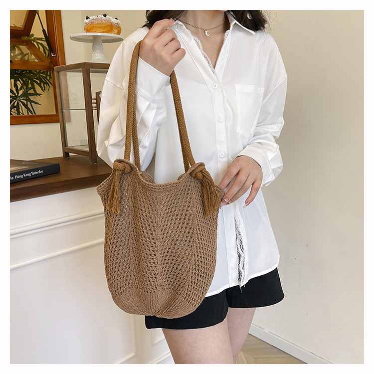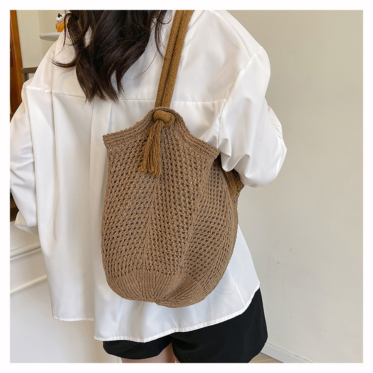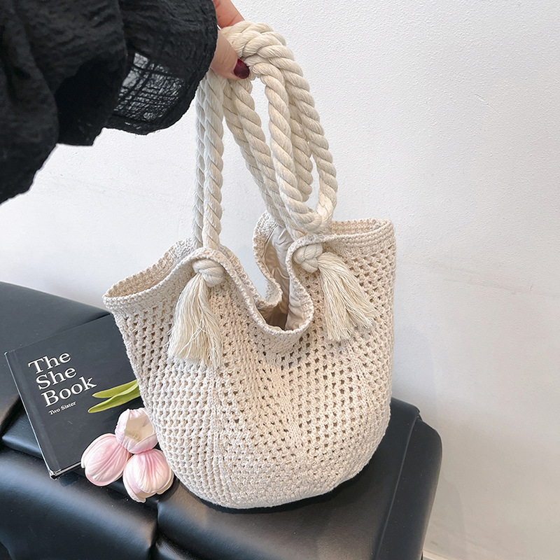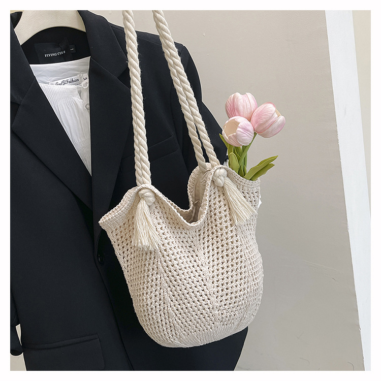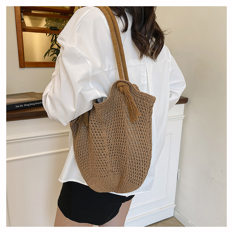 여성을위한 대용량 니트 가방 2025 새로운 중공 짠 휴가 해변 가방 어깨 가방 토트 백스토어 가기