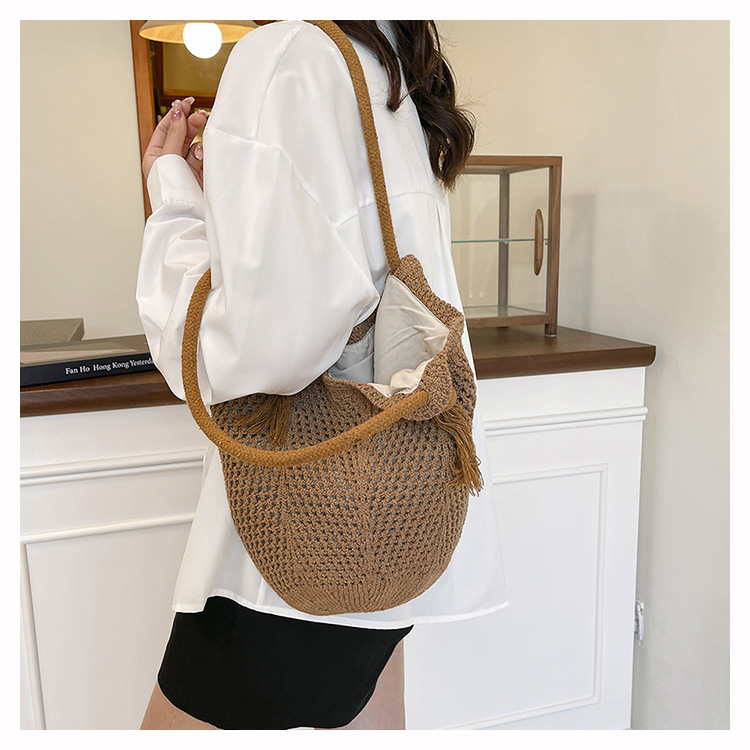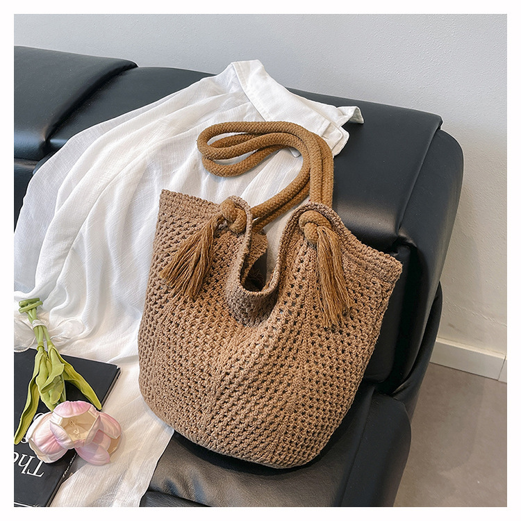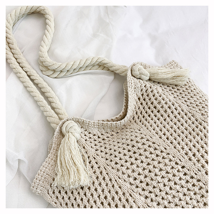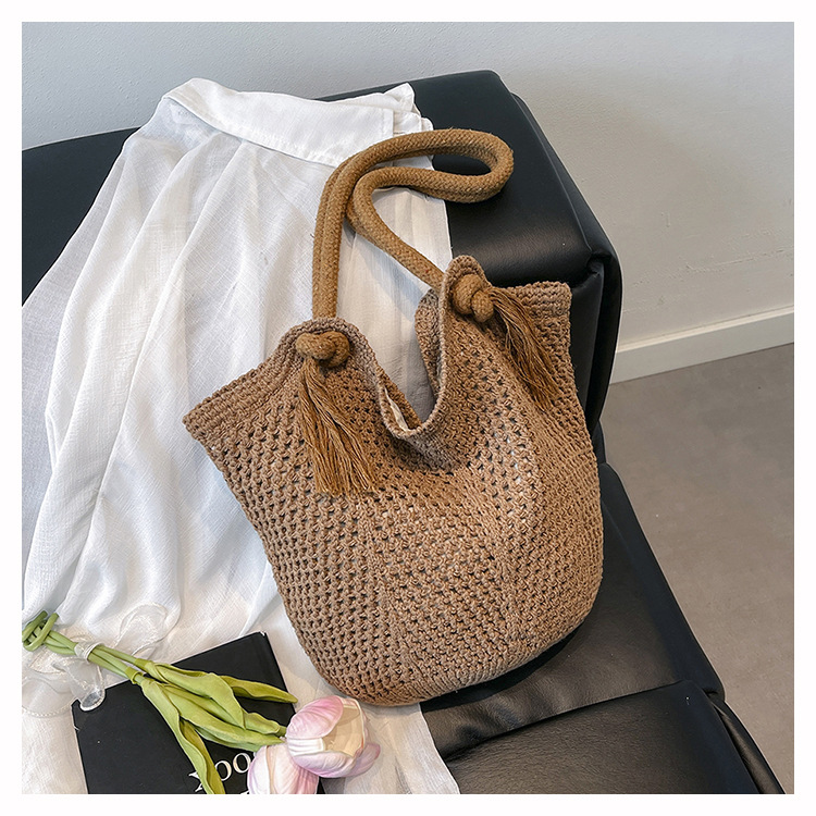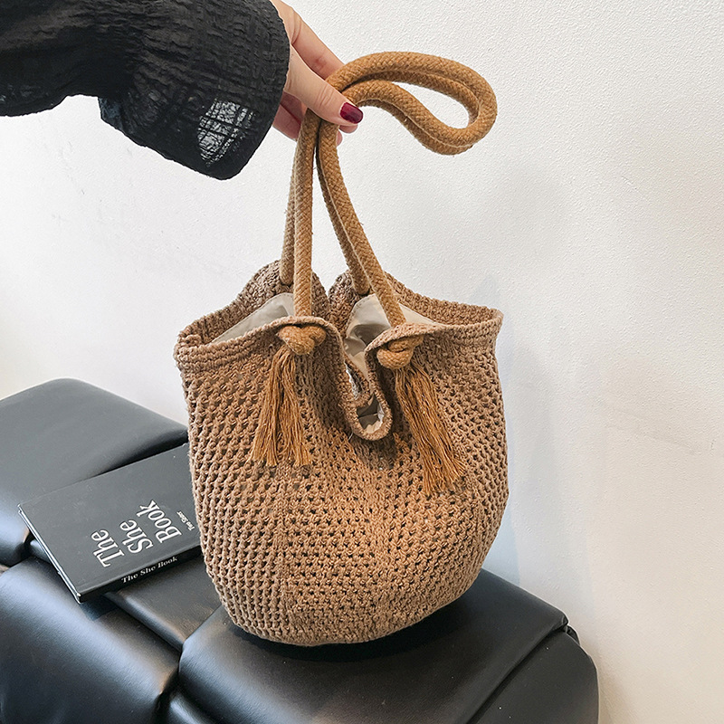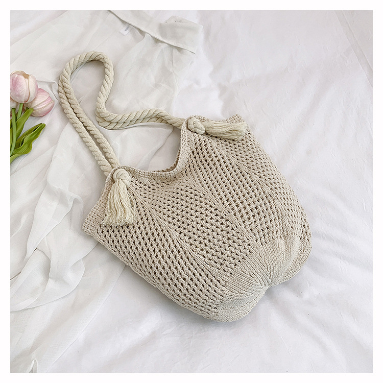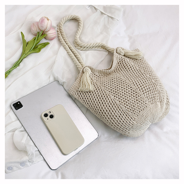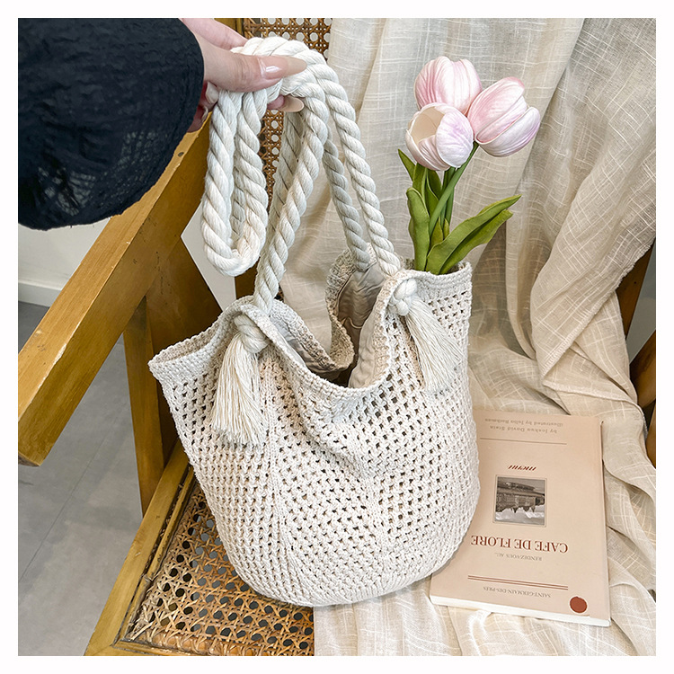 여성을위한 대용량 니트 가방 2025 새로운 중공 짠 휴가 해변 가방 어깨 가방 토트 백스토어 가기