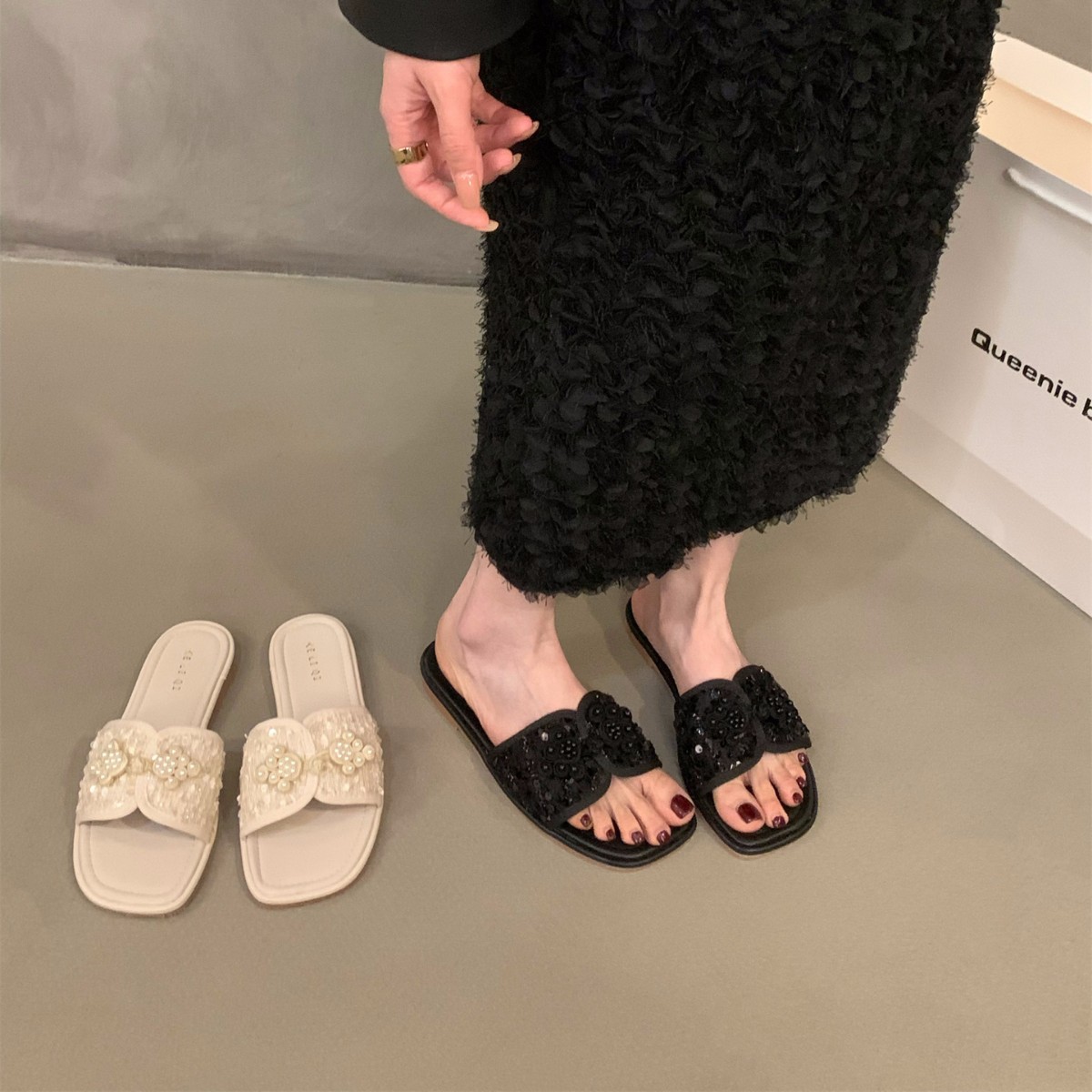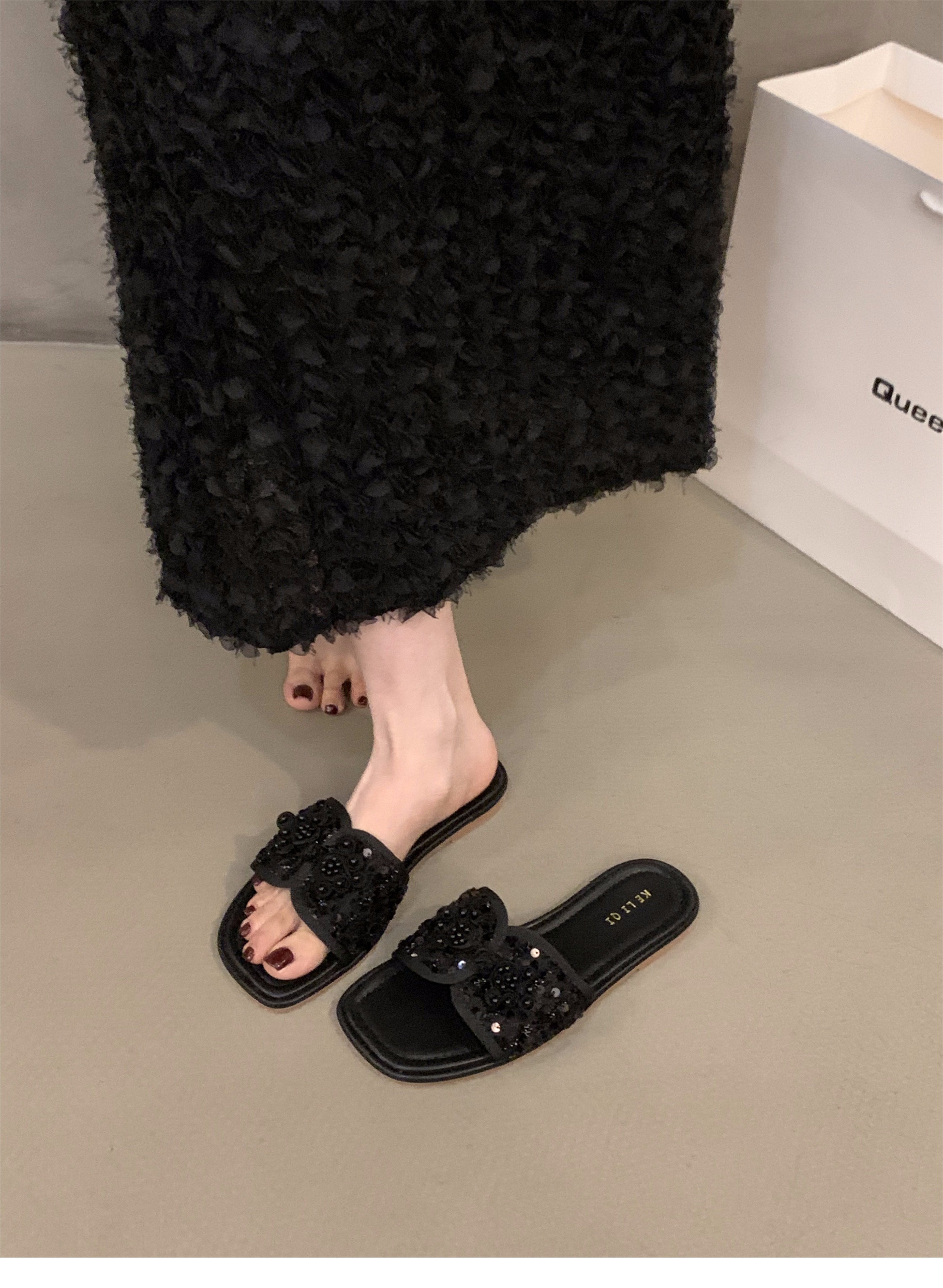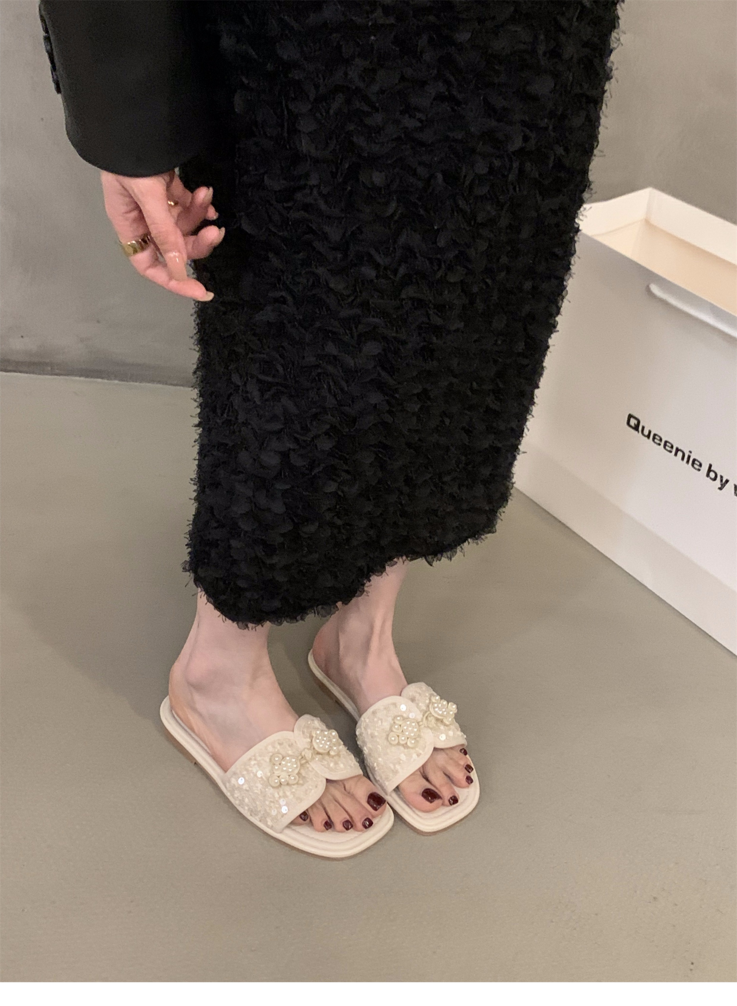 여성용 플랫 프렌치 스타일 슬리퍼, 패셔너블한 아우터웨어 2025 신상 여름 소프트솔 휴가 샌들스토어 가기