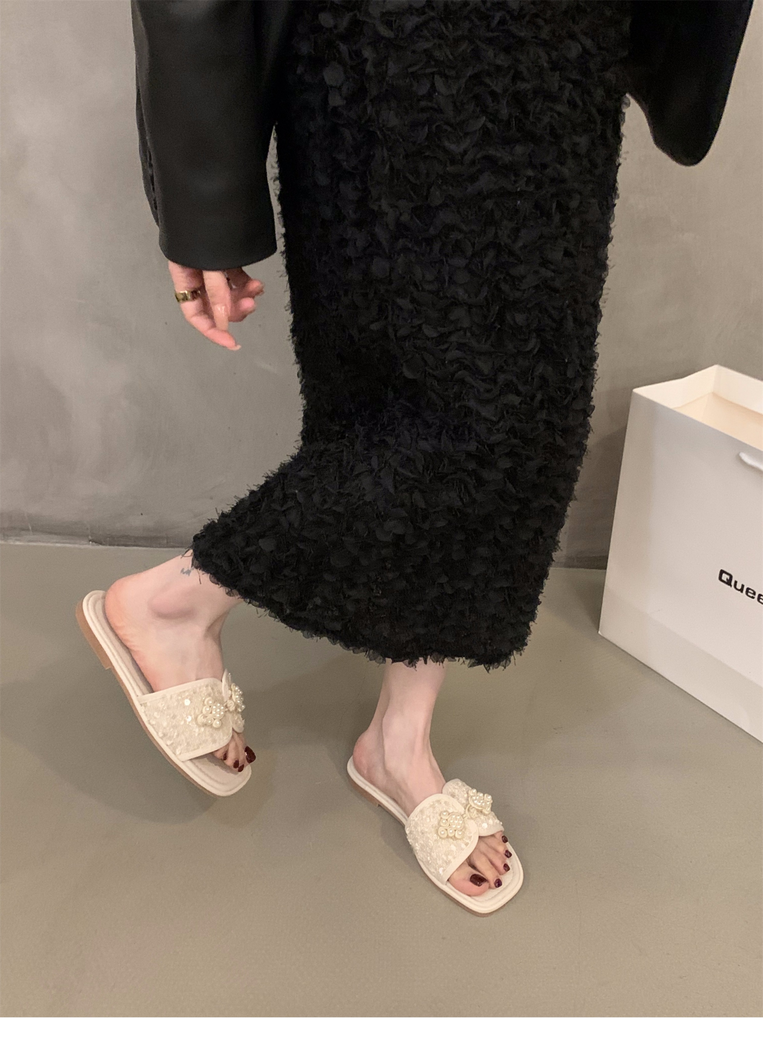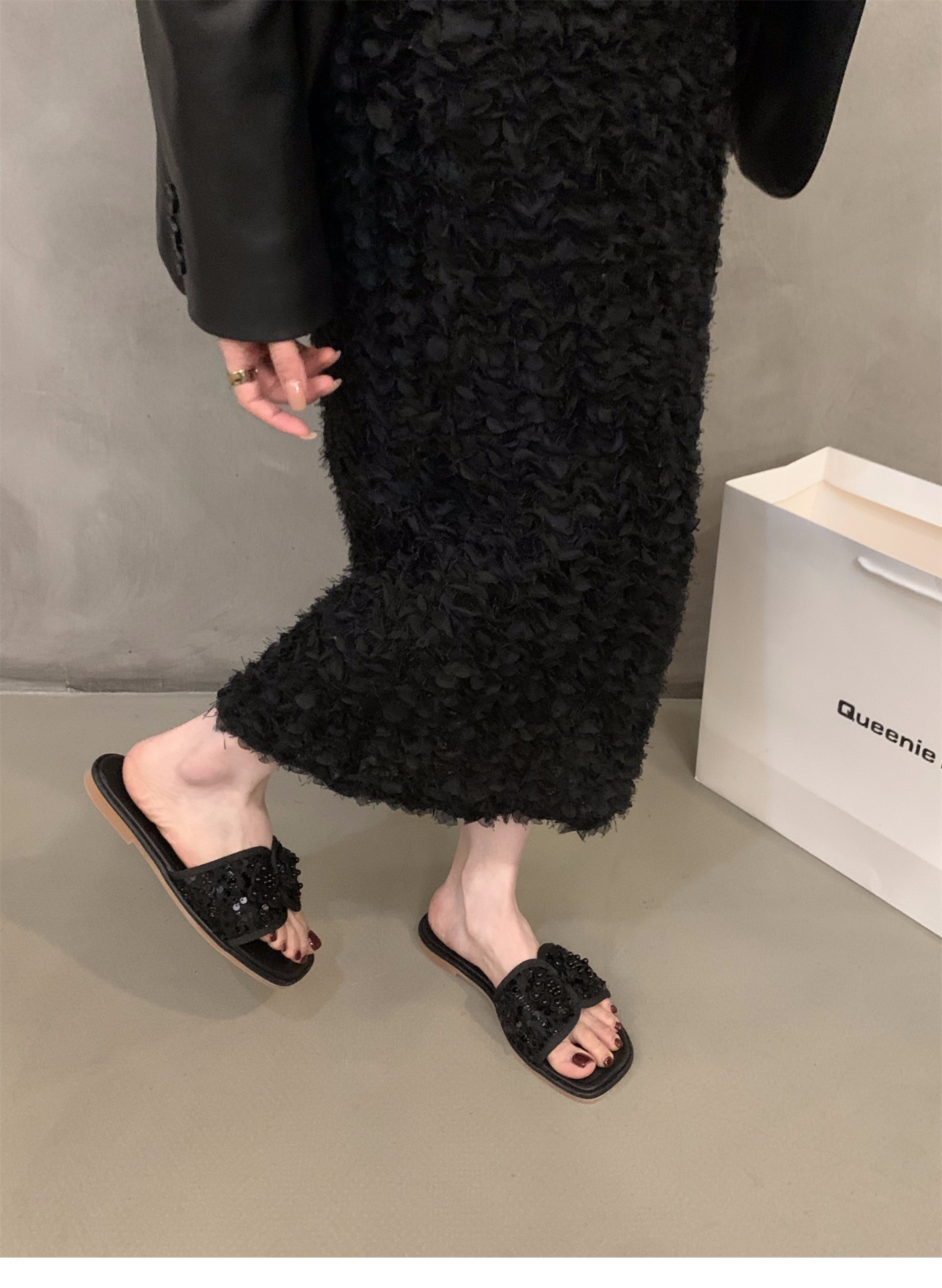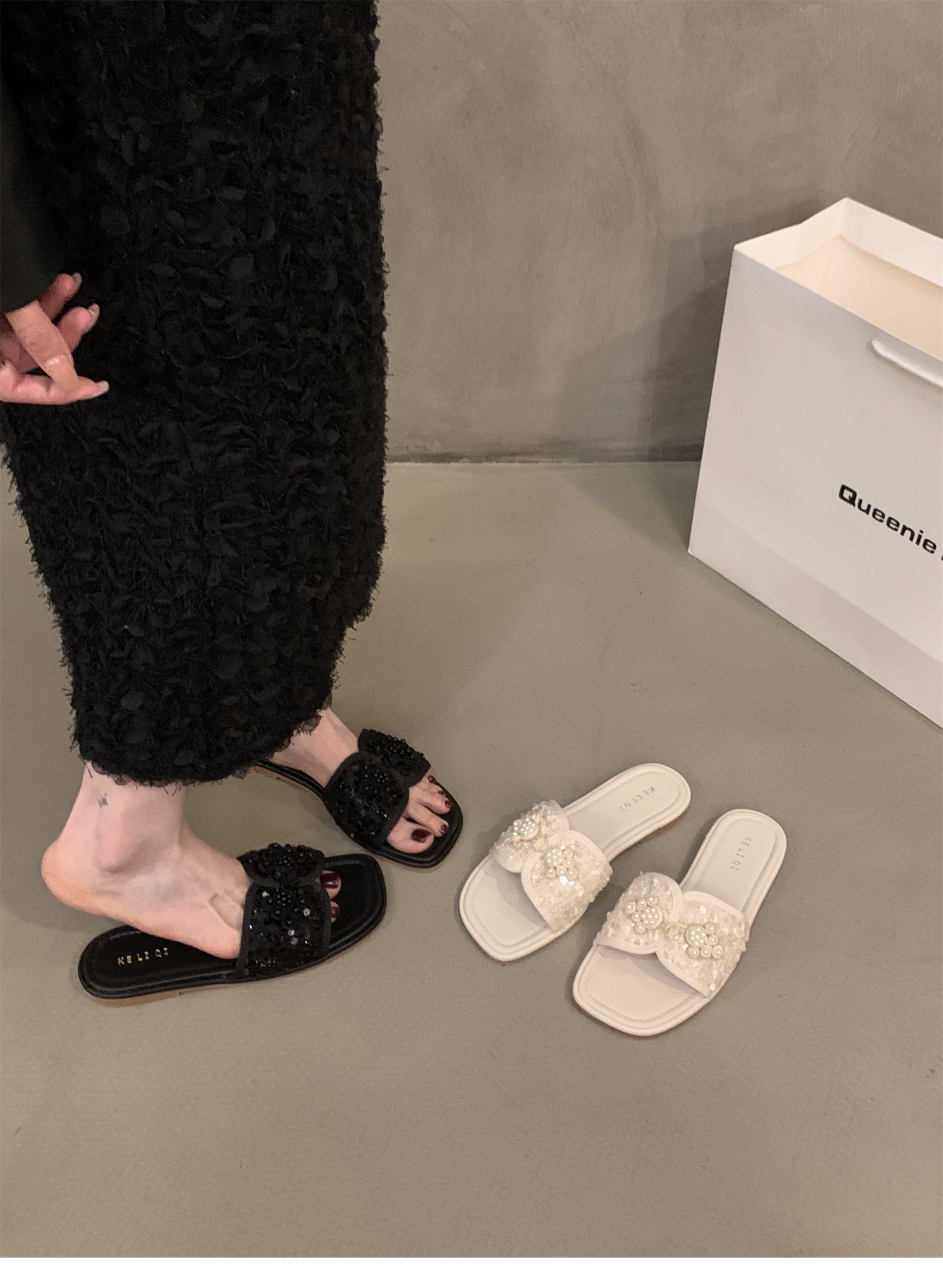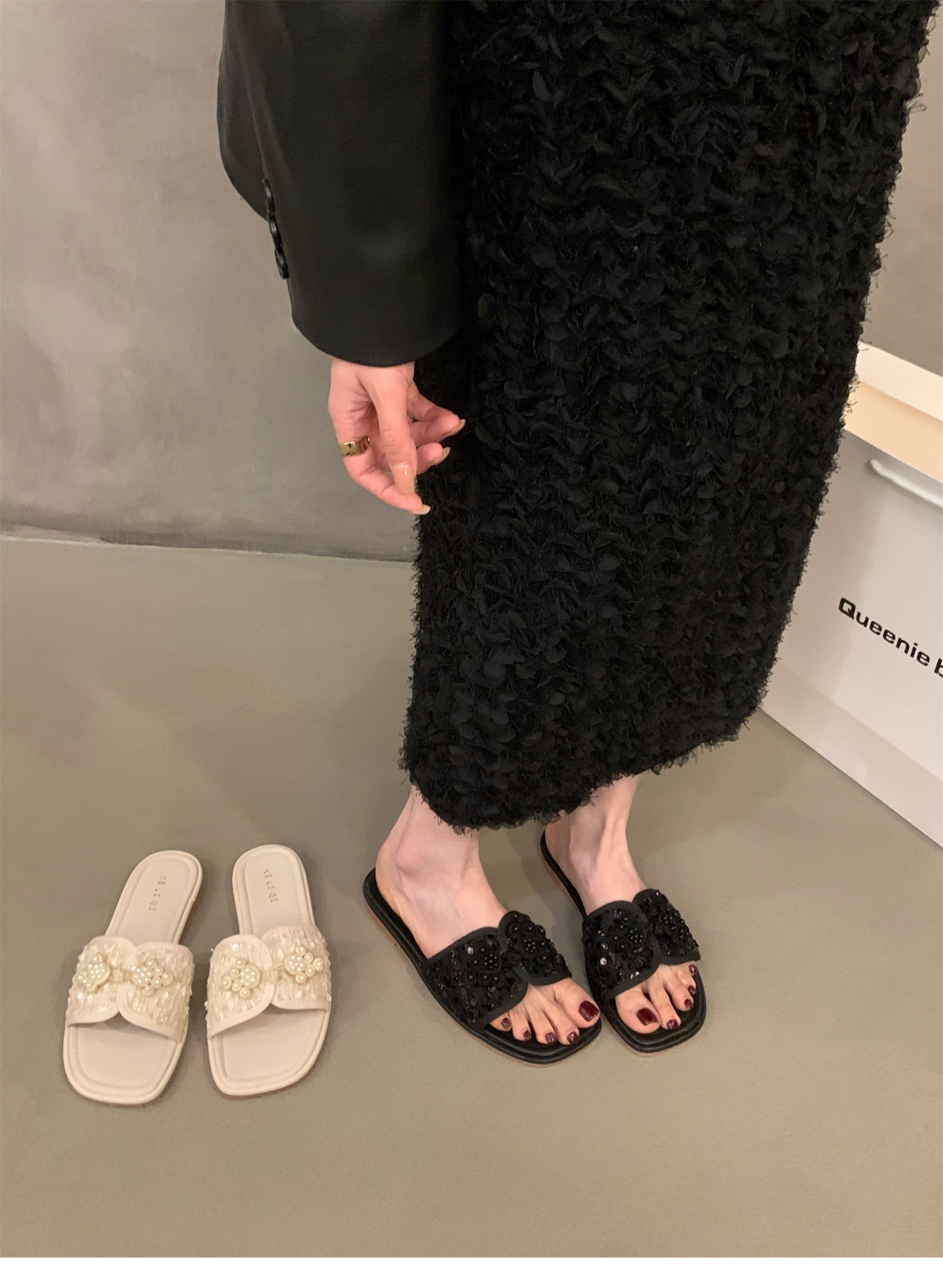 여성용 플랫 프렌치 스타일 슬리퍼, 패셔너블한 아우터웨어 2025 신상 여름 소프트솔 휴가 샌들스토어 가기