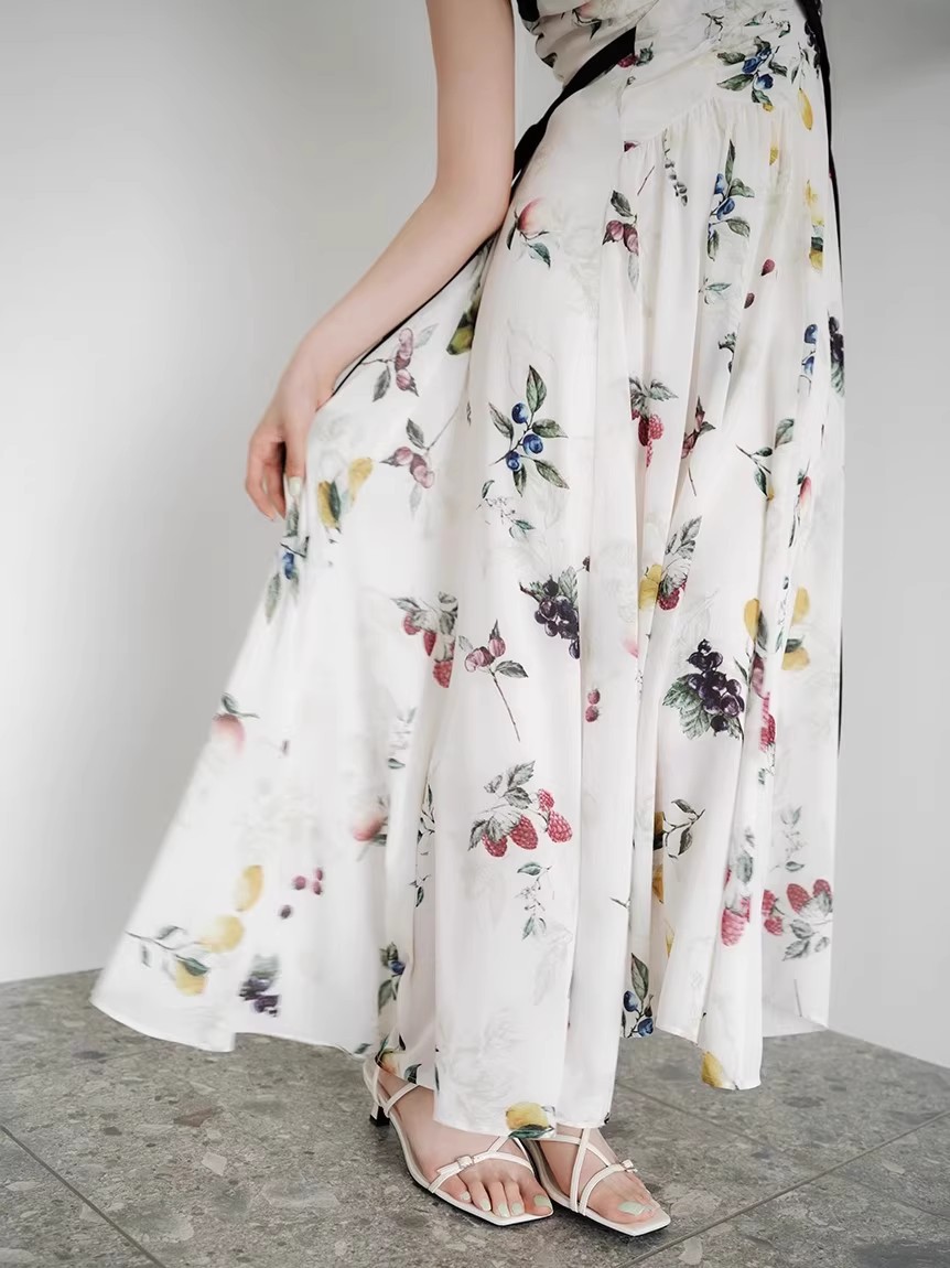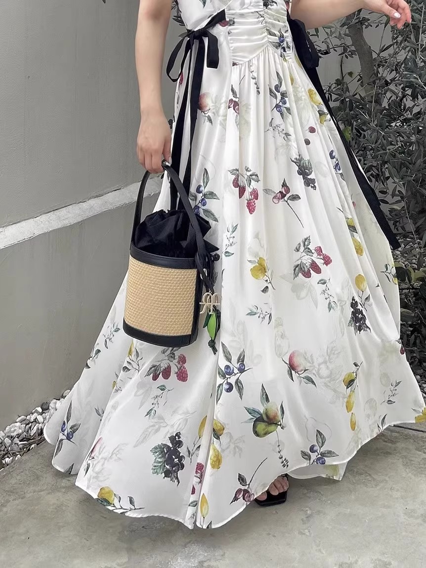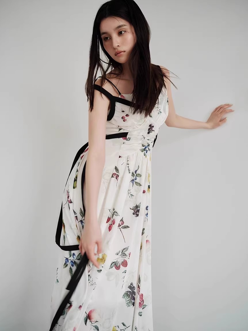 WZFS2537 여름 일본식 FD 신작 서스펜더 과일 프린트 슬림 쉬폰 드레스 조끼 드레스 크로스보더