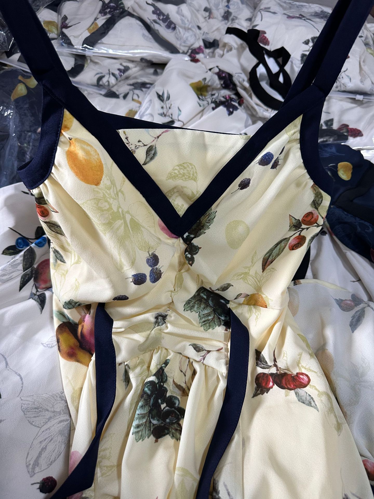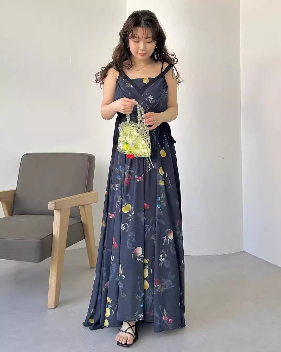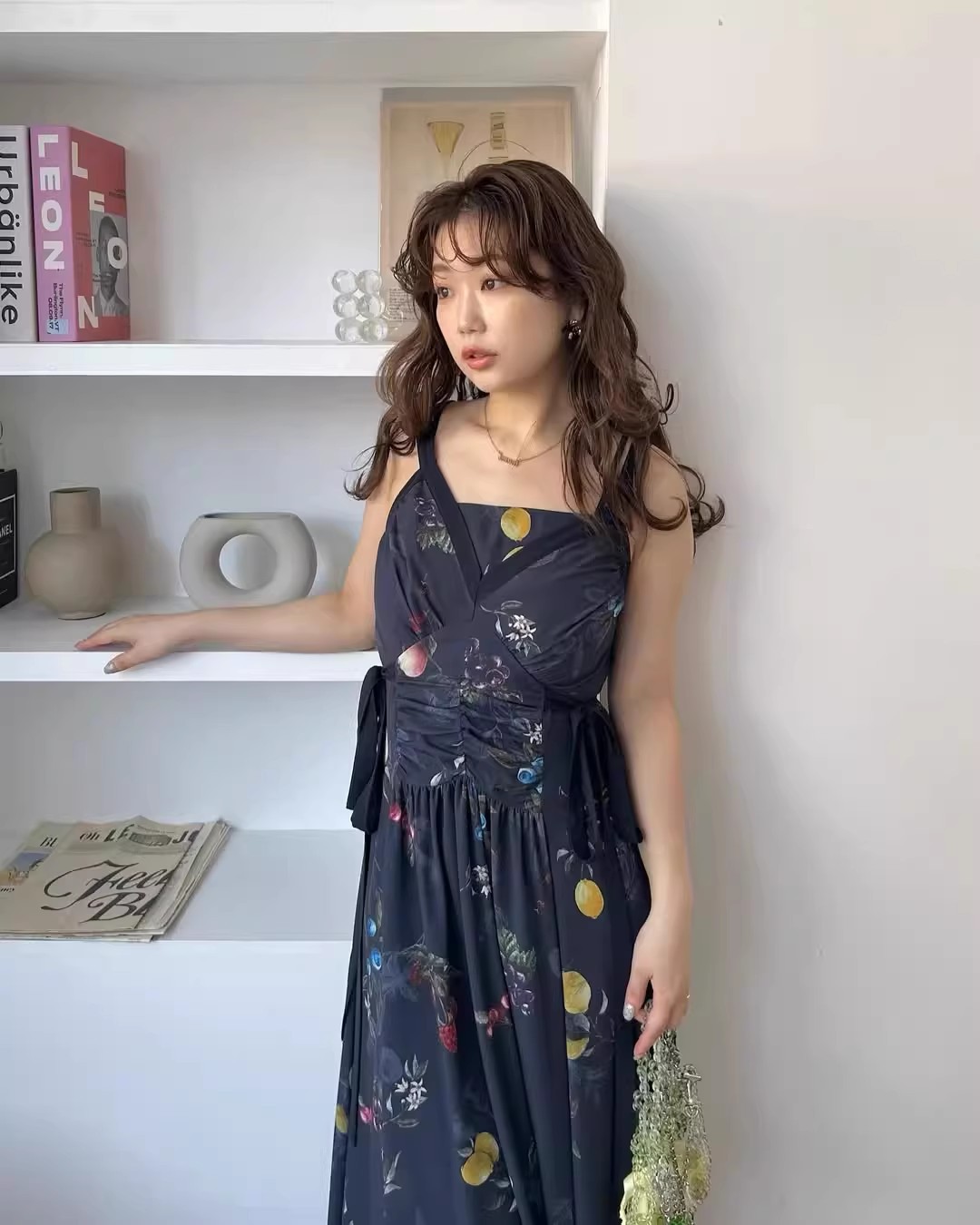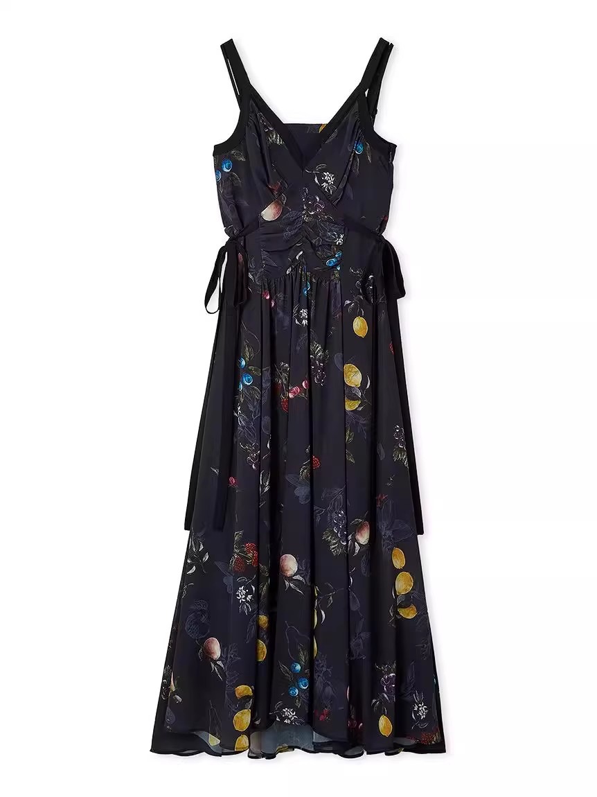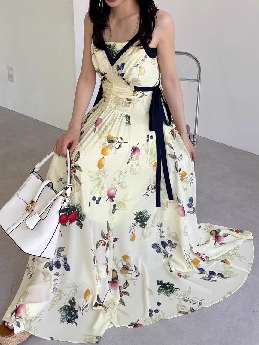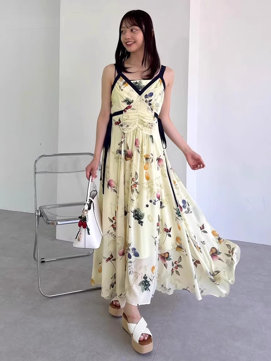WZFS2537 여름 일본식 FD 신작 서스펜더 과일 프린트 슬림 쉬폰 드레스 조끼 드레스 크로스보더스토어 가기