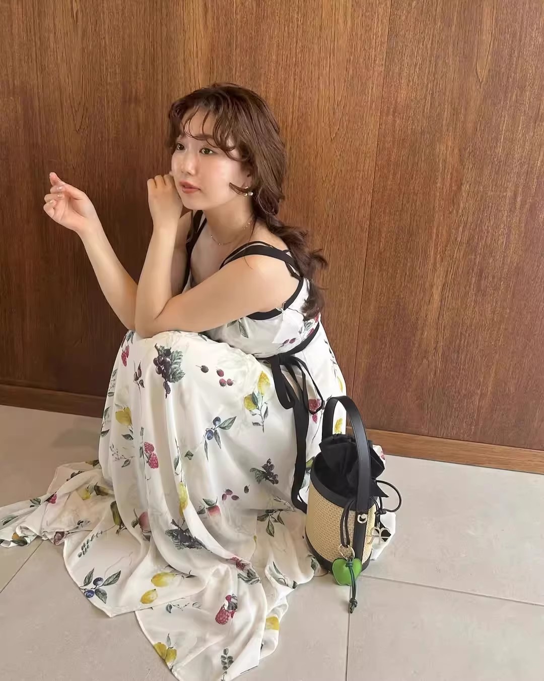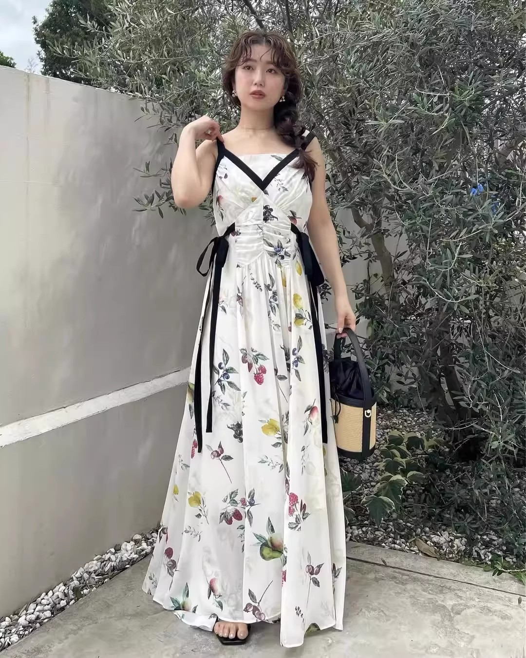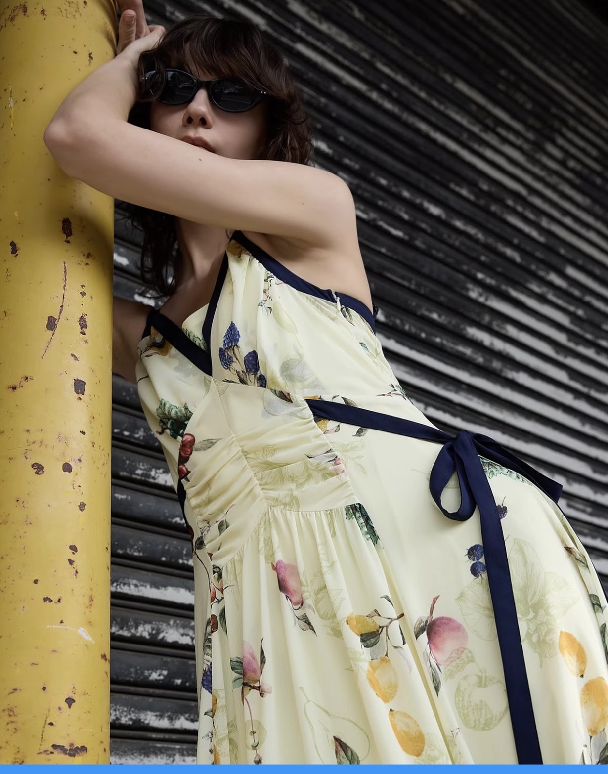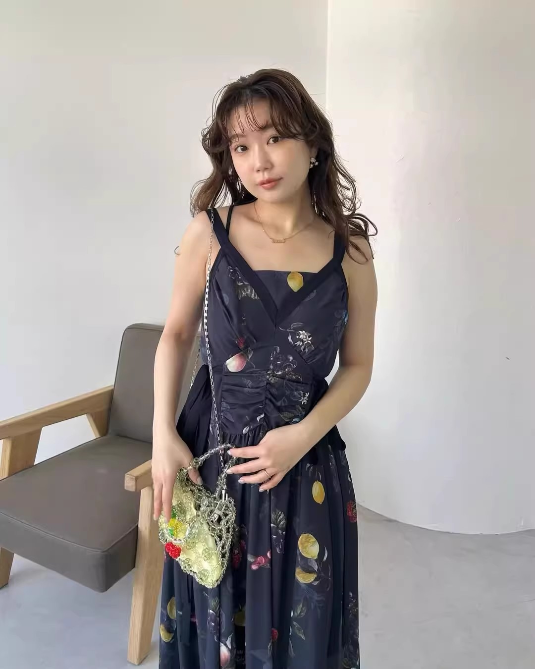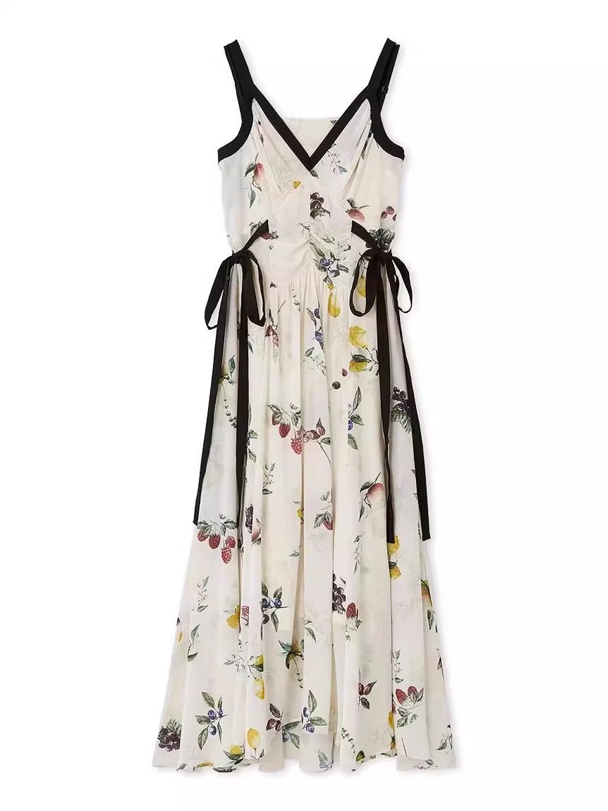 WZFS2537 여름 일본식 FD 신작 서스펜더 과일 프린트 슬림 쉬폰 드레스 조끼 드레스 크로스보더스토어 가기