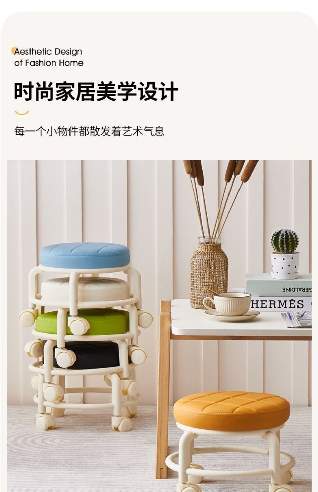 범용 바퀴가 달린 작은 의자, 편안하고 오래 지속되는 가정용 현대식 간단한 이동식 바퀴 달린 벤치, 아기를 위한 휠이 달린 낮은 의자, 둥근 의자스토어 가기