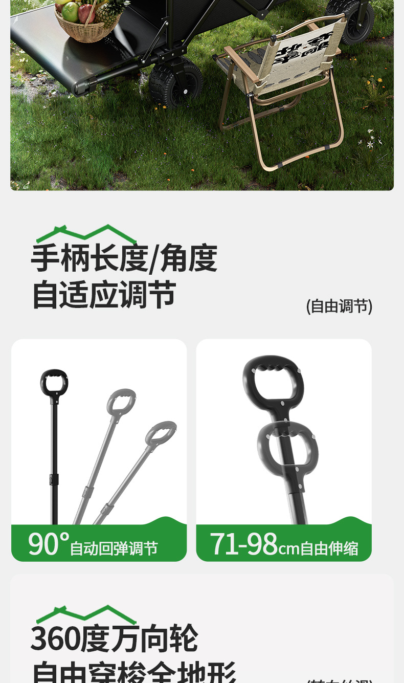 접이식 야외 캠핑 트롤리, 푸시백 피크닉 트롤리, 캠핑 트레일러, 캠핑 트레일러