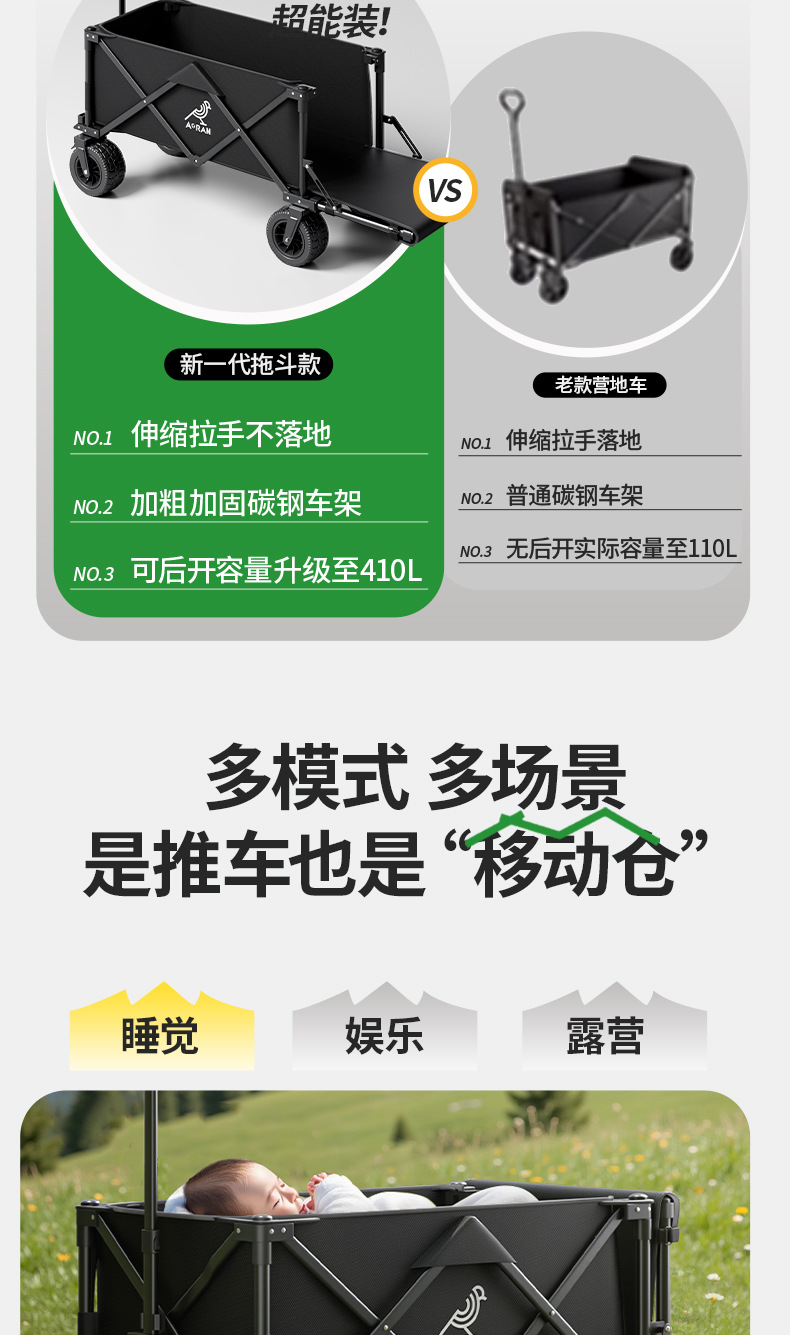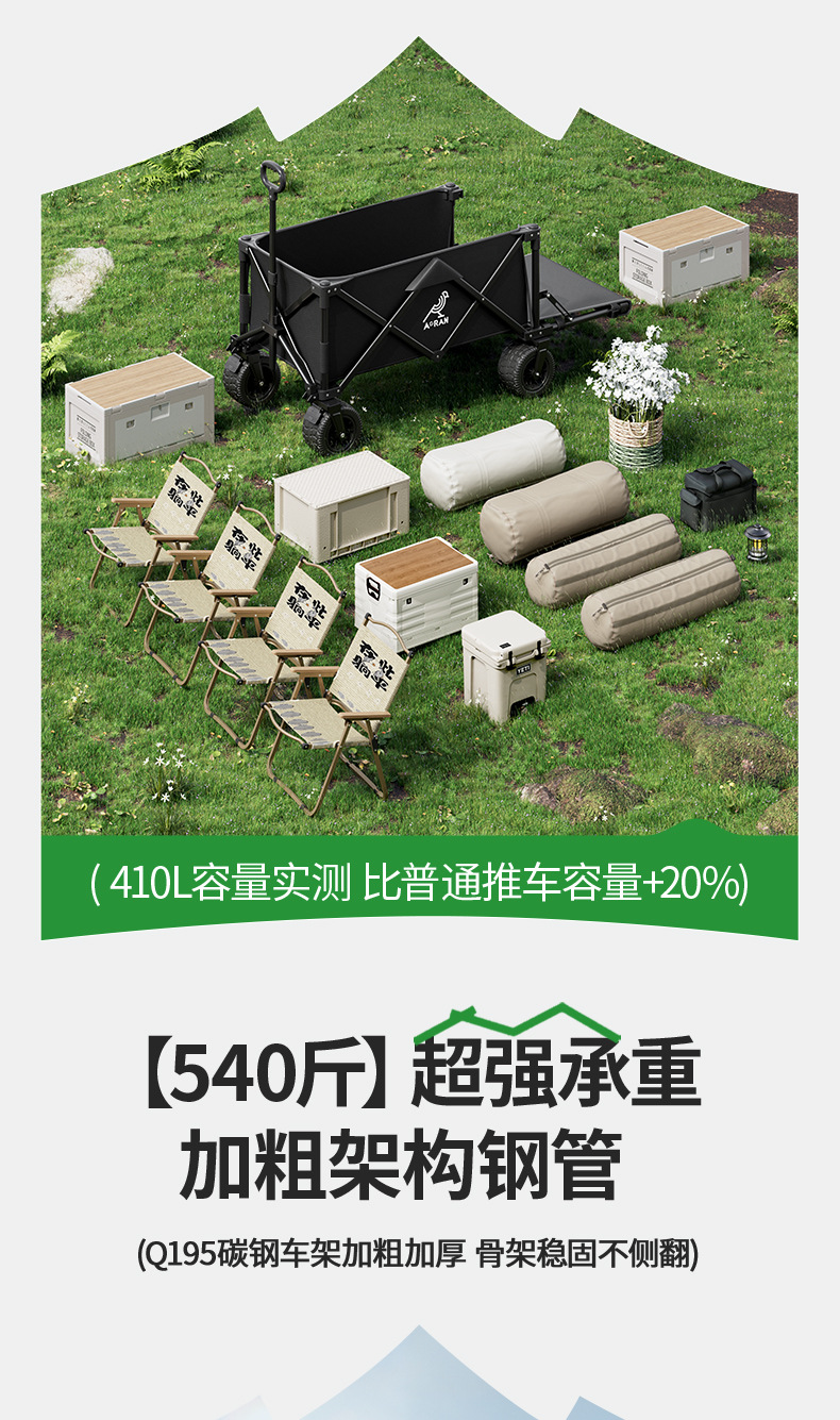접이식 야외 캠핑 트롤리, 푸시백 피크닉 트롤리, 캠핑 트레일러, 캠핑 트레일러스토어 가기