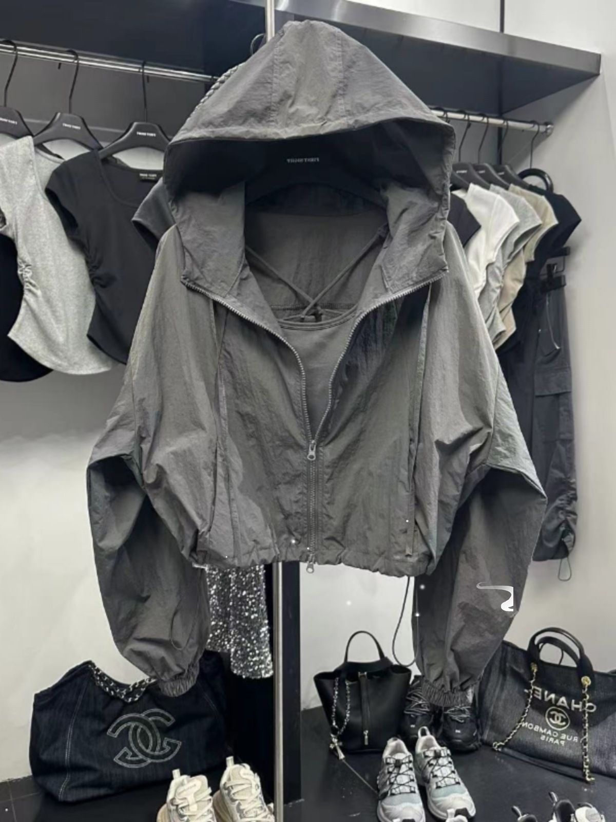 루즈한 긴팔 후드 자외선 차단제 루즈한 긴팔 후드 자외선 차단제 얇은 코트스토어 가기
