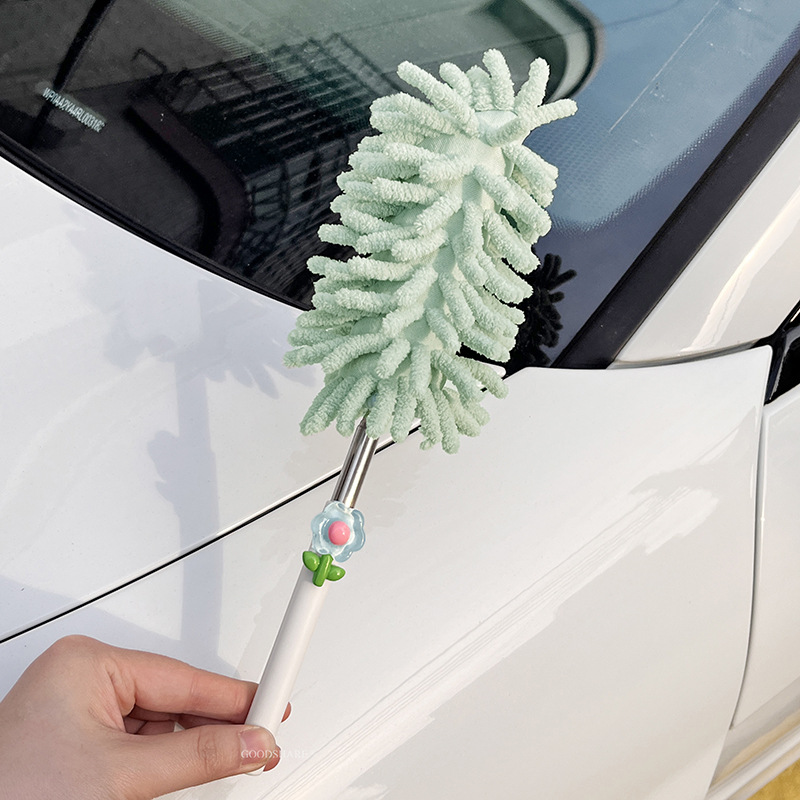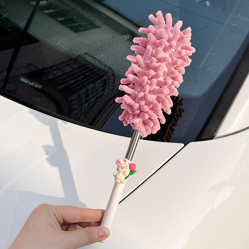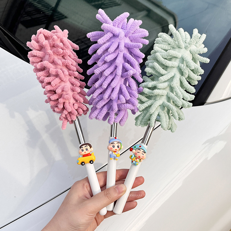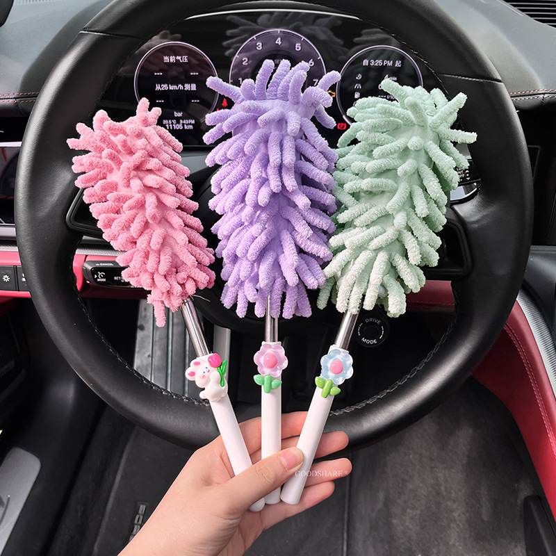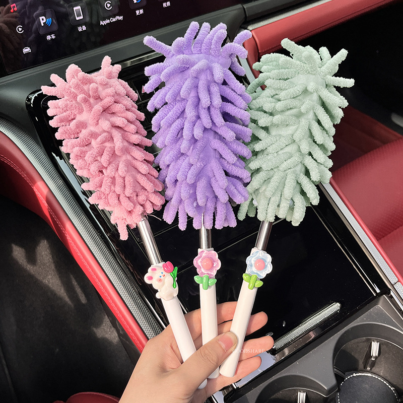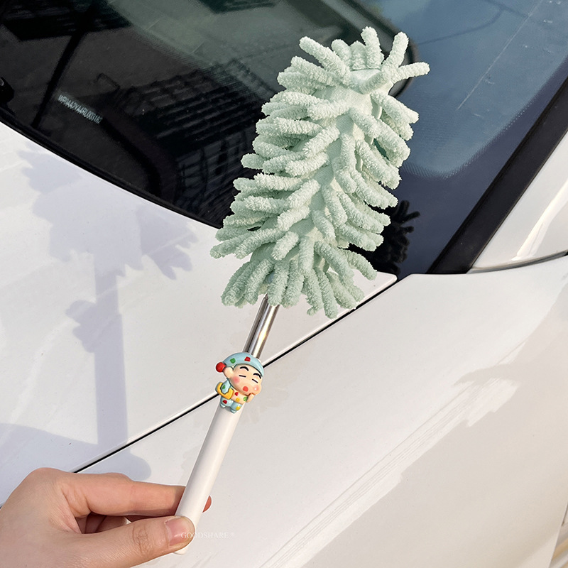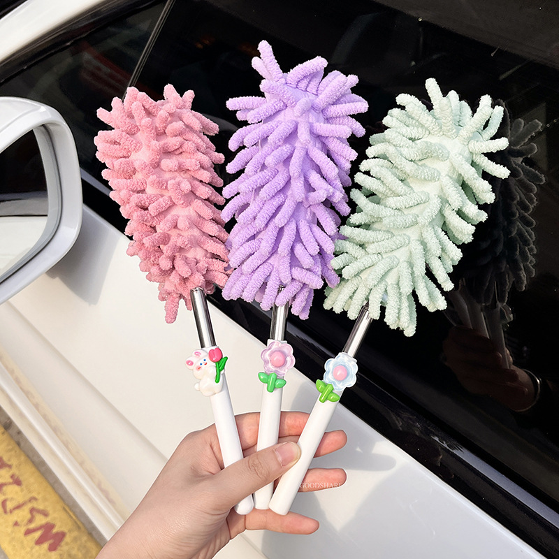 자동차 먼지 제거 및 먼지 청소용 깃털 먼지떨이 2025 새로운 귀여운 만화 자동차 개폐식 먼지 청소 및 자동차 닦기 도구