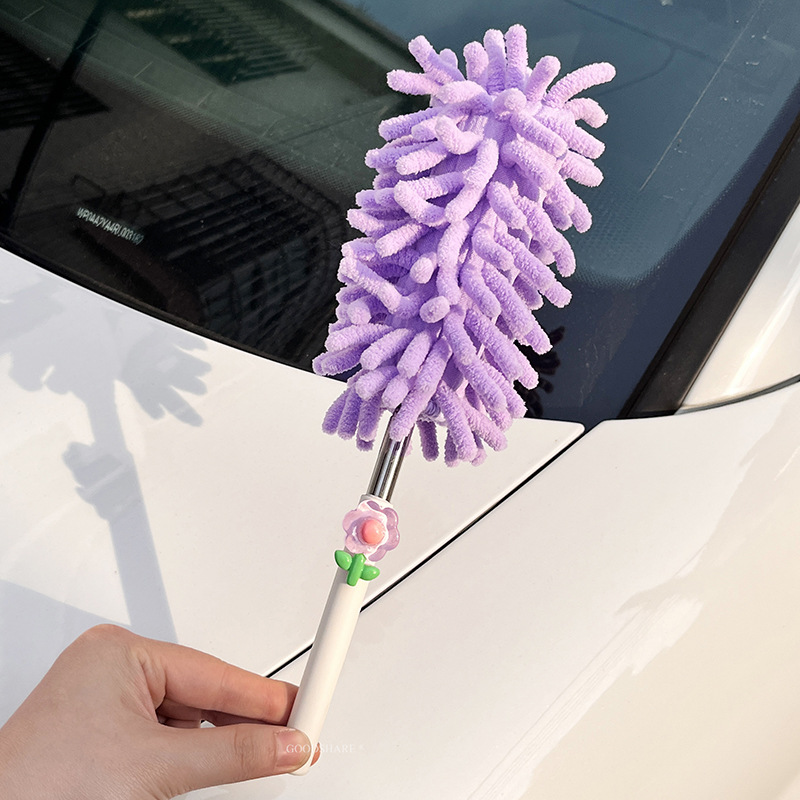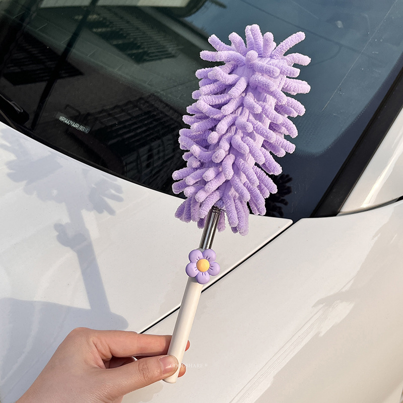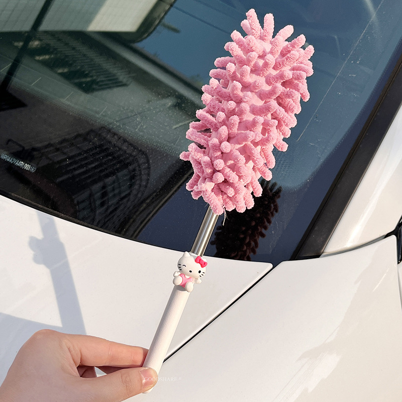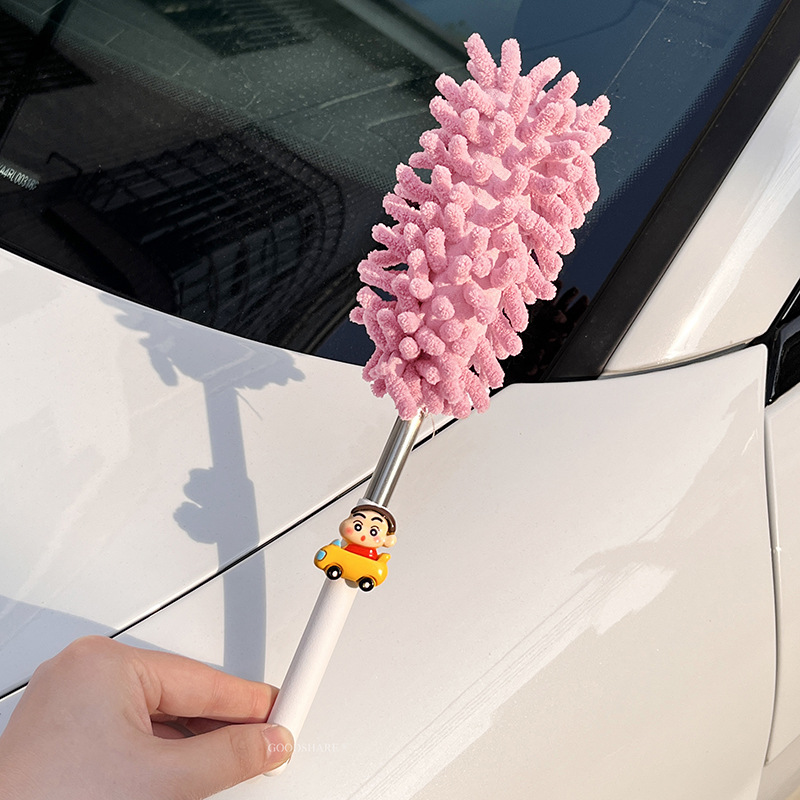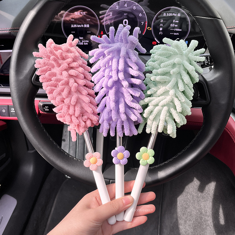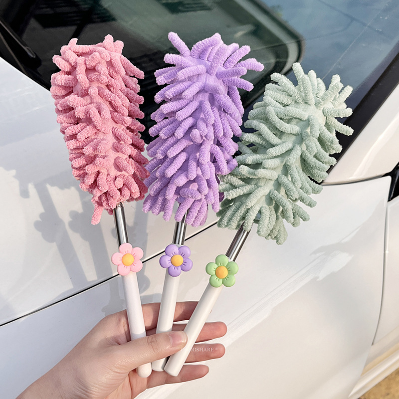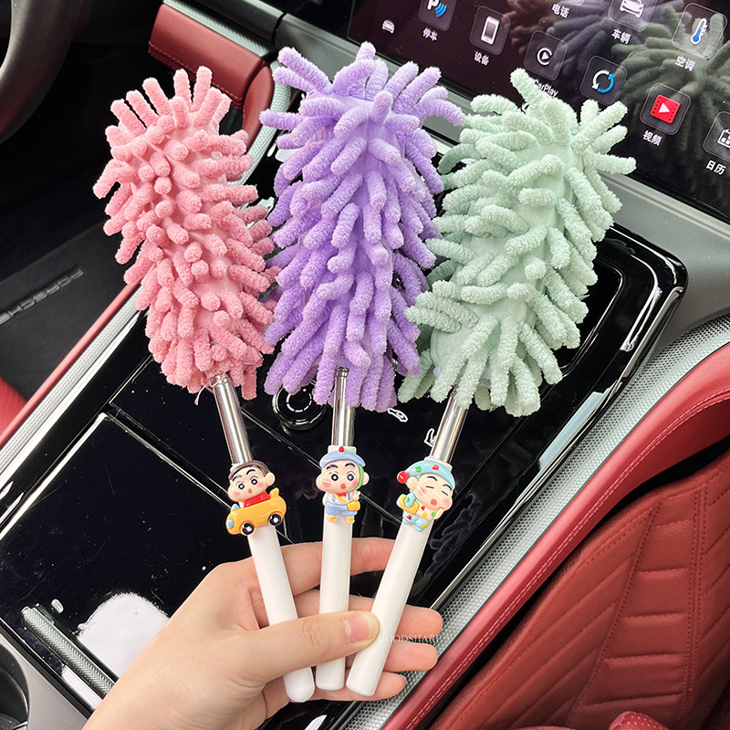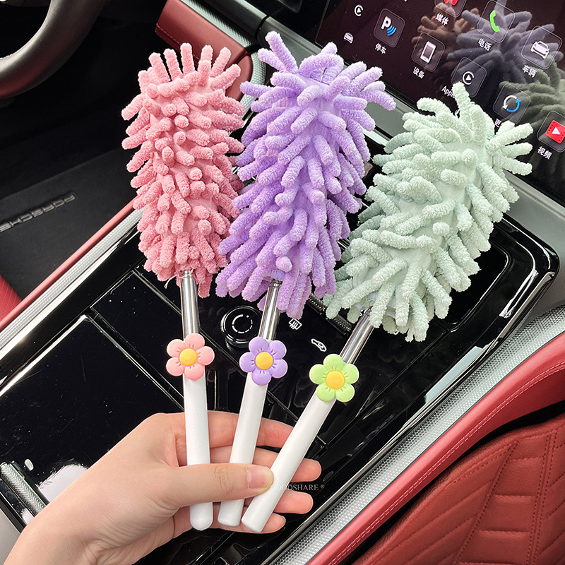 자동차 먼지 제거 및 먼지 청소용 깃털 먼지떨이 2025 새로운 귀여운 만화 자동차 개폐식 먼지 청소 및 자동차 닦기 도구
