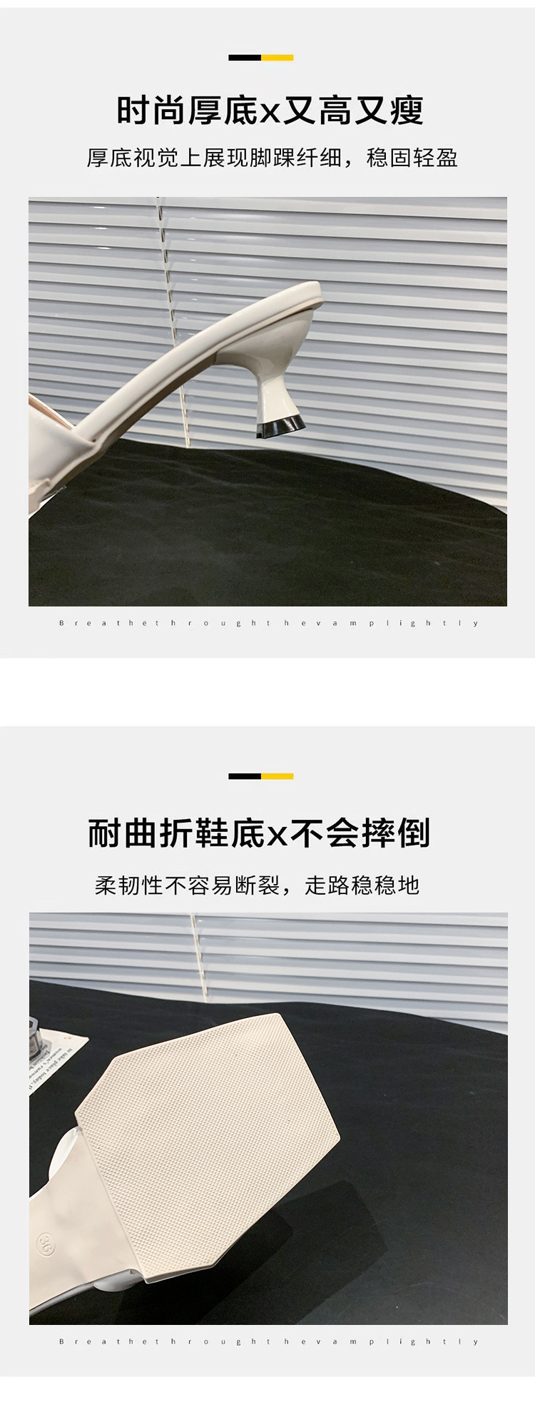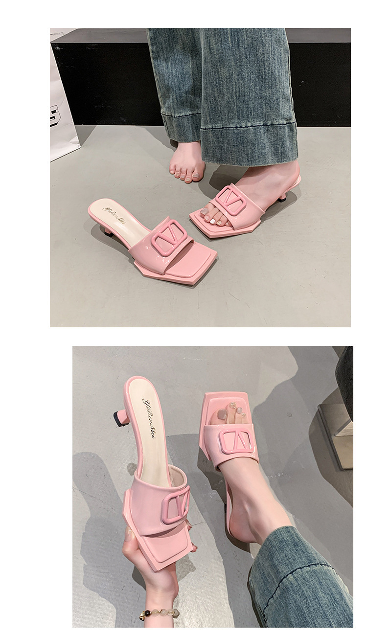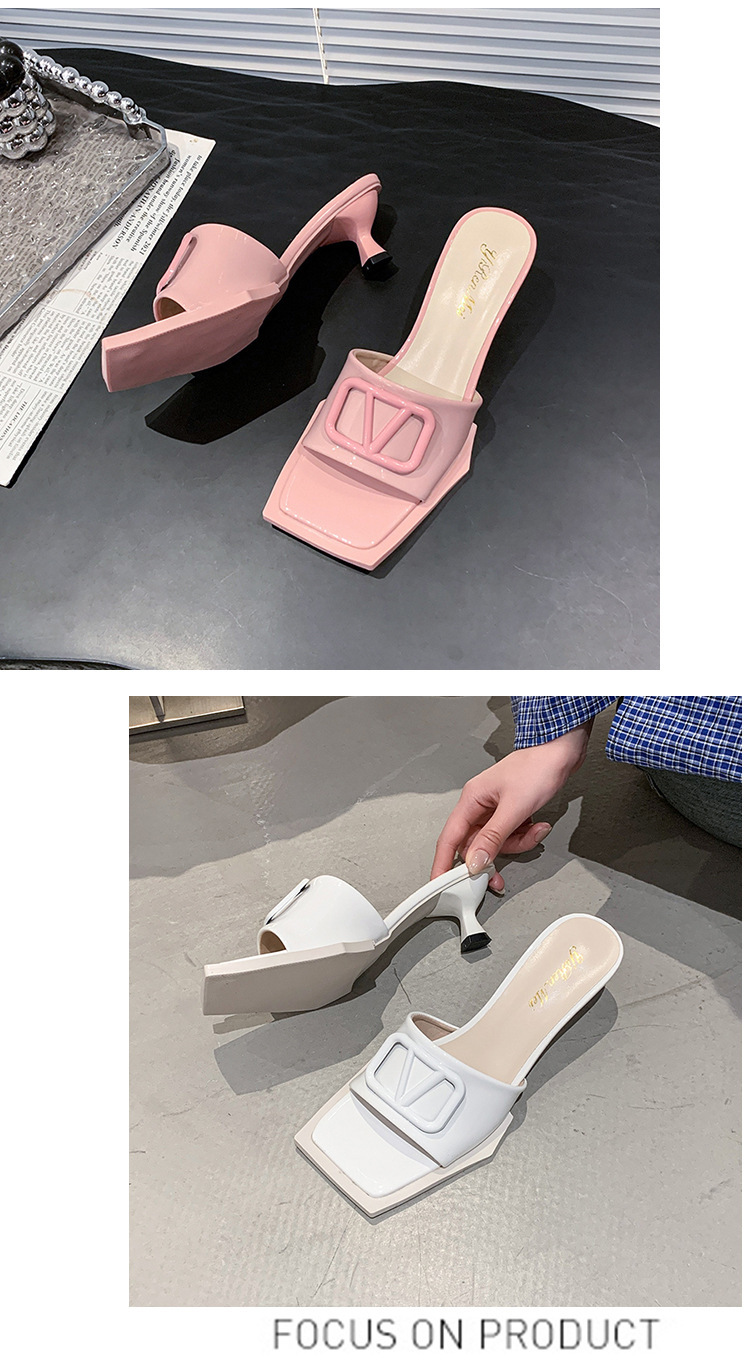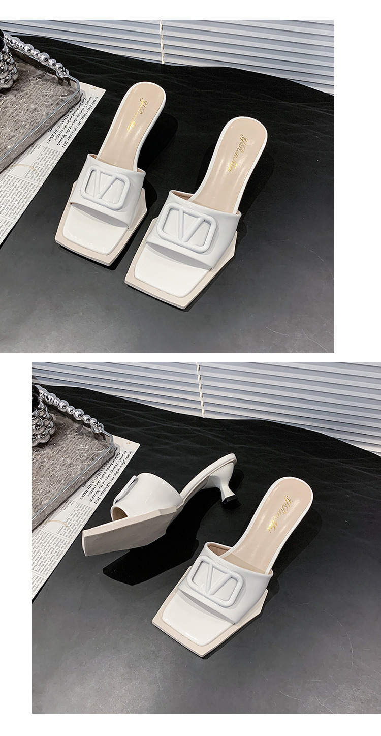 2025년 신상 여름 스퀘어 토 하이힐 슬리퍼, 스틸레토 힐, 페이턴트 가죽 슬리퍼, 데일리 통근 하이힐 슬리퍼스토어 가기