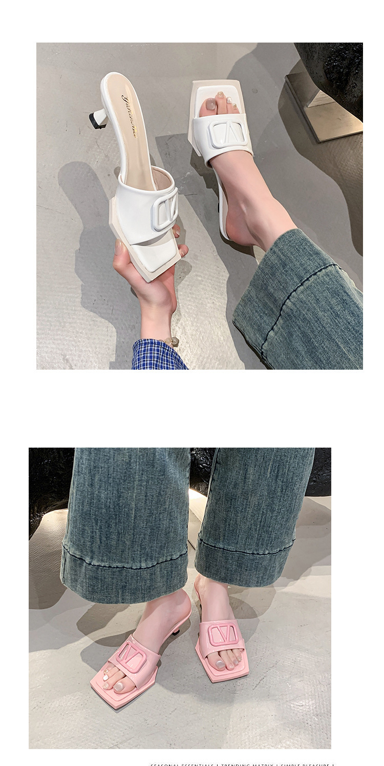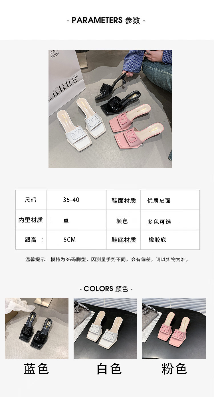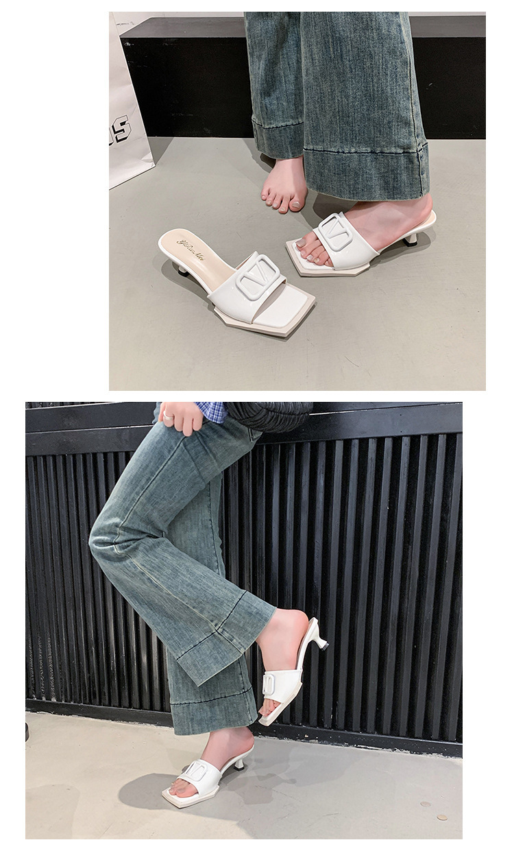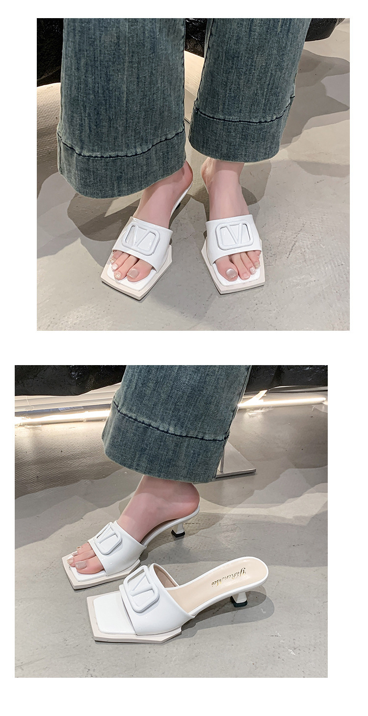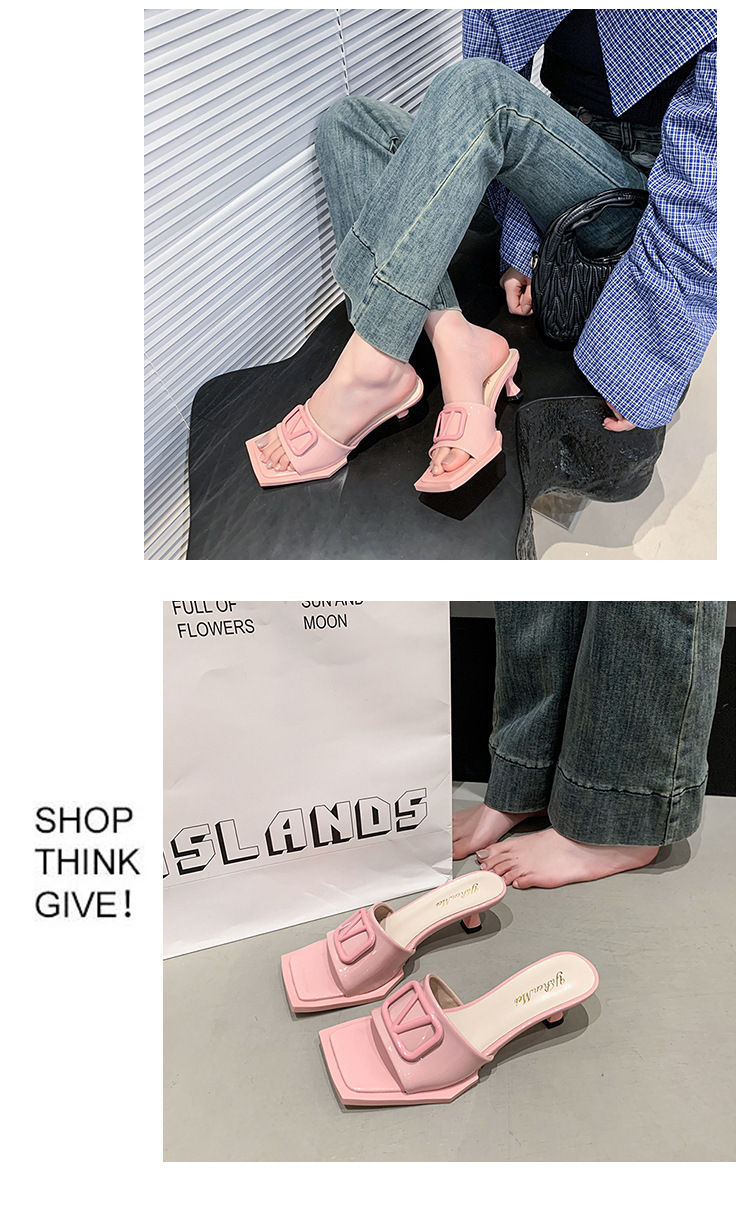 2025년 신상 여름 스퀘어 토 하이힐 슬리퍼, 스틸레토 힐, 페이턴트 가죽 슬리퍼, 데일리 통근 하이힐 슬리퍼스토어 가기
