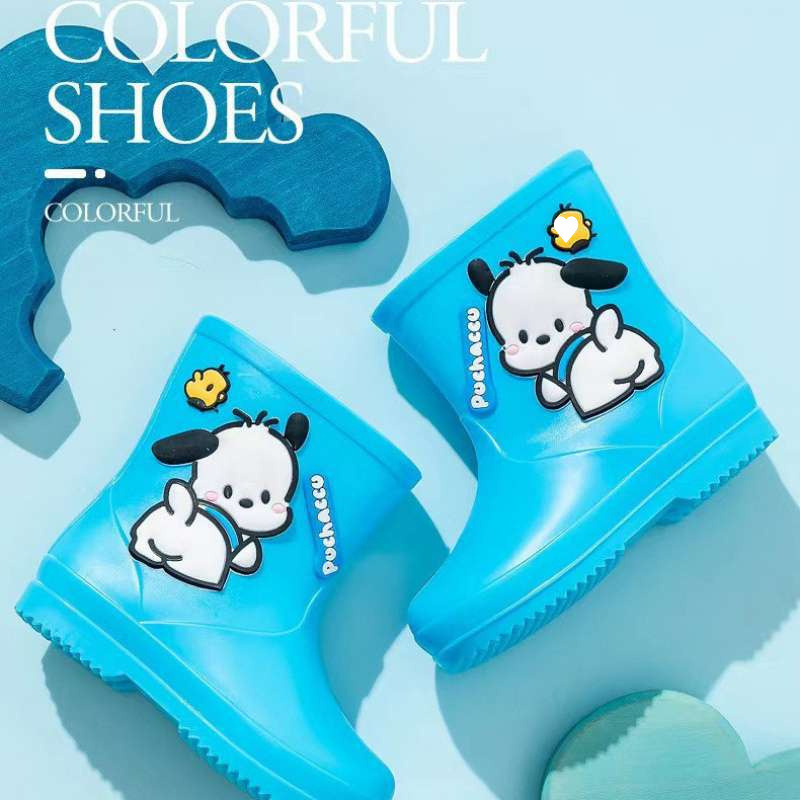 어린이 장화 방수 및 미끄럼 방지 만화 공룡 아기 장화 소년과 소녀 1-6 세 귀여운 물 신발 중간 튜브 덧신