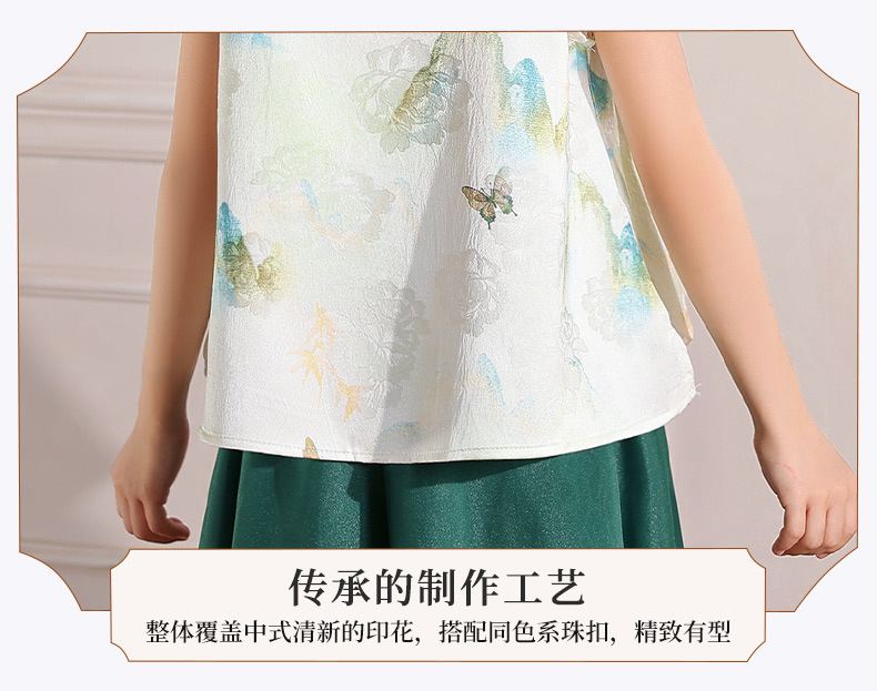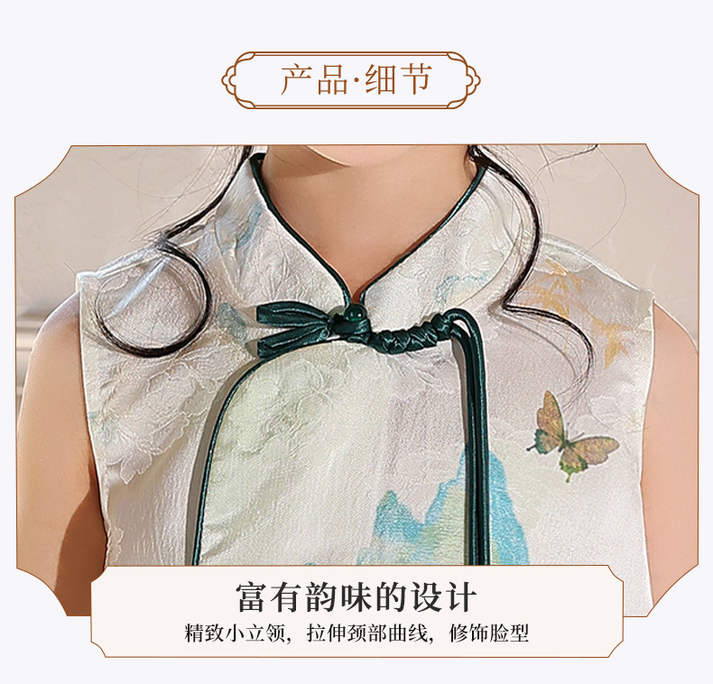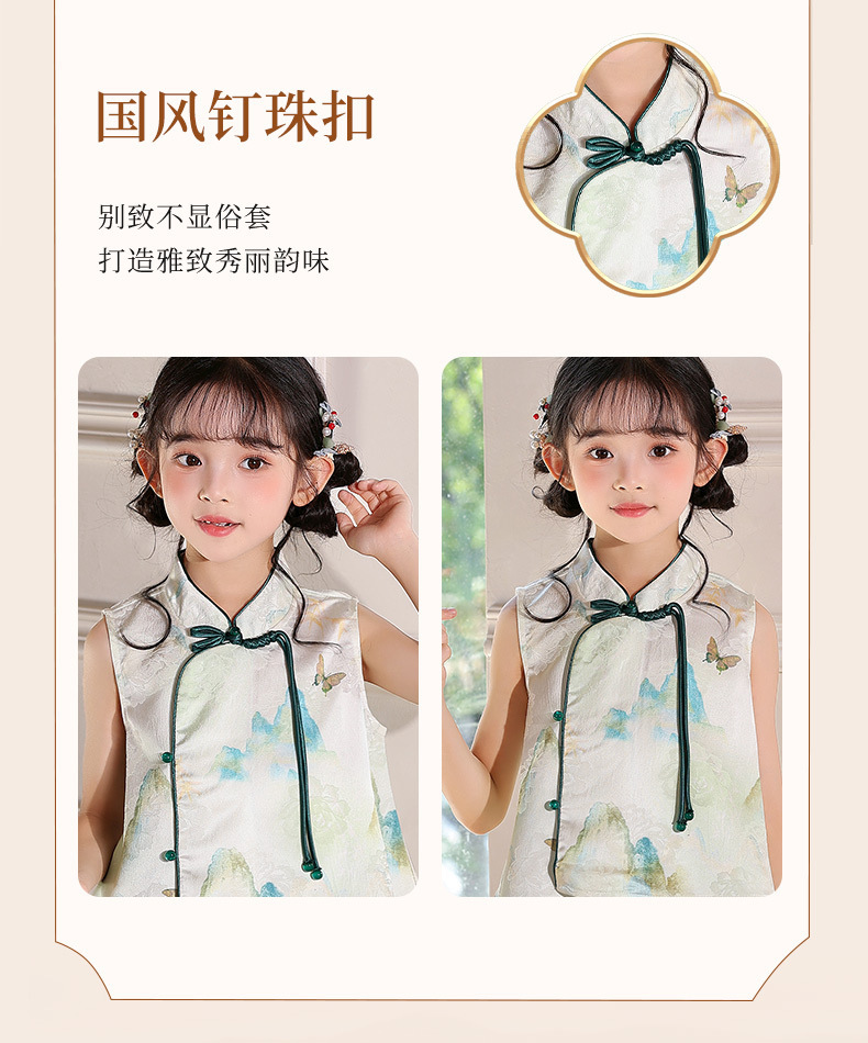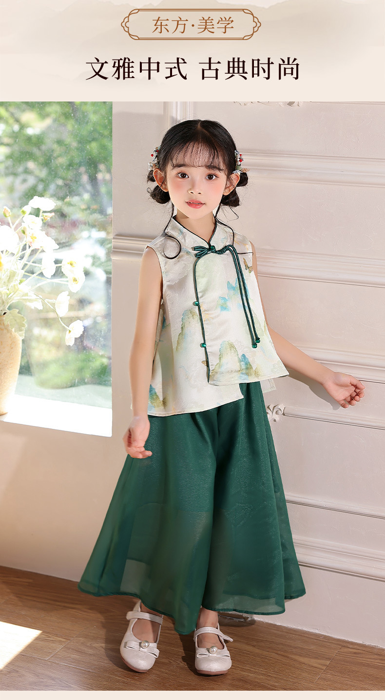 어린이 새로운 중국 스타일 조끼 Hanfu 정장 2025 여름 새로운 스타일 소녀 중국 스타일 조끼 와이드 레그 바지 투피스 세트스토어 가기