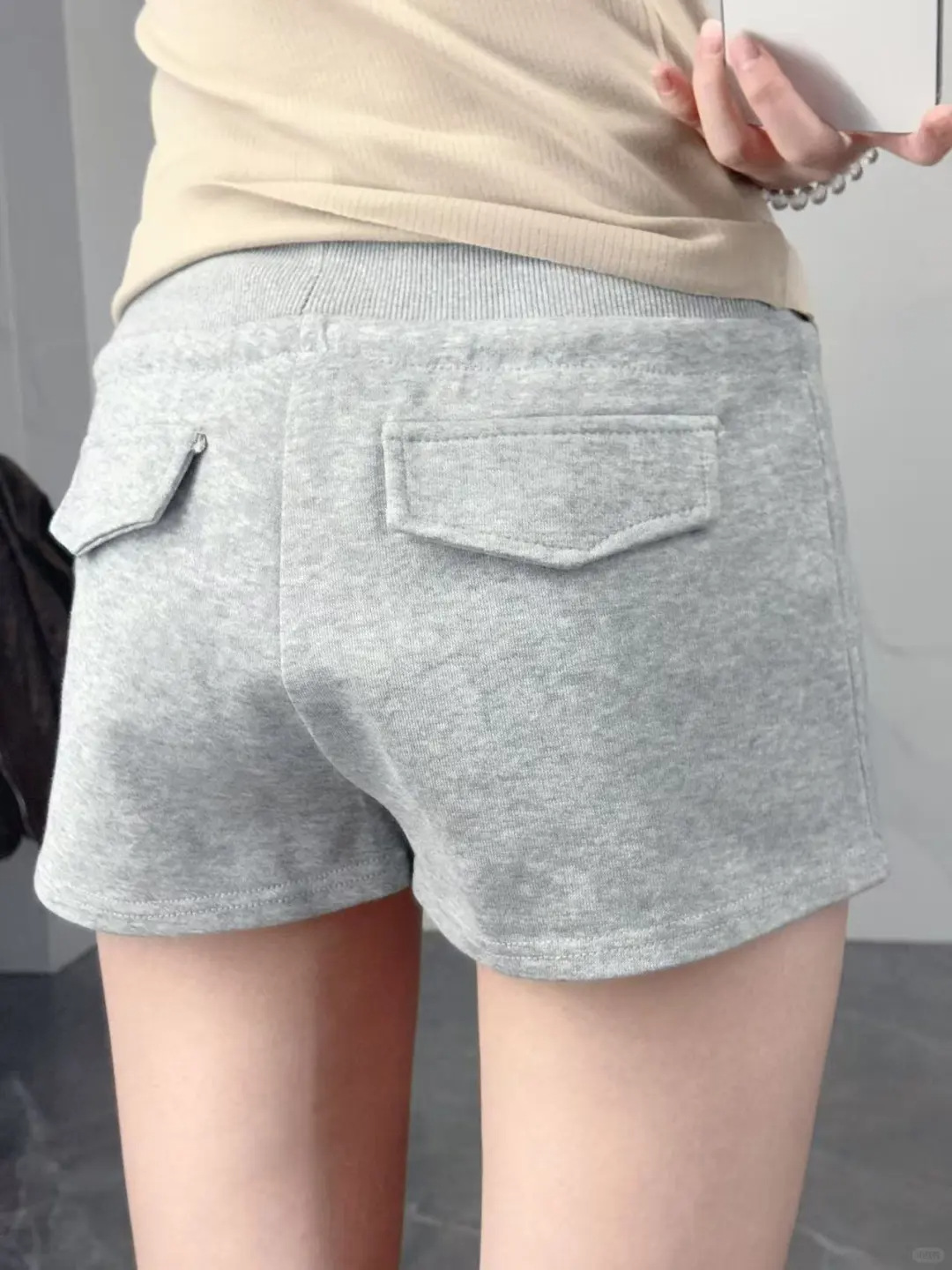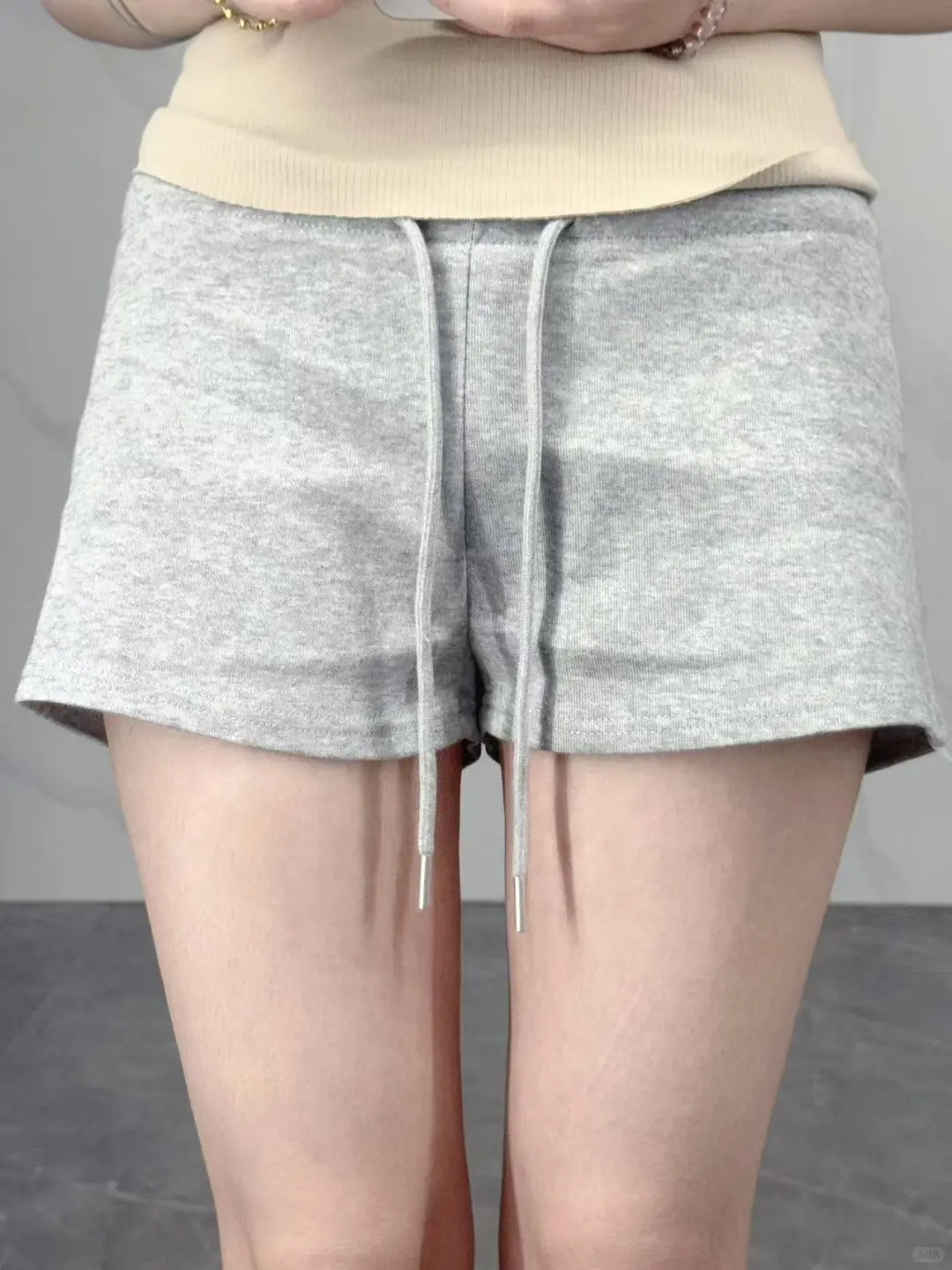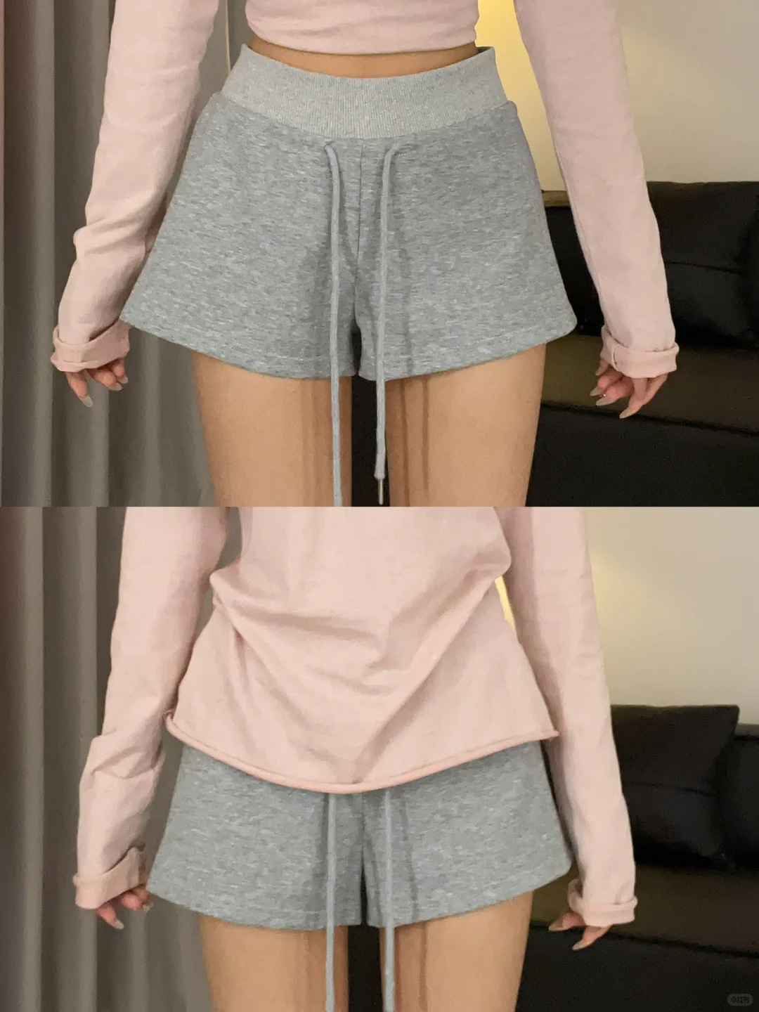 인터넷 연예인 하이웨이스트 슬리밍 그레이 A라인 반바지 스포츠 캐주얼 팬츠 여성 여름 드로스트링 핫팬츠 타이트 힙 팬츠