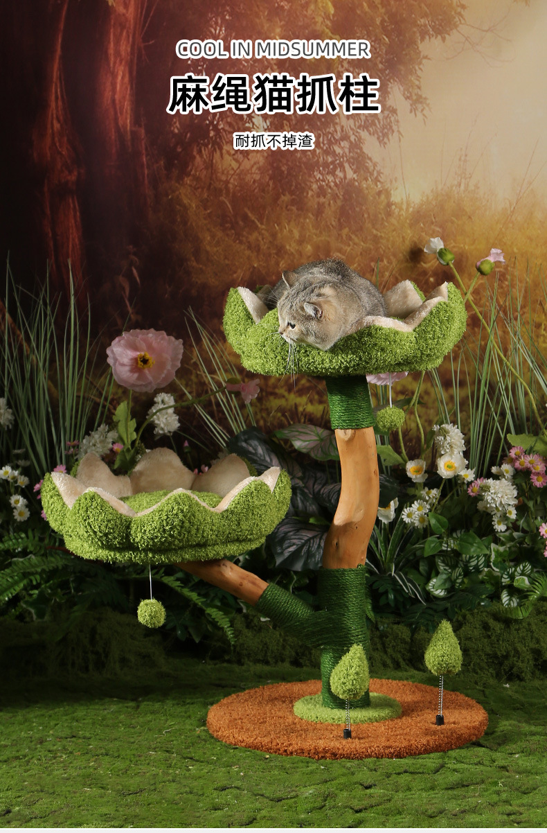 원목 고양이 클라이밍 프레임, 대형 고양이가 공간을 차지하지 않음, 애완동물 클라이밍 프레임, 고양이 둥지, 일체형 애완동물 장난감, 행운의 연꽃