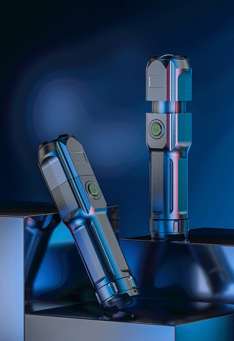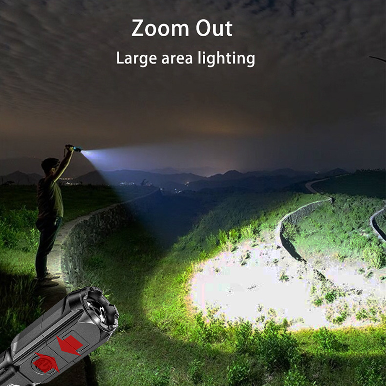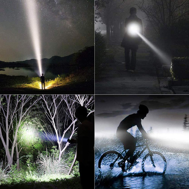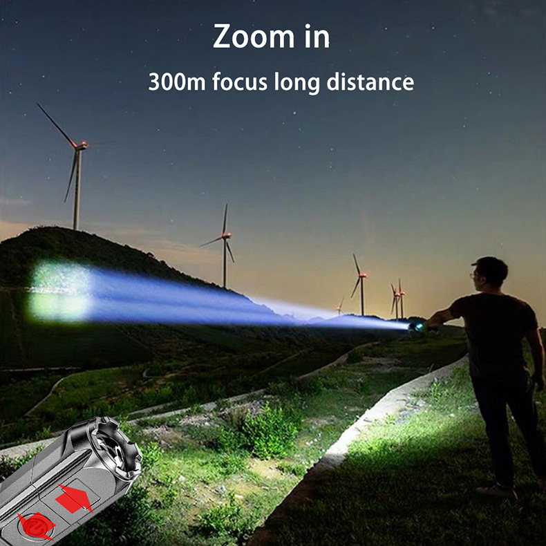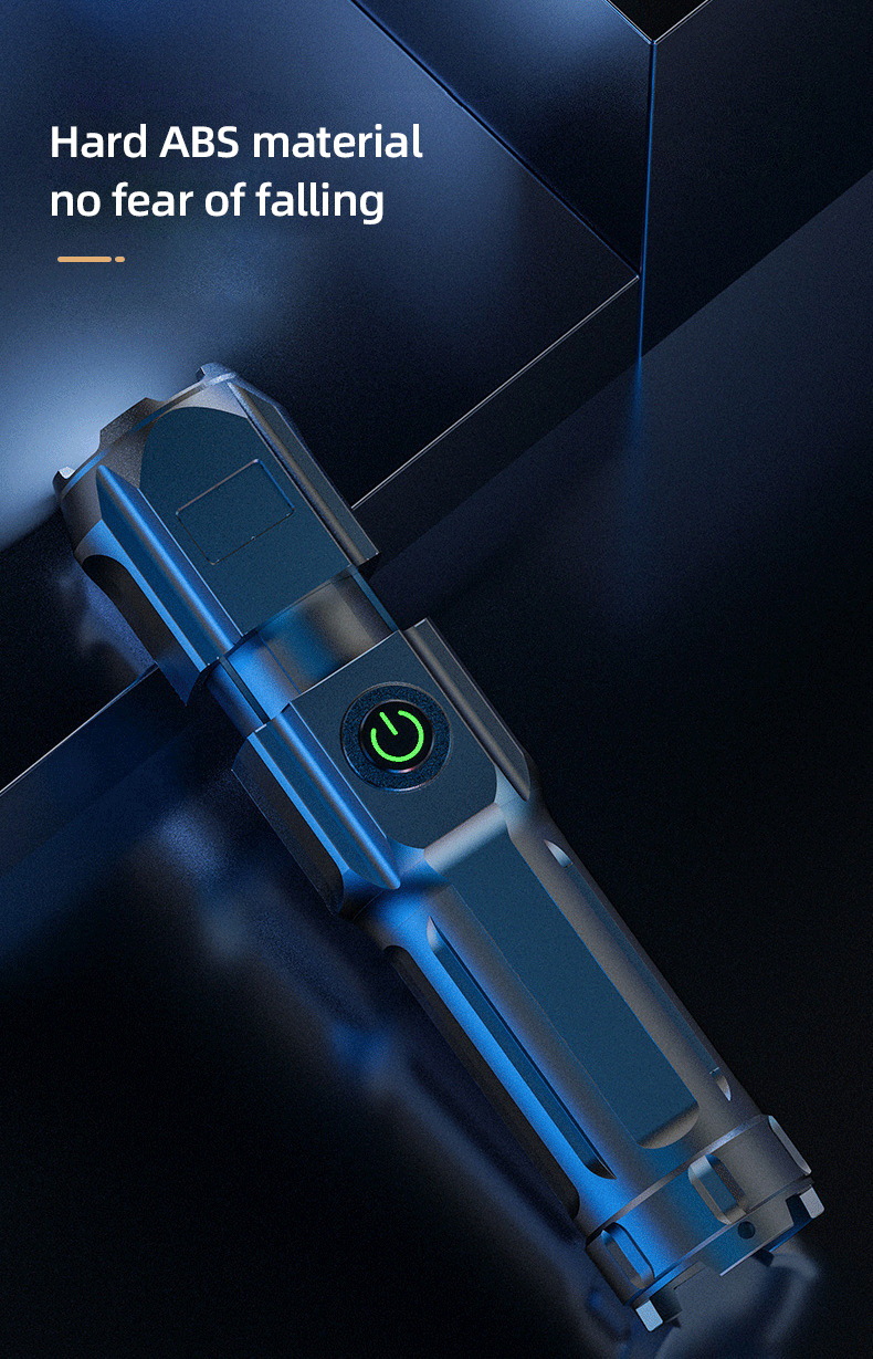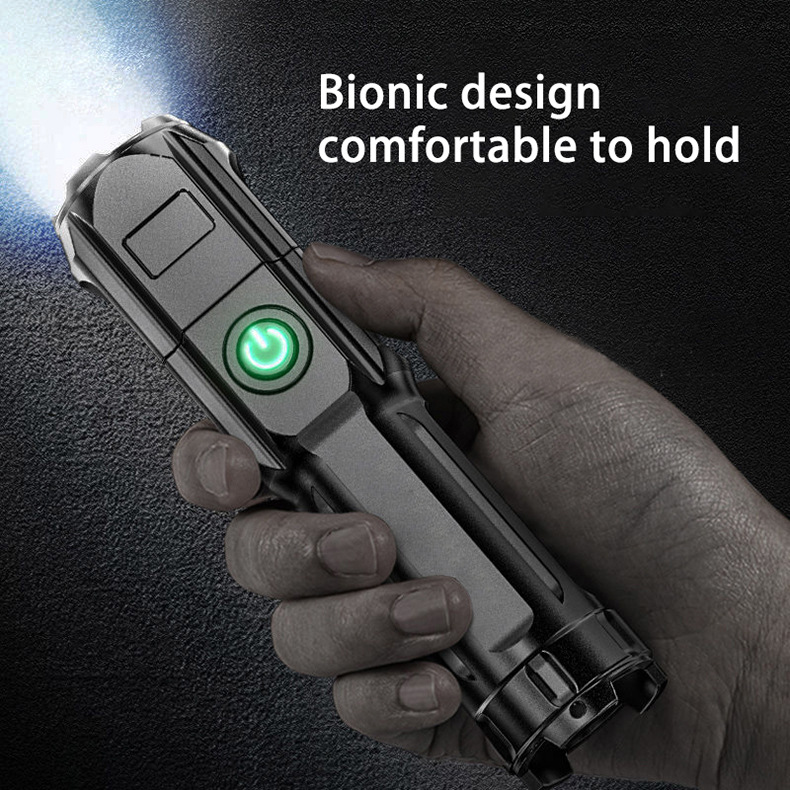 야외 강한 빛 슈퍼 밝은 장거리 손전등 충전식 긴 수명 대용량 리튬 배터리 플라스틱 손전등