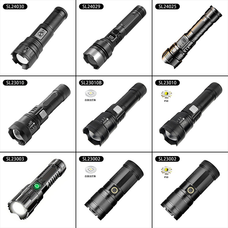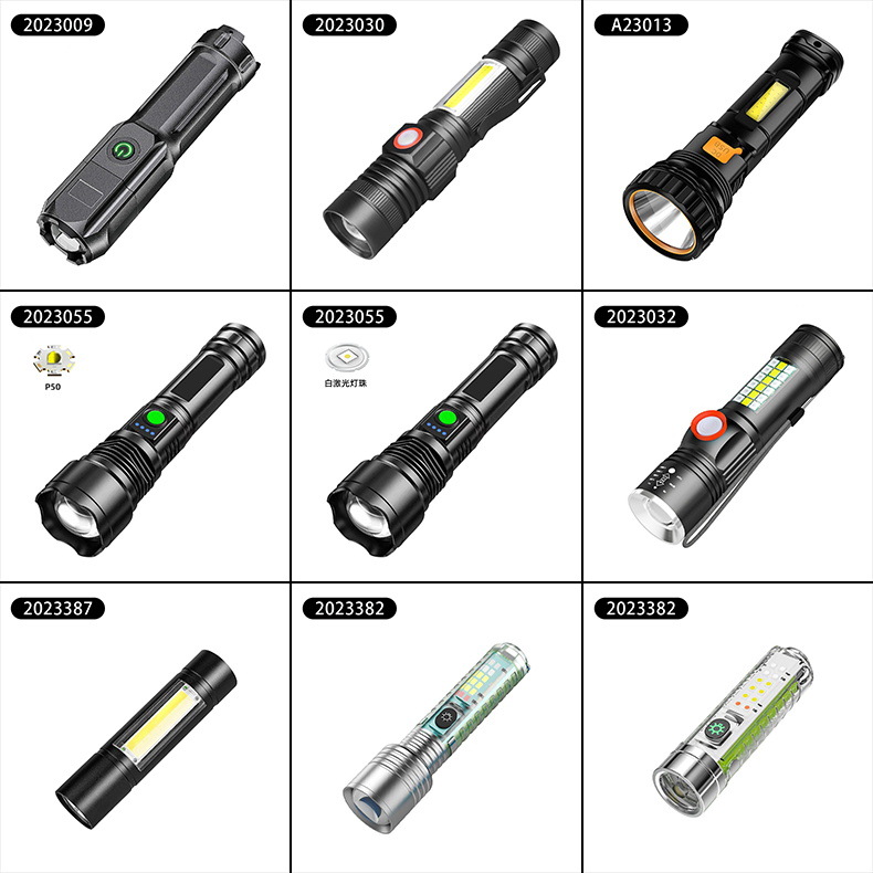 야외 강한 빛 슈퍼 밝은 장거리 손전등 충전식 긴 수명 대용량 리튬 배터리 플라스틱 손전등스토어 가기