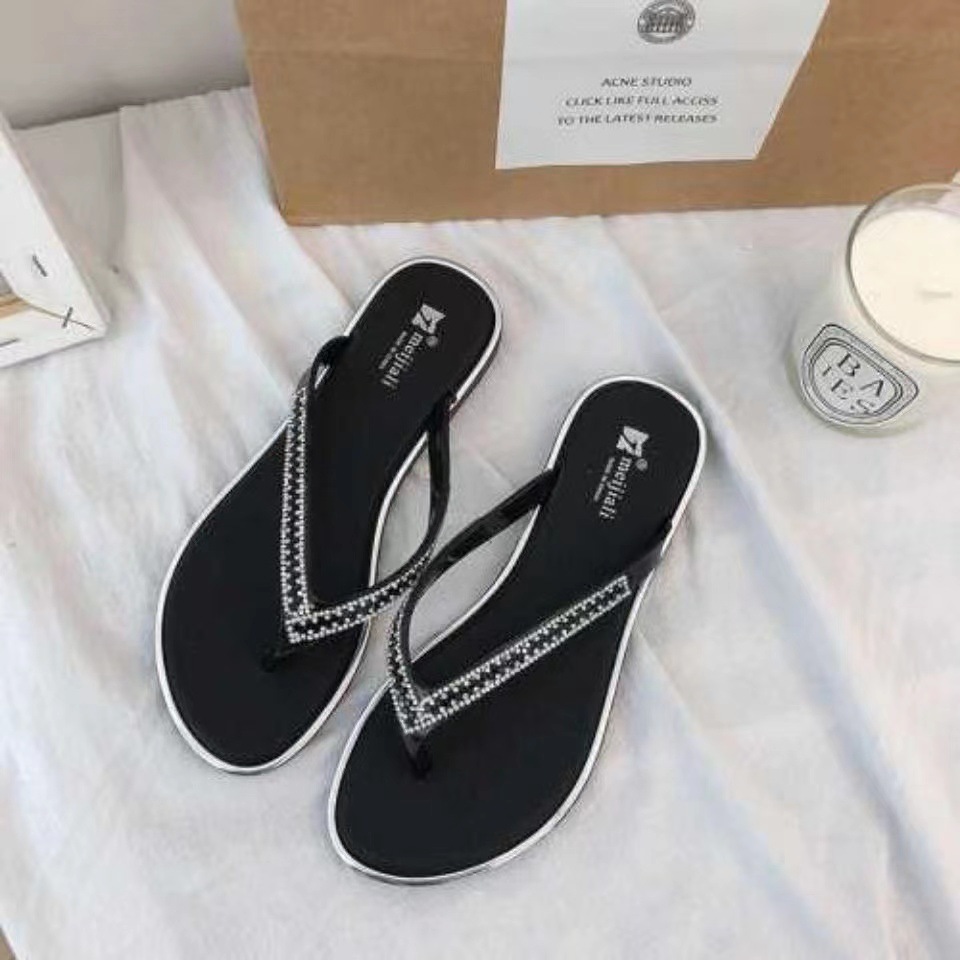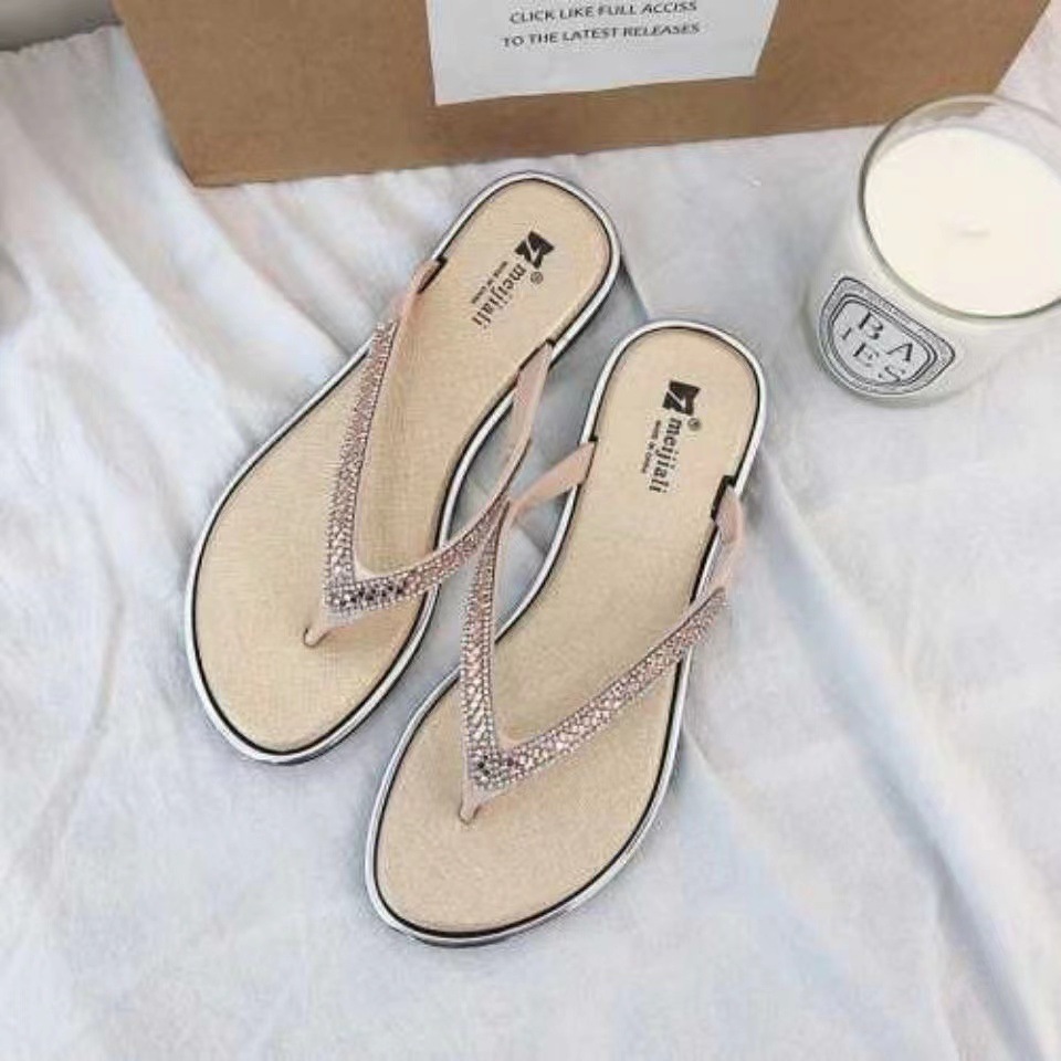 여성용 패셔너블한 슬리퍼, 라인스톤 플랫솔, 인터넷 연예인 비치 여름 슬리퍼, 캐주얼하고 달콤한 슬리퍼스토어 가기