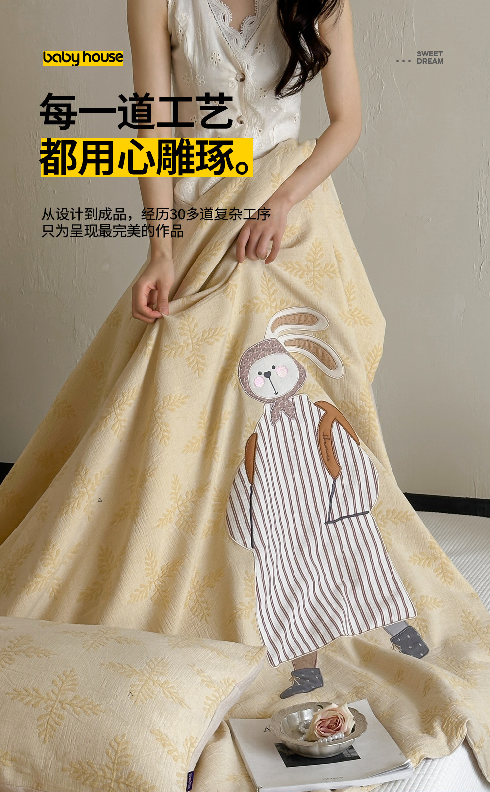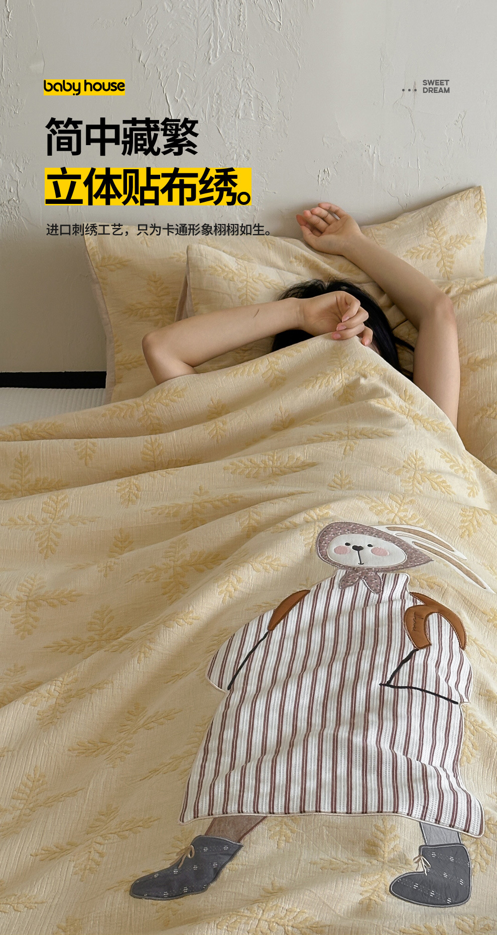 베이비 하우스 순면 3겹 거즈 Shanningtai 항균 에어컨 이불 피부 친화적인 통기성 패치 자수 여름 시원한 알몸 수면 이불