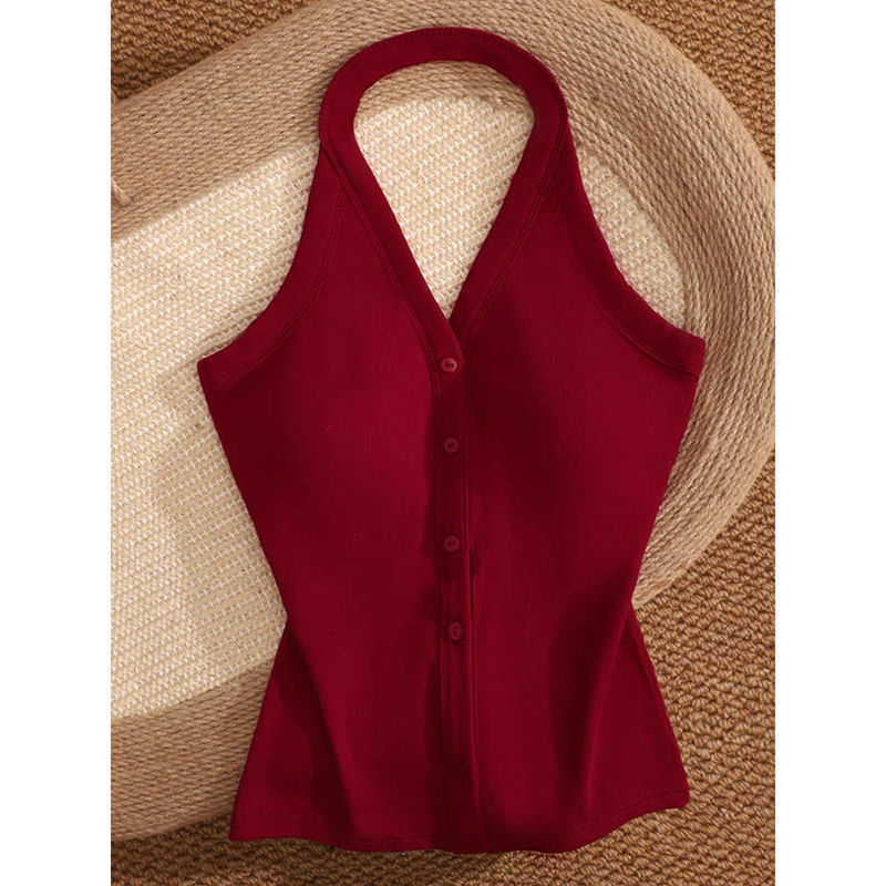 홍콩 스타일 복고풍 섹시한 매력 스타일 홀터넥 캐미솔 여성 여름 착용 새해 빨간색 연령 감소 슬리밍 탑