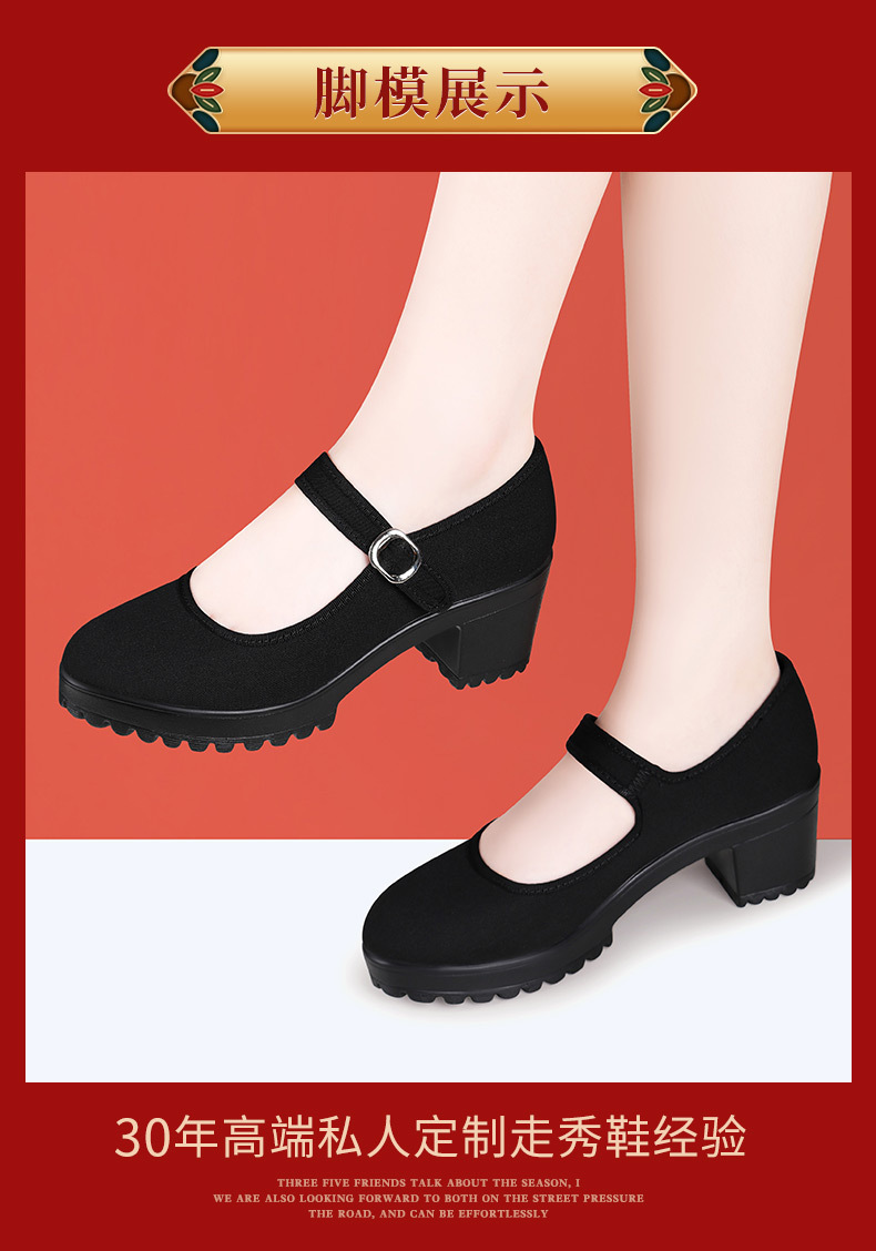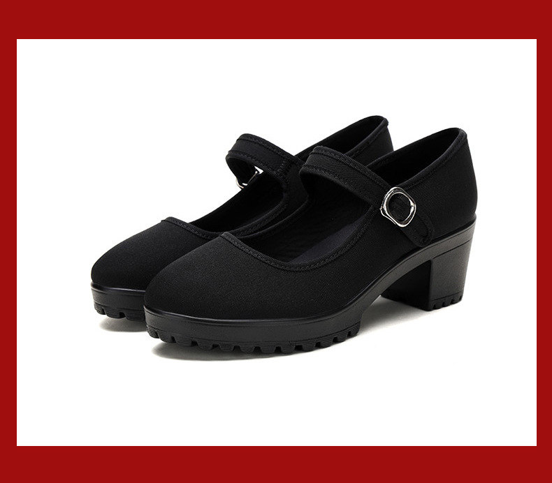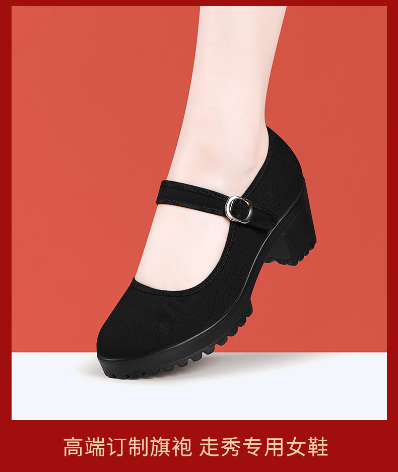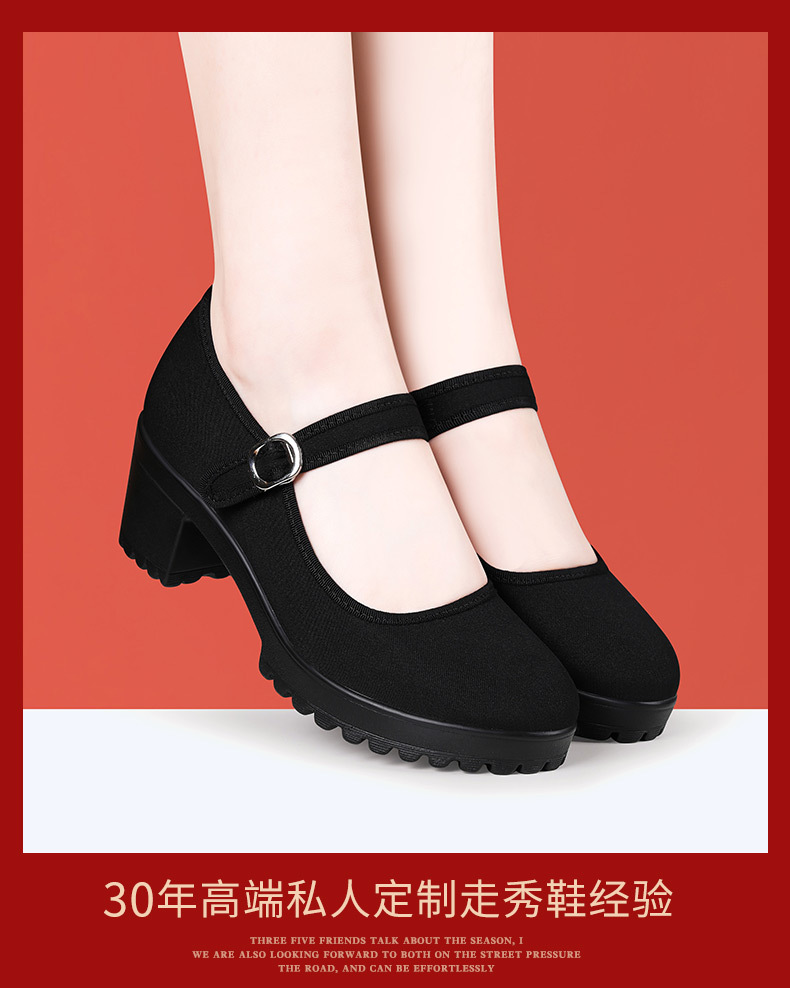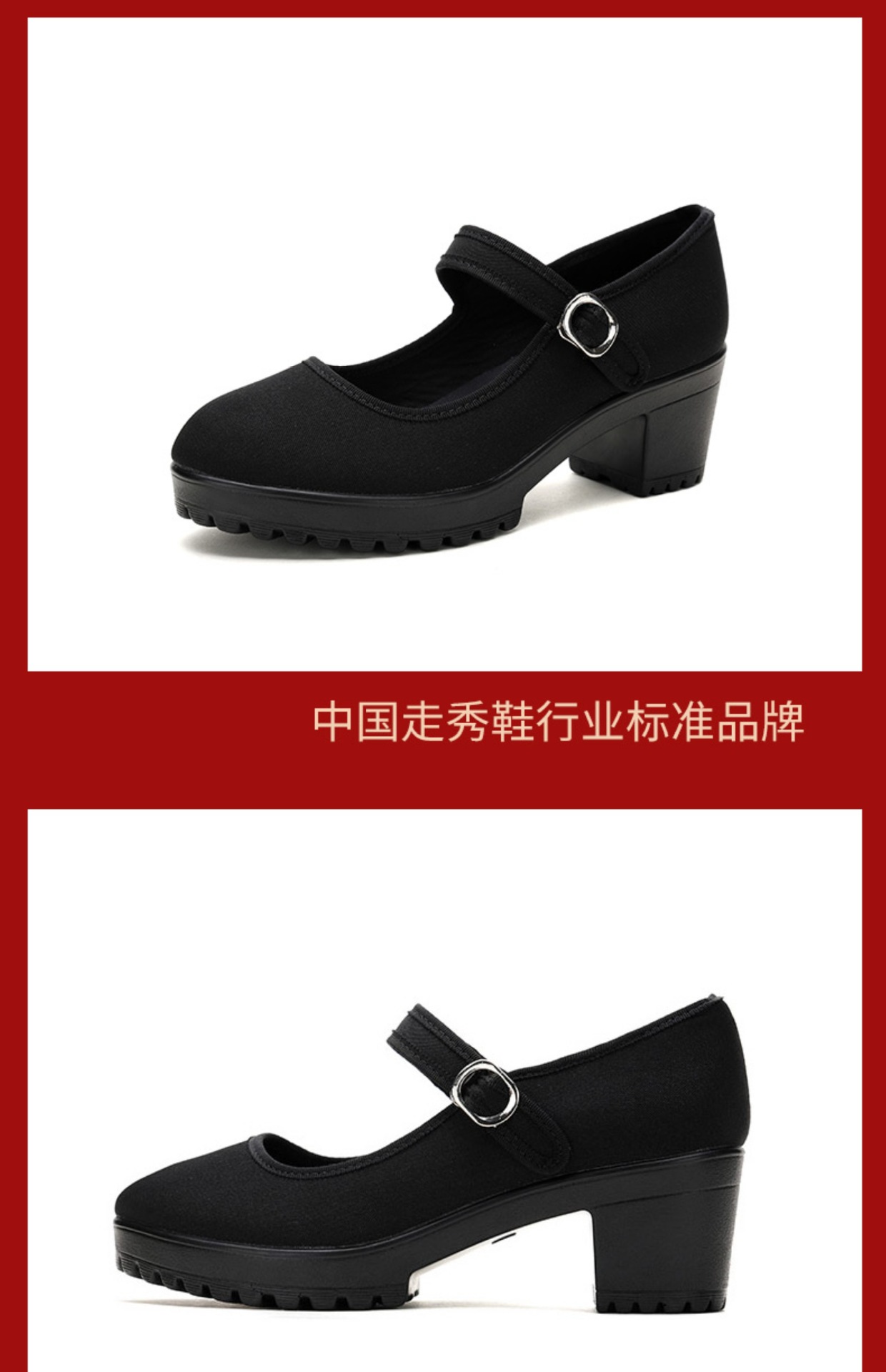 여성을 위한 블랙 스퀘어 댄스 슈즈, 새로운 스타일, 오랫동안 서 있어도 피곤하지 않은 하이힐, 올드 베이징 천 신발, 댄스 슈즈, 두꺼운 굽, 부드러운 밑창 엄마 신발스토어 가기