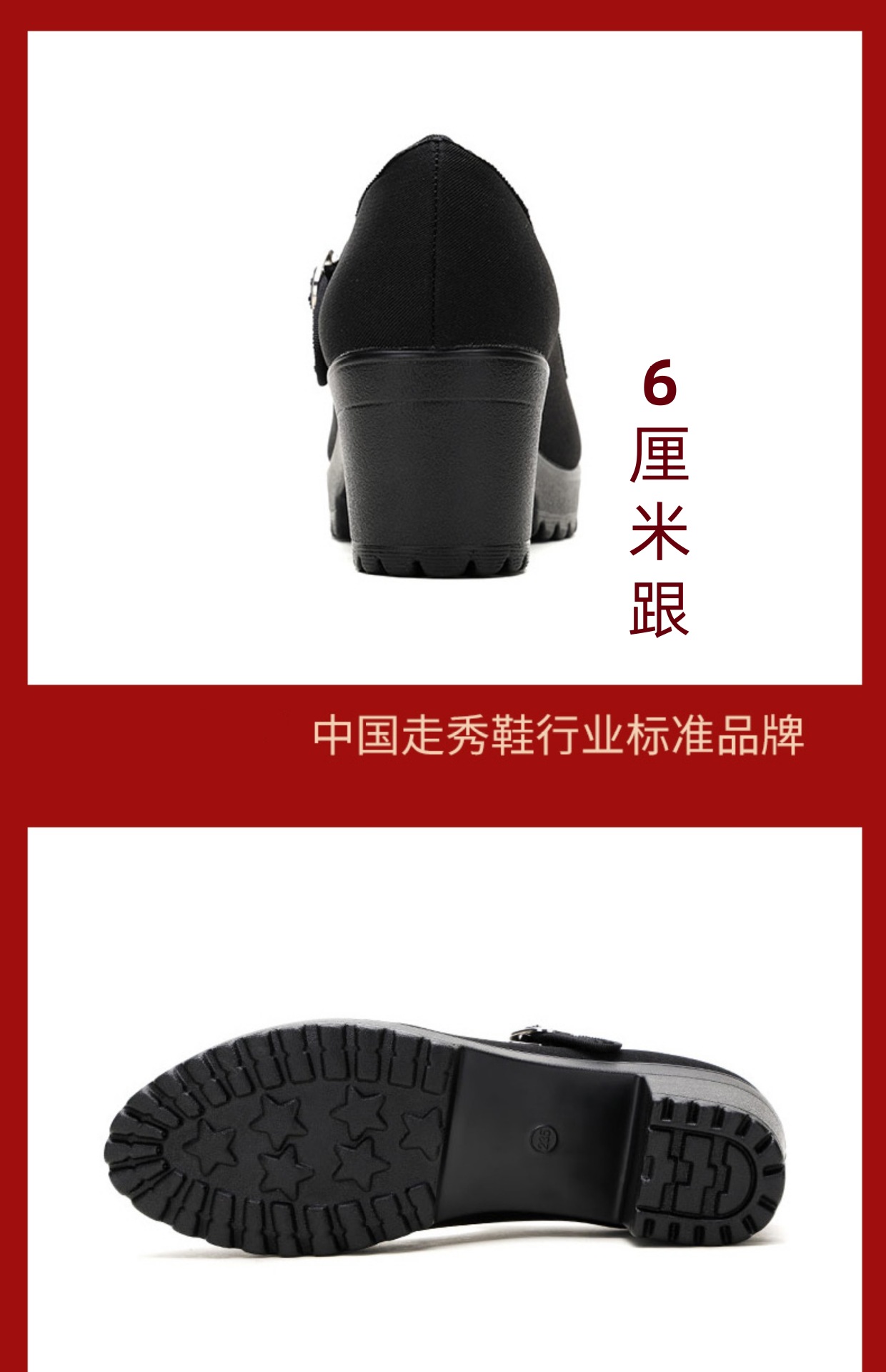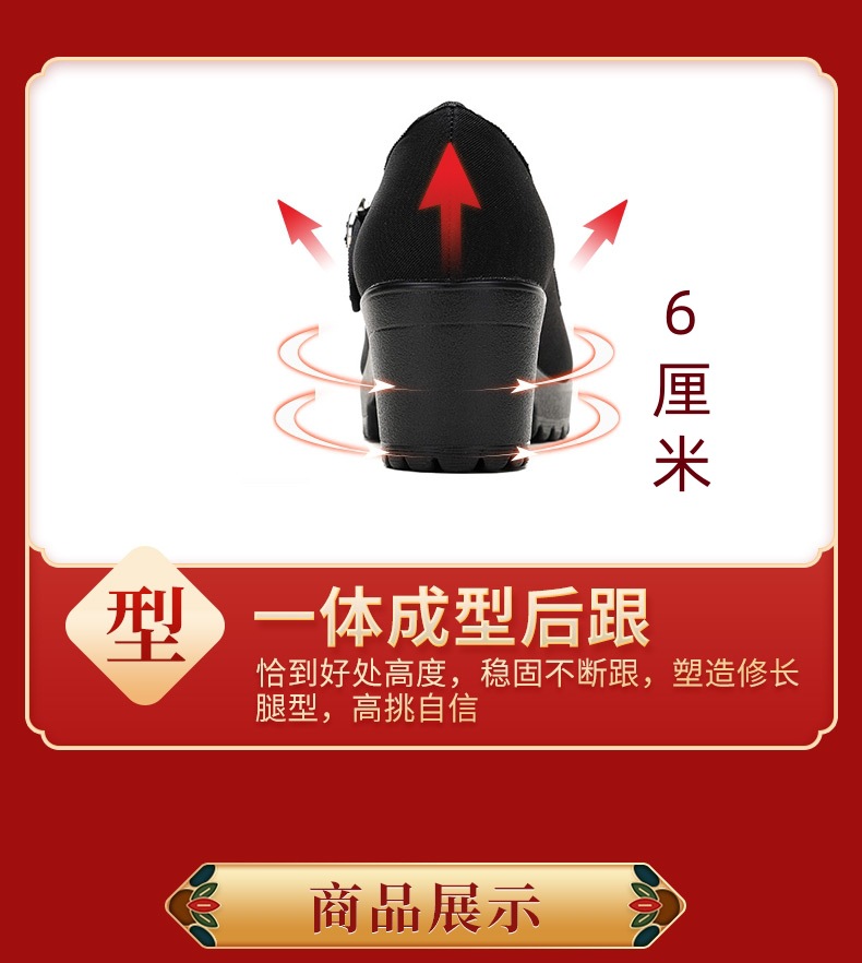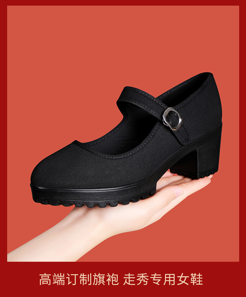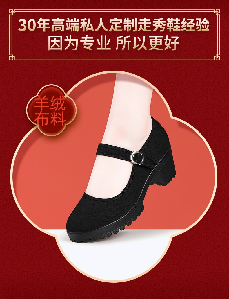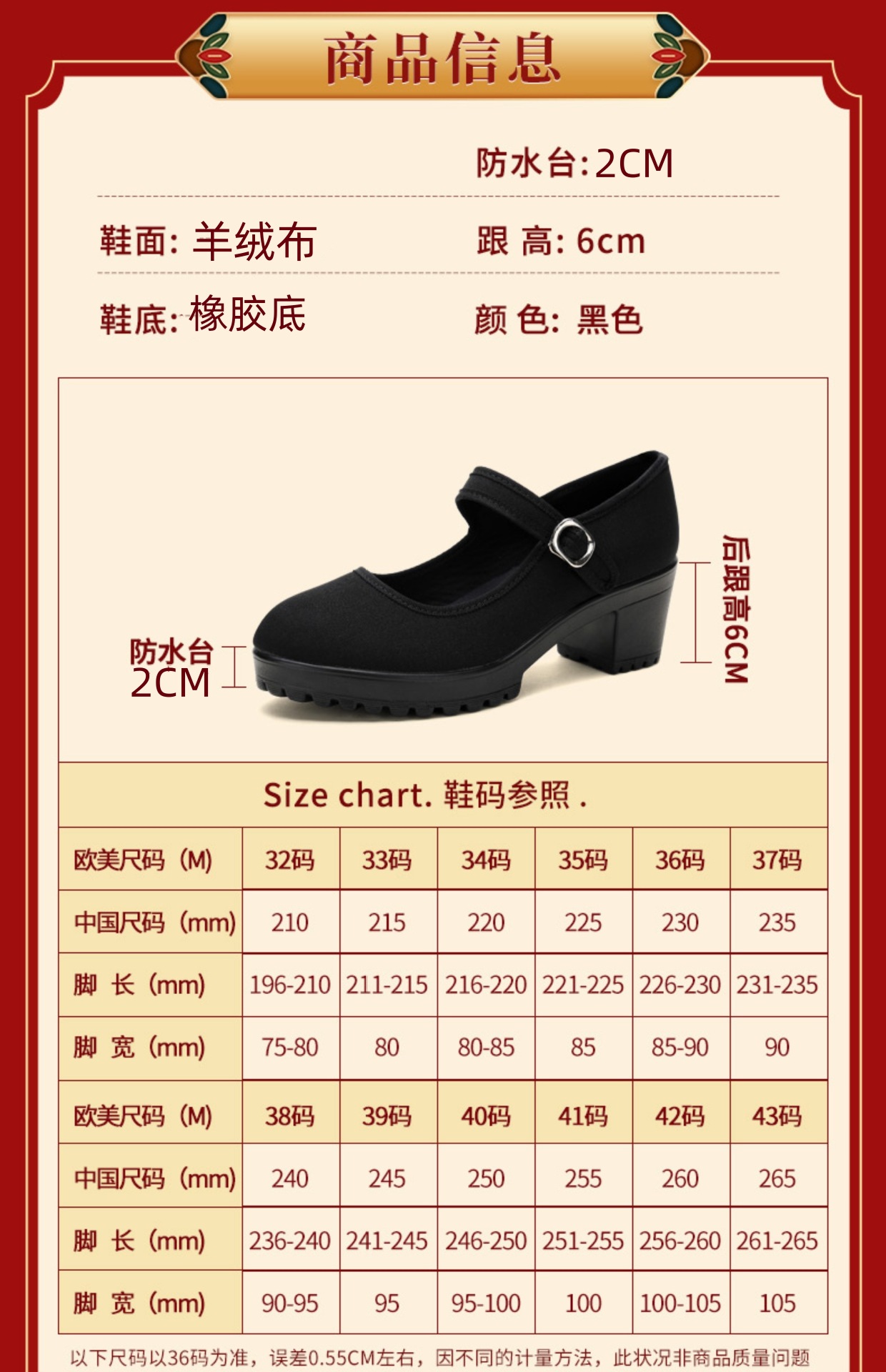 여성을 위한 블랙 스퀘어 댄스 슈즈, 새로운 스타일, 오랫동안 서 있어도 피곤하지 않은 하이힐, 올드 베이징 천 신발, 댄스 슈즈, 두꺼운 굽, 부드러운 밑창 엄마 신발스토어 가기
