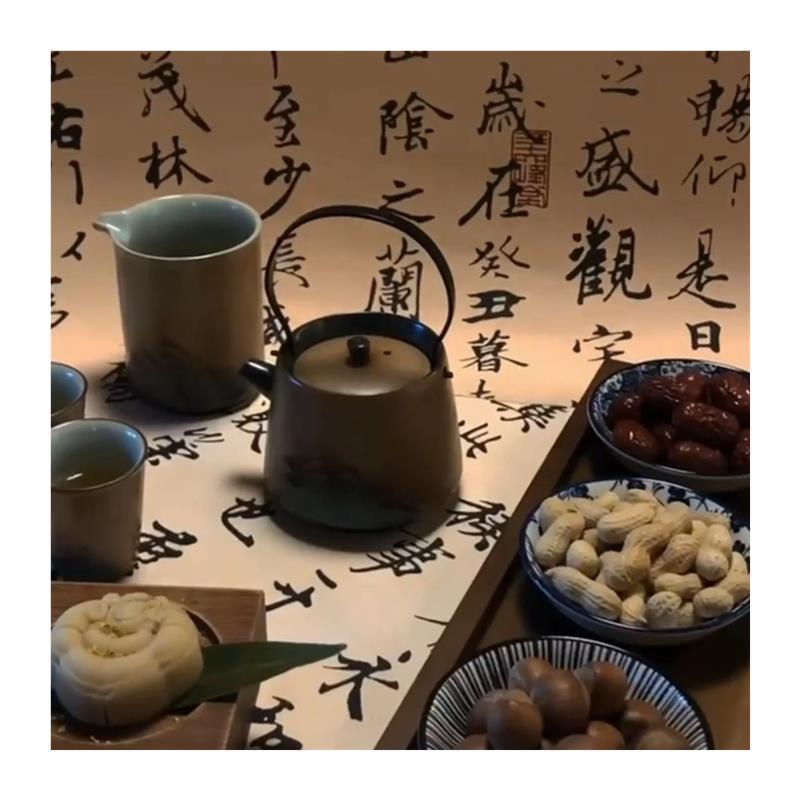 중국 스타일 서예 글꼴 배경 종이 복고풍 사진 차 세트 옥 사진 장식품 소품 골동품 배경 종이스토어 가기