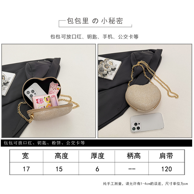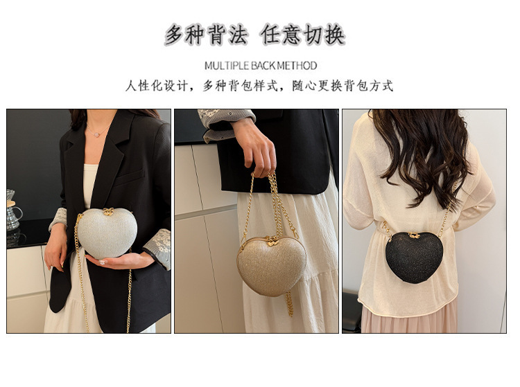 새로운 이브닝 파티 백, 고급 질감, 귀여운 하트 작은 가방, 여성용 가방, 다용도 체인 핸드백, 싱글 숄더 크로스바디스토어 가기