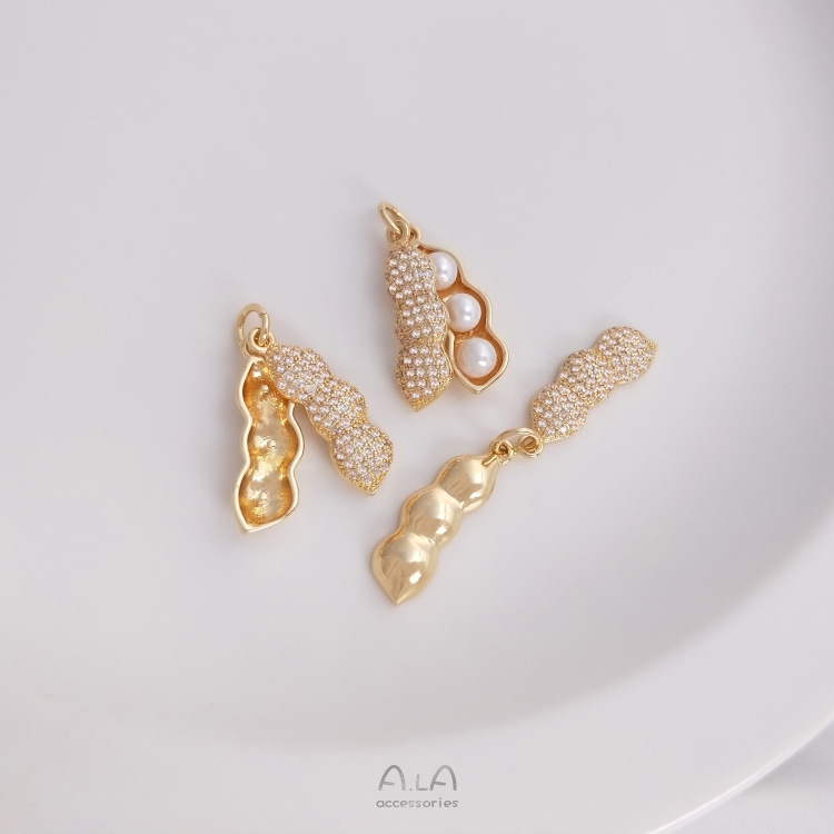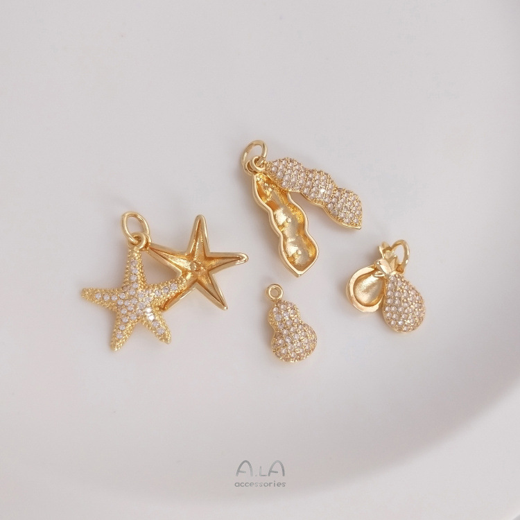 마이크로 세트 지르콘 14K 금도금 전기 도금 구슬 지갑 땅콩 불가사리 펜던트 수제 DIY 반 구멍 비드 펜던트