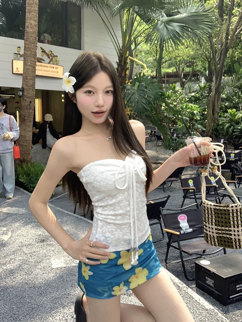 2025 새로운 달콤한 소녀 꽃 무늬 스플릿 스커트 수영복 여성 순수한 욕망 휴가 비키니 BIKINI스토어 가기