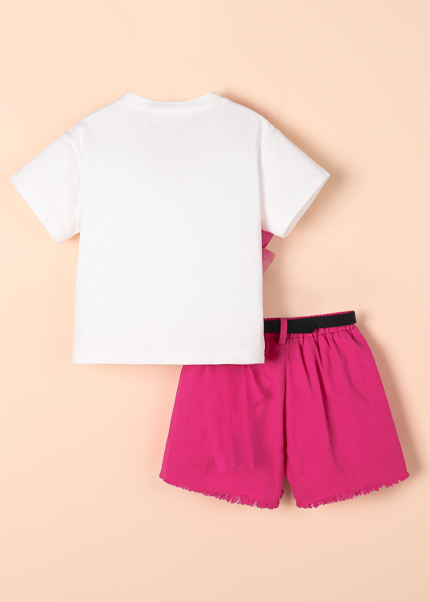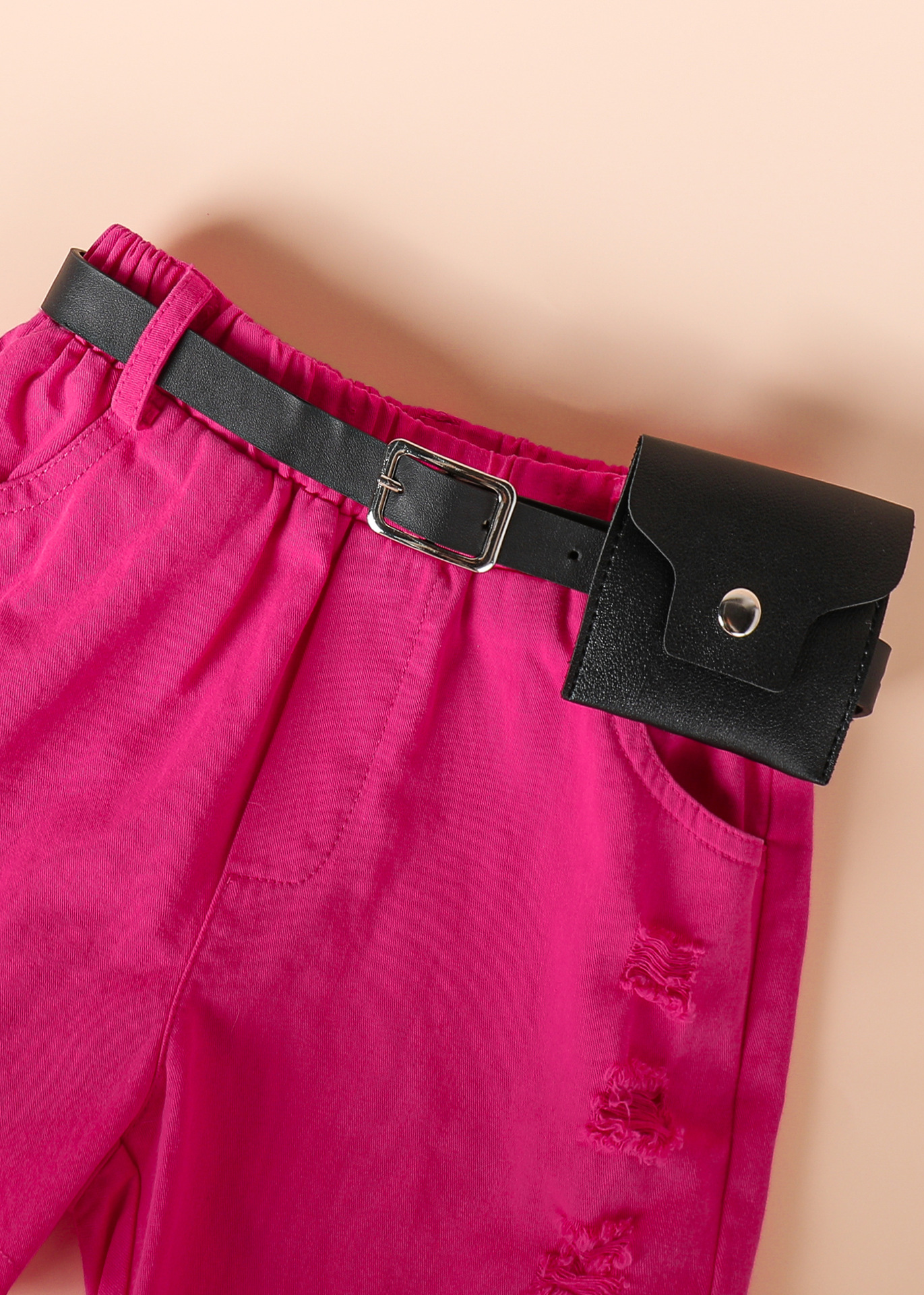 국경 간 대외 무역 새로운 기능 스타일 여름 소녀 정장 디자인 스타일 티셔츠와 데님 반바지 벨트 3 피스 세트