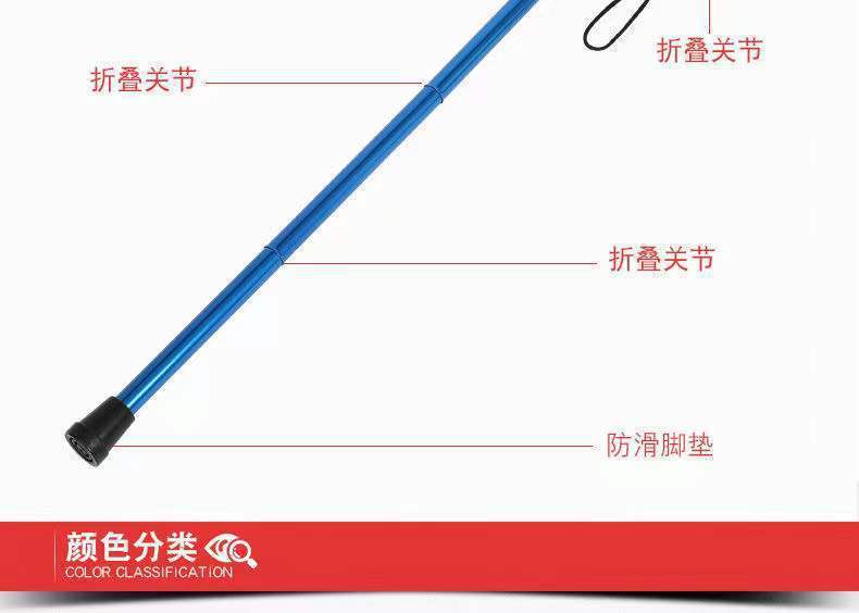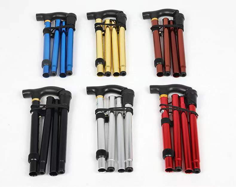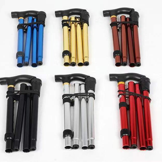 알루미늄 합금 트레킹 스틱 접이식 텔레스코픽 초경량 4 섹션 스틱 크로스 컨트리 하이킹 야외 지팡이 휴대용 노인 지팡이