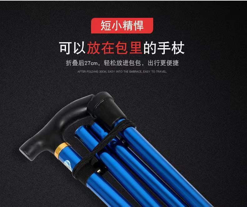 알루미늄 합금 트레킹 스틱 접이식 텔레스코픽 초경량 4 섹션 스틱 크로스 컨트리 하이킹 야외 지팡이 휴대용 노인 지팡이스토어 가기