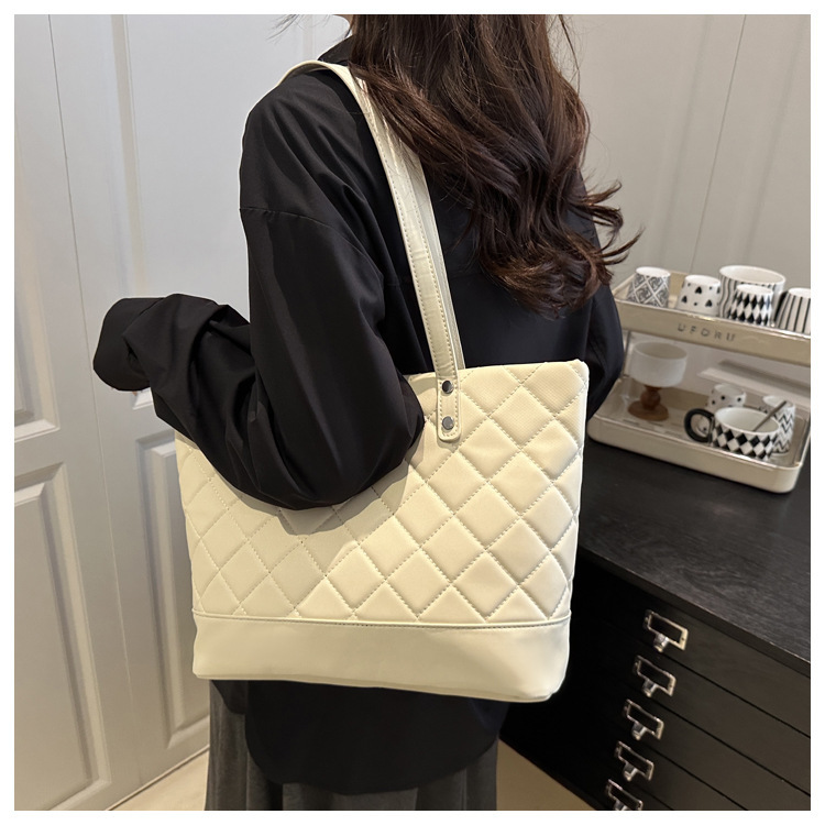 도매 한국어 버전 격자 무늬 휴대용 토트 백 여성용 가방 2025 봄 새로운 대용량 숄더 백 인터넷 연예인 유행 겨드랑이 가방