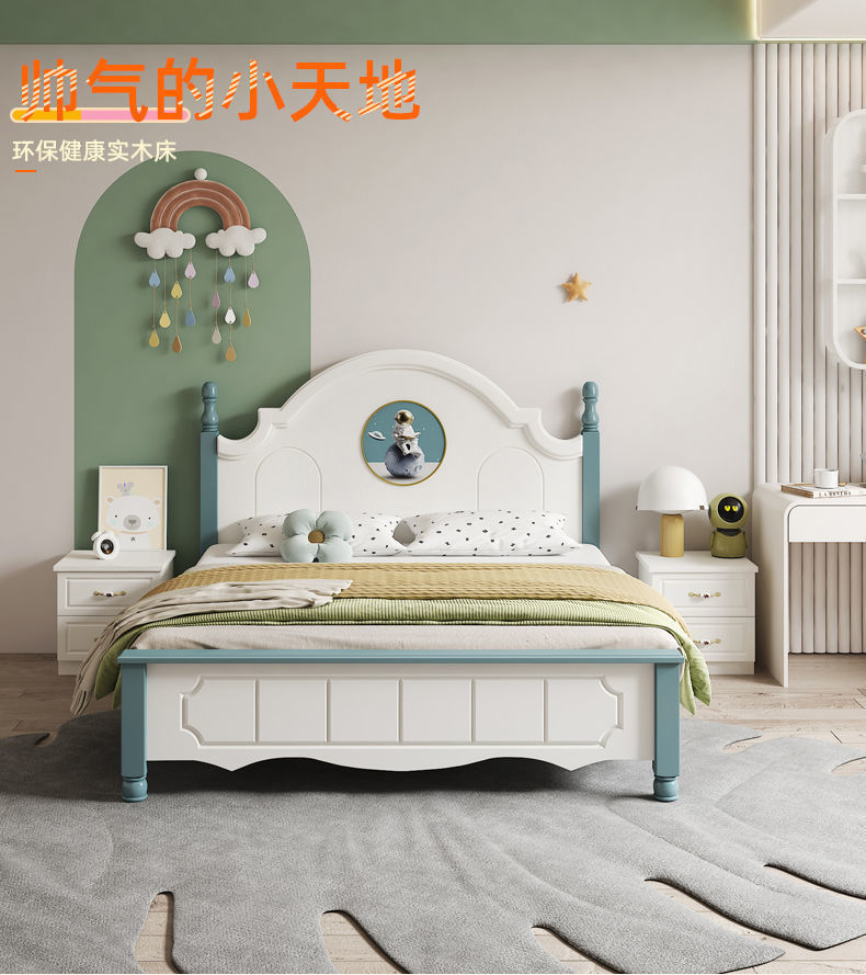 소년과 소녀를위한 단단한 나무 어린이 침대 더블 침대 현대 간단한 미국 학생 경제적 인 마스터 침실 공주 유럽 침대