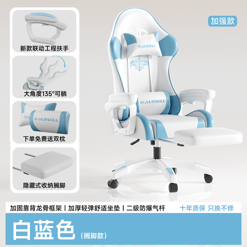 • (강화강화모델) 흰색과 파란색 발판 - 편안한 이중베개丨연동팔걸이丨리클라이닝 [집까지 배송]