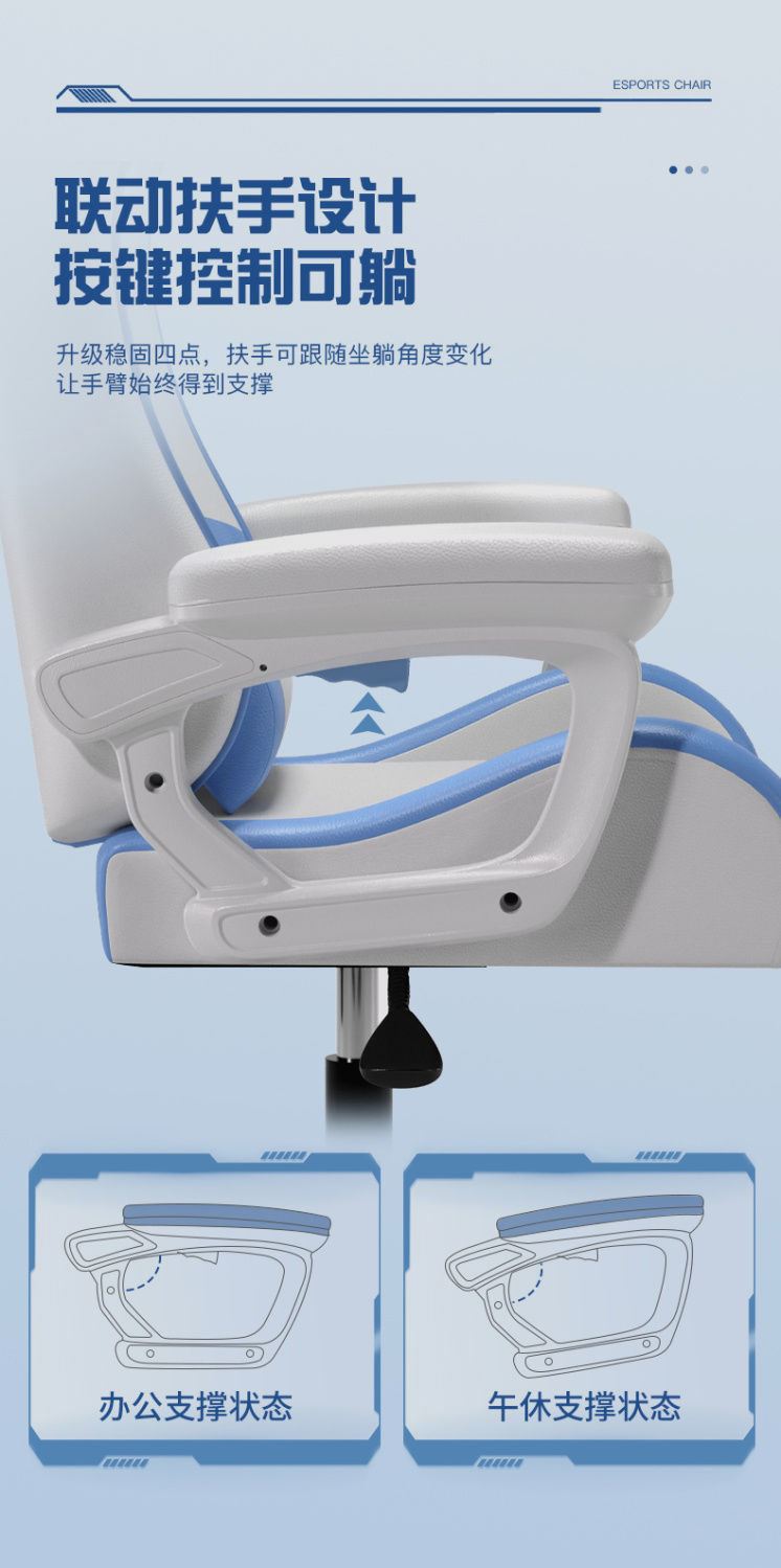• (강화강화모델) 흰색과 파란색 - 피부친화적인 고탄성 스타일링면丨편안한 이중베개丨연동팔걸이丨리클라이닝 [집으로배송]