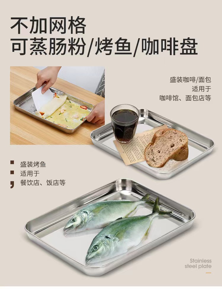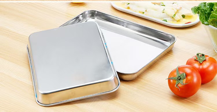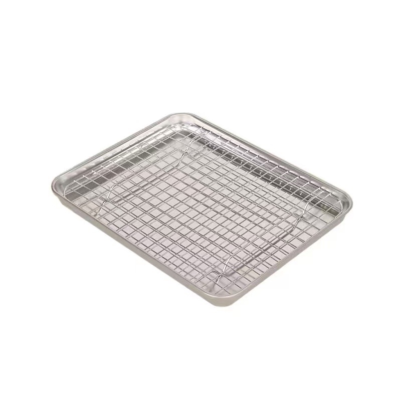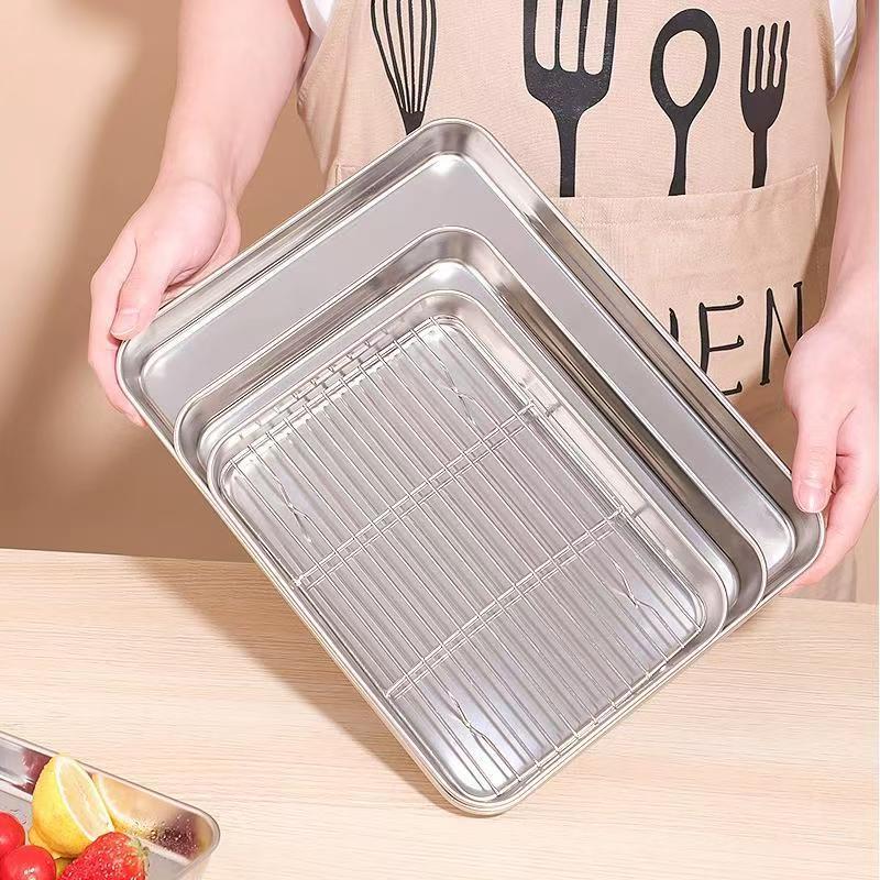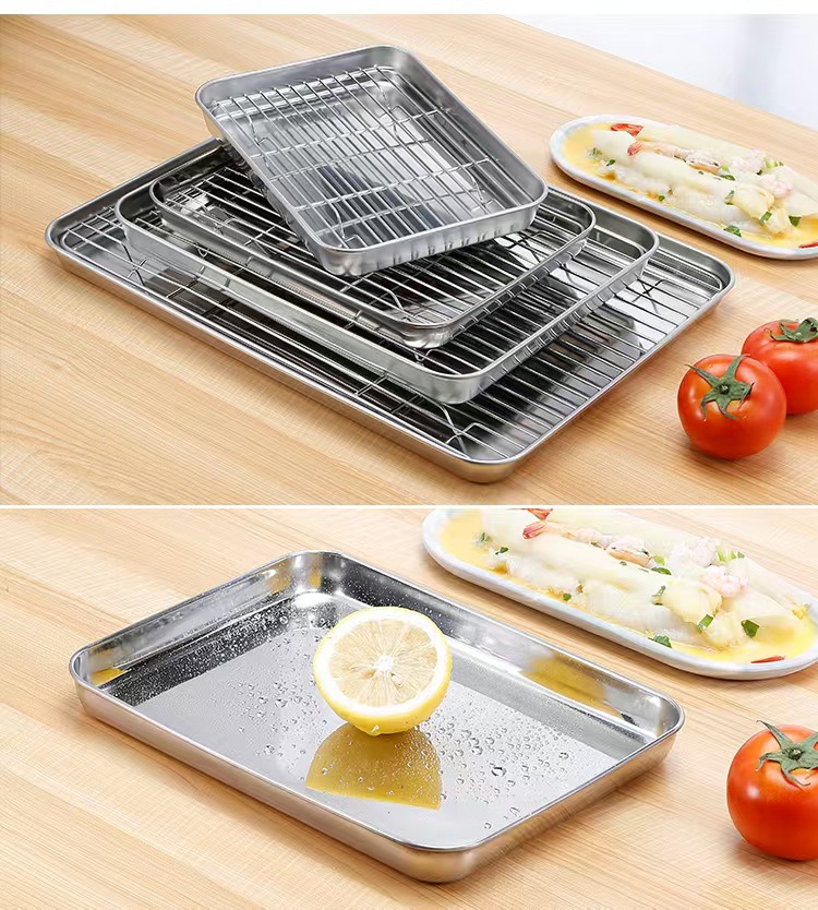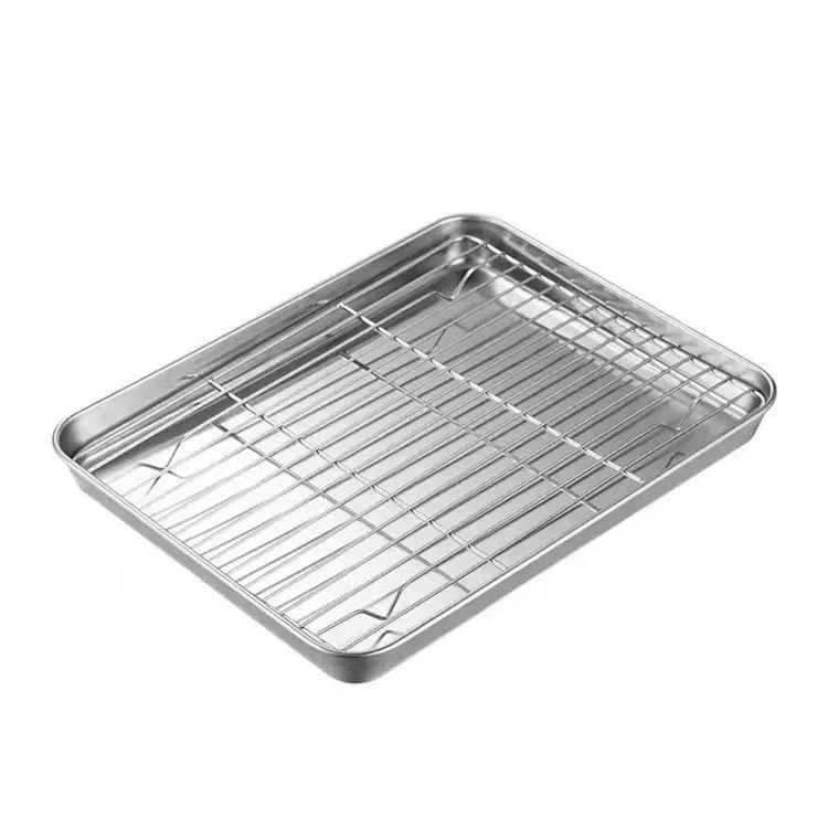 평평한 바닥의 사각 트레이, 오일 컨트롤망 포함, 스테인리스 트레이, 물기 제거 및 오일 필터 트레이, 조리된 음식 전시 트레이, 바베큐 양념 트레이스토어 가기