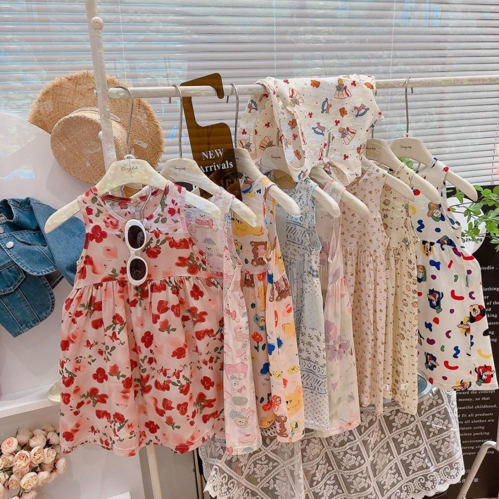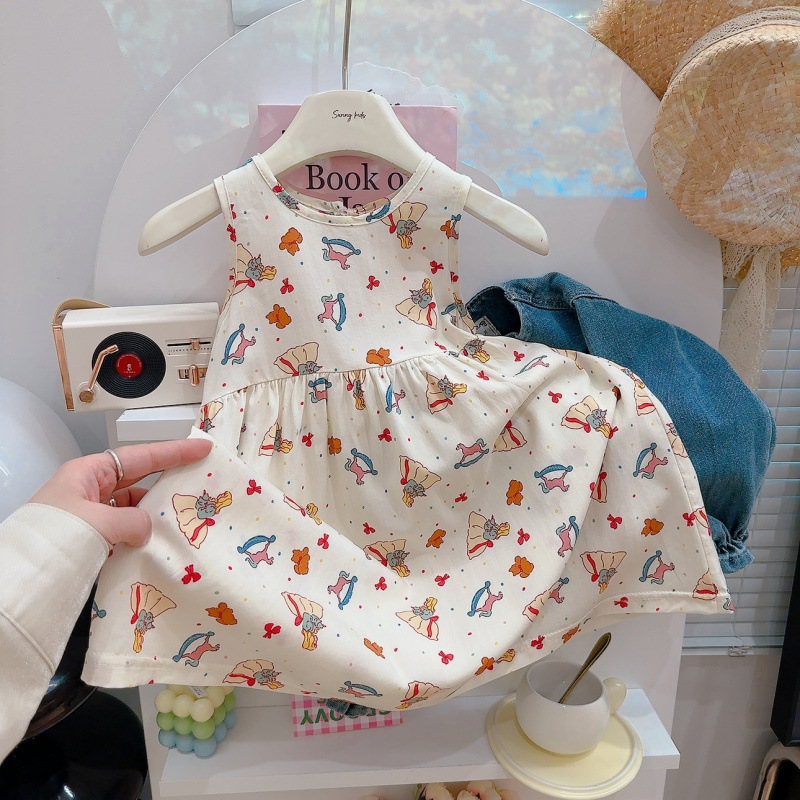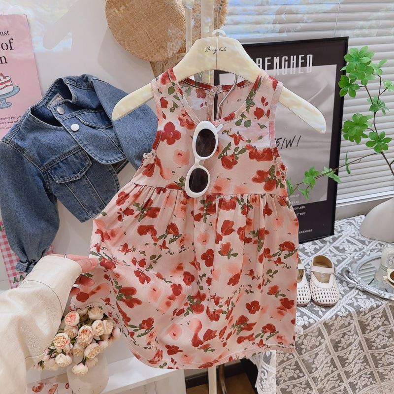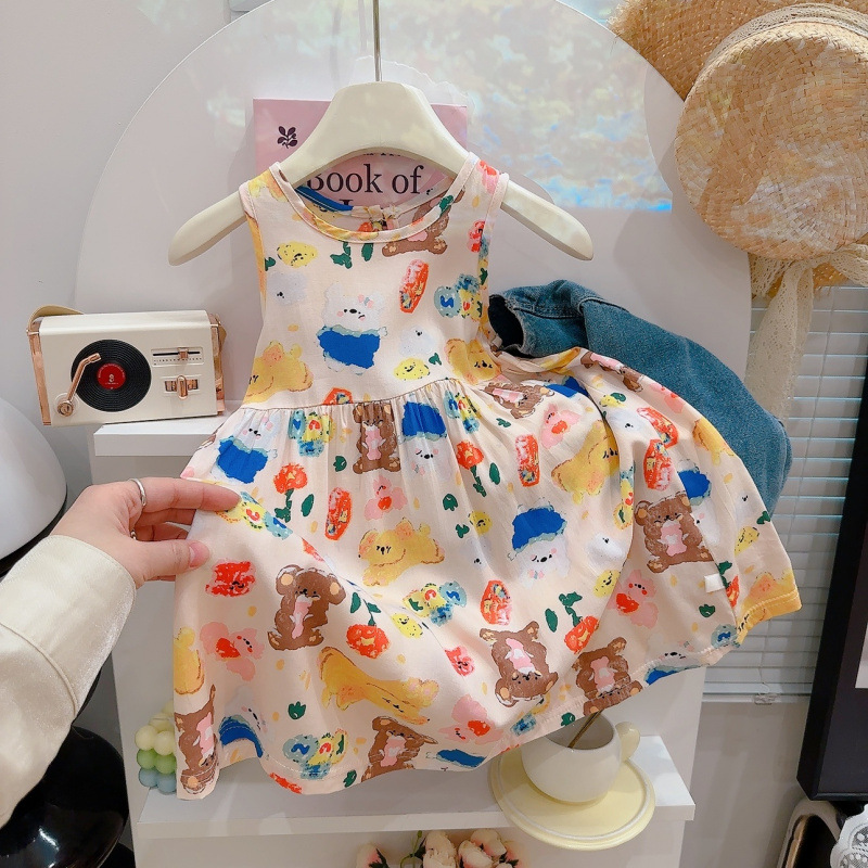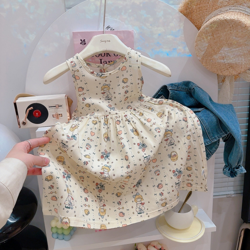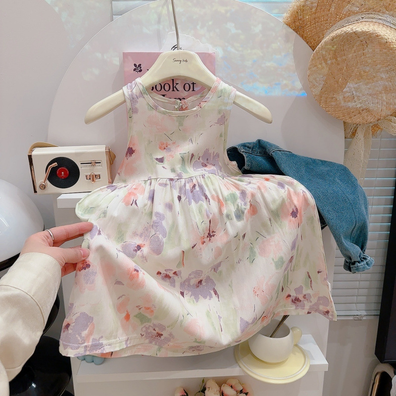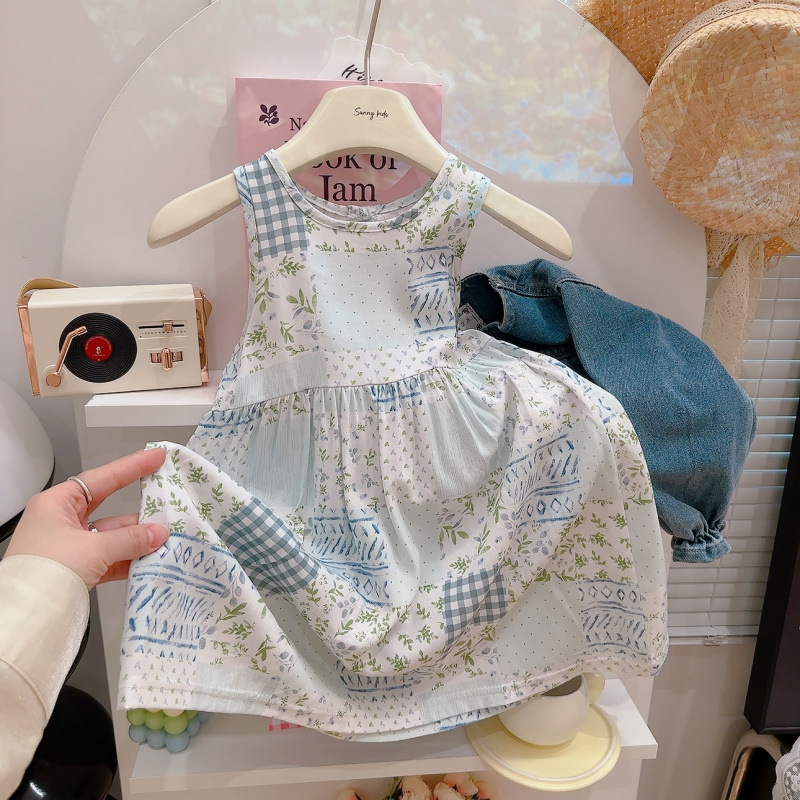 여자 잠옷 여름 어린이 스타일 공주 드레스 얇은 아기 민소매 조끼 드레스 여자 귀여운 드레스 잠옷스토어 가기