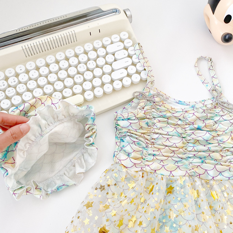 2025 어린이 수영복 인어 원피스 공주 스커트 비키니 수영복 스팽글 해변 온천 소녀 수영복