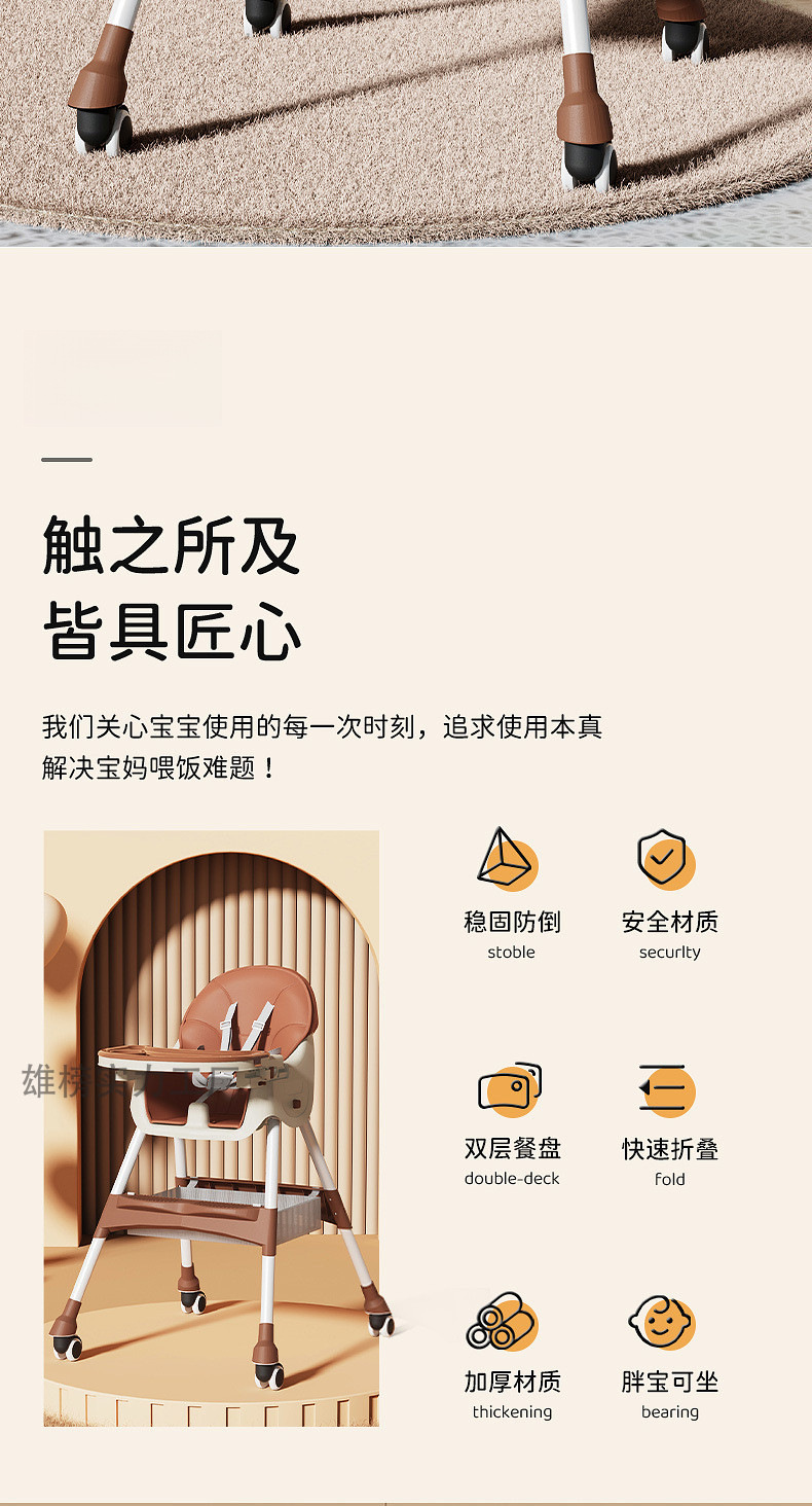 • 브라운 탑 버전 (시트쿠션 + 2단 다단식 디너 플레이트 + 5점식 안전벨트 + 높이 조절 + 수납바구니 + 유니버셜 휠 + 접이식 기능)